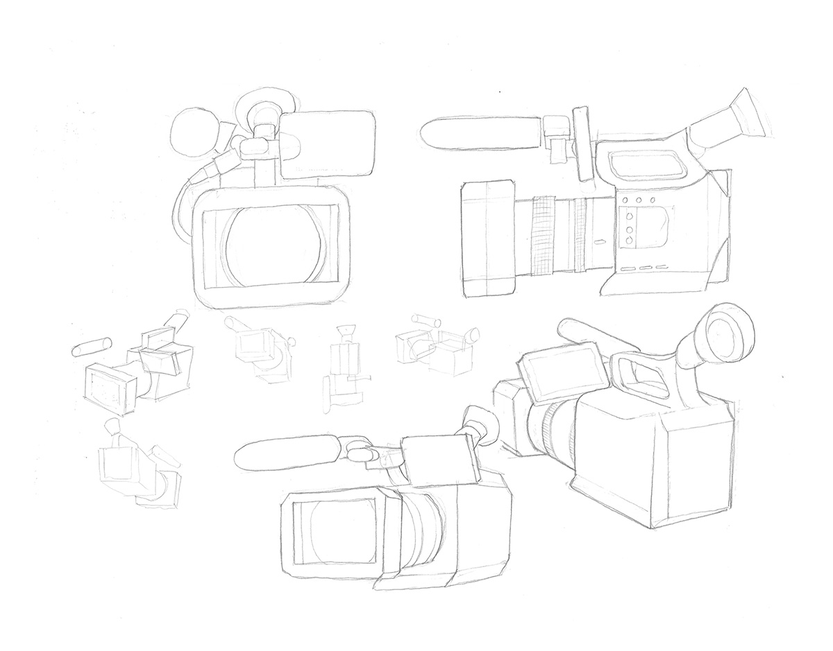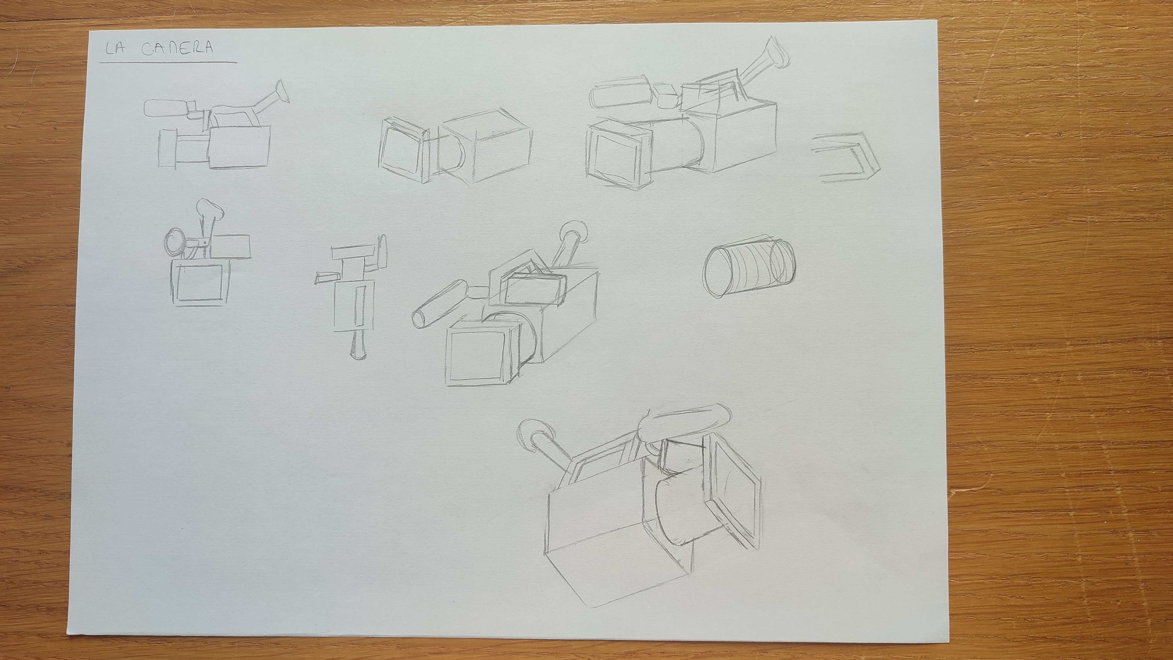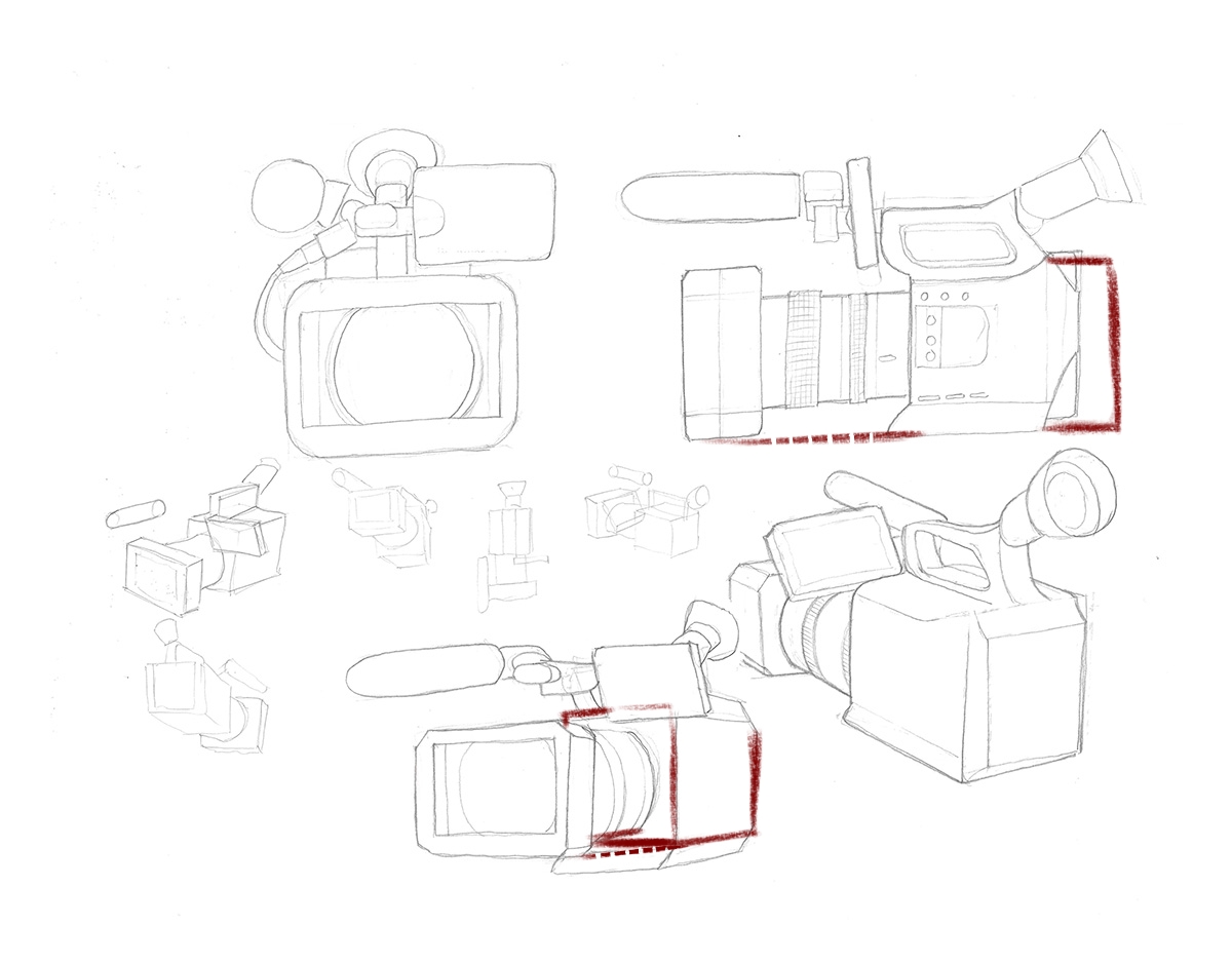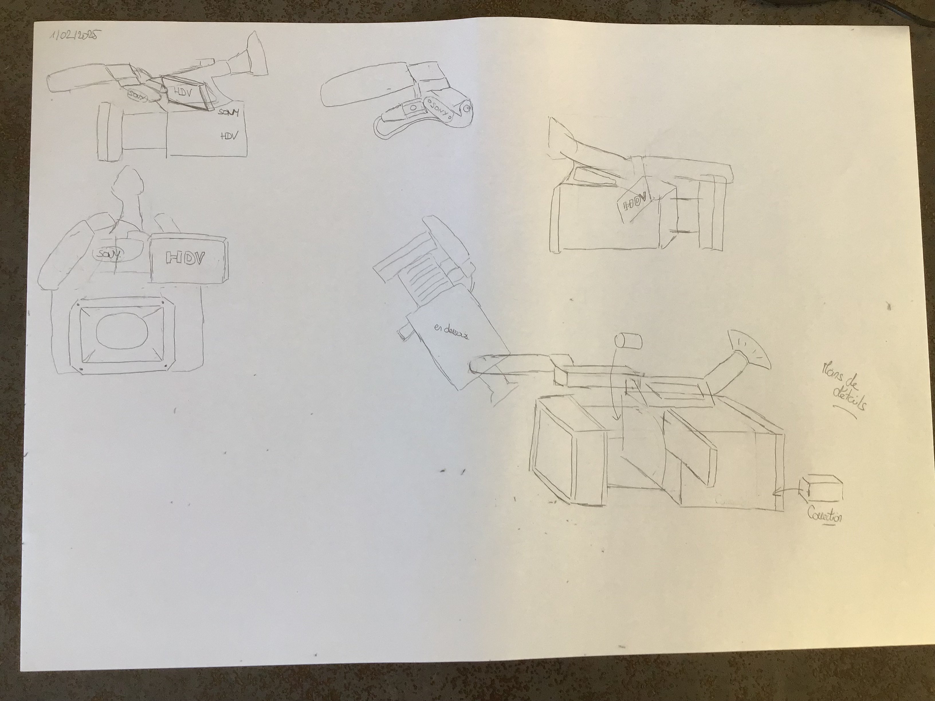 Bonjour Baleno, pas mal du tout! Effectivement se laisser aller à trop de détails peut te faire passer à côté de l'essentiel! Ici, la partie qui pêche un peu c'est la poignée de la caméran qui sous certains angles en vient presque qu'à disparaître tant elle s'applatit! C'est une partie importante, puisqu'elle est le point de jonction des autres éléments (micro, écran et oculaire). Pour le reste c'est du bon boulot! Si tu te laisses trop aller dans les détails fait toi des séries d'exercices de dessins ultra simplifiés à base de cube et de forme basique! ^^