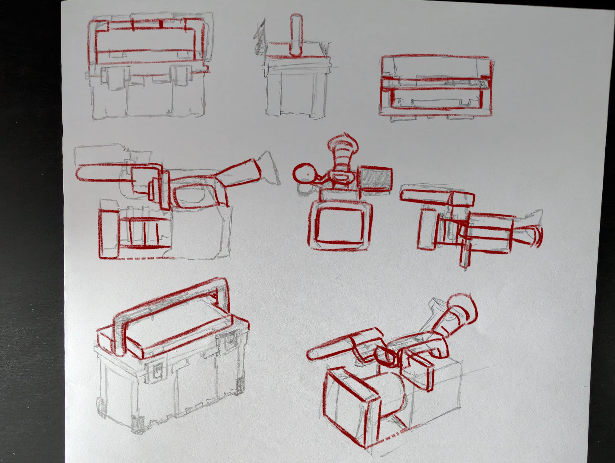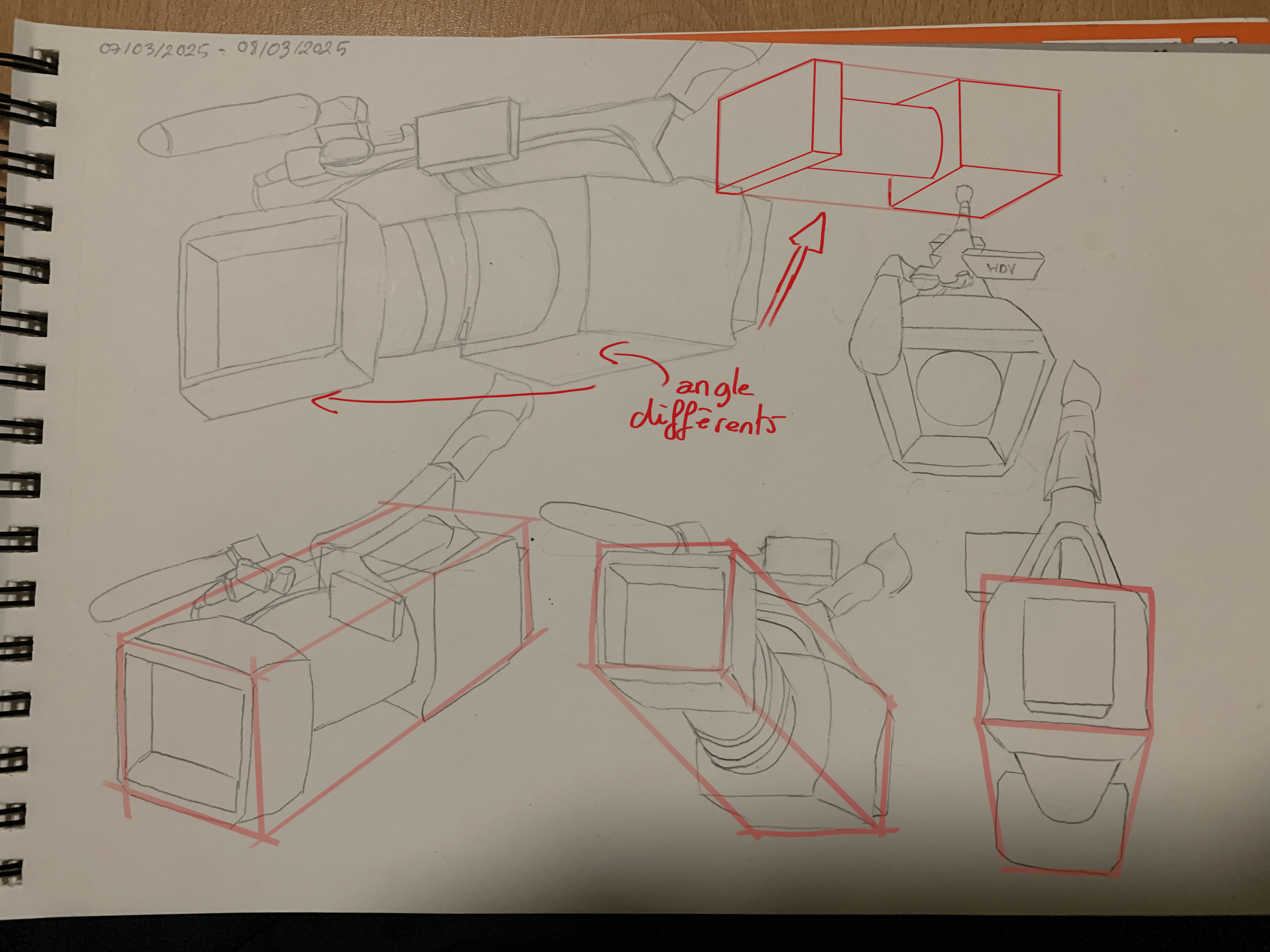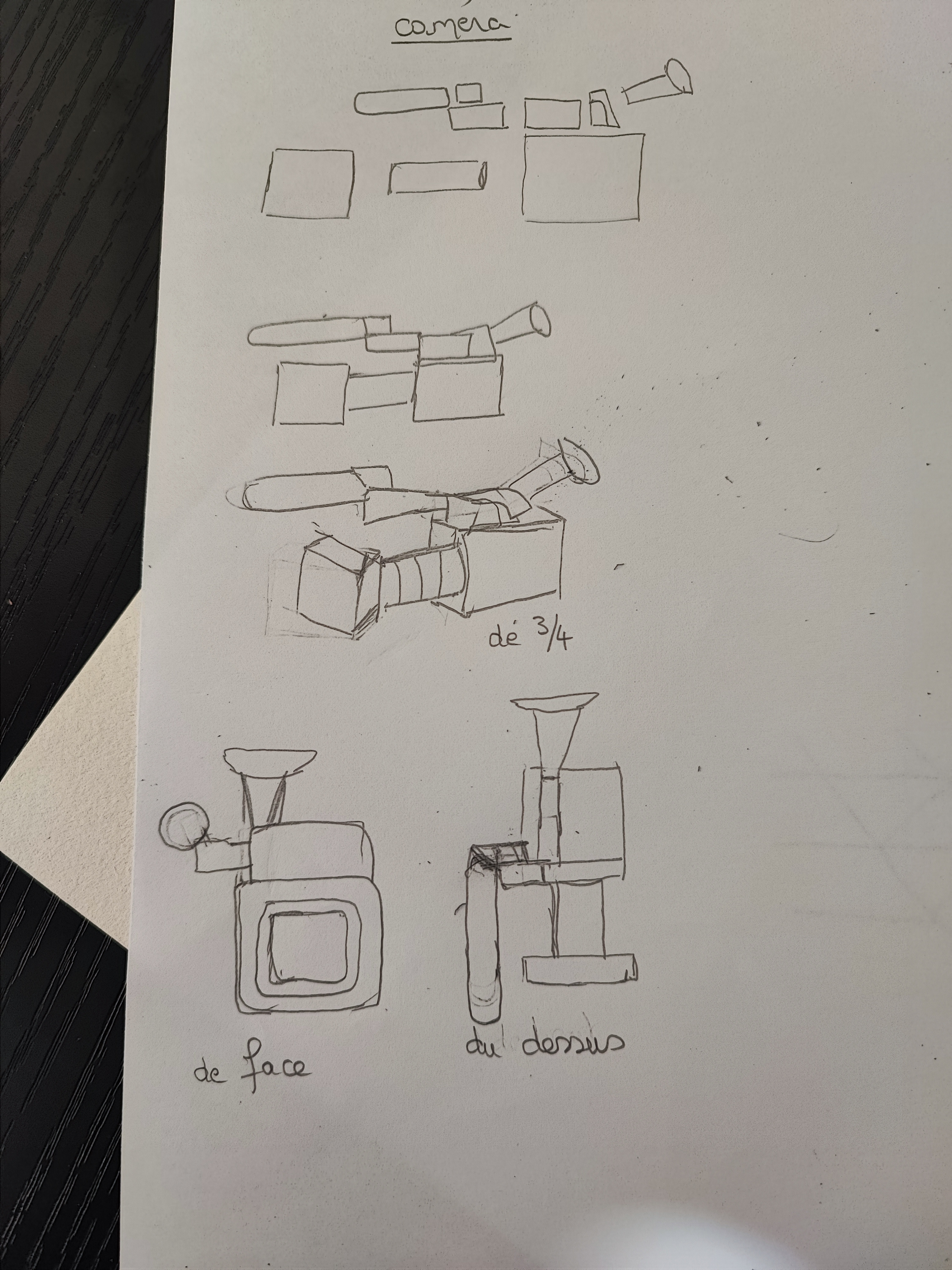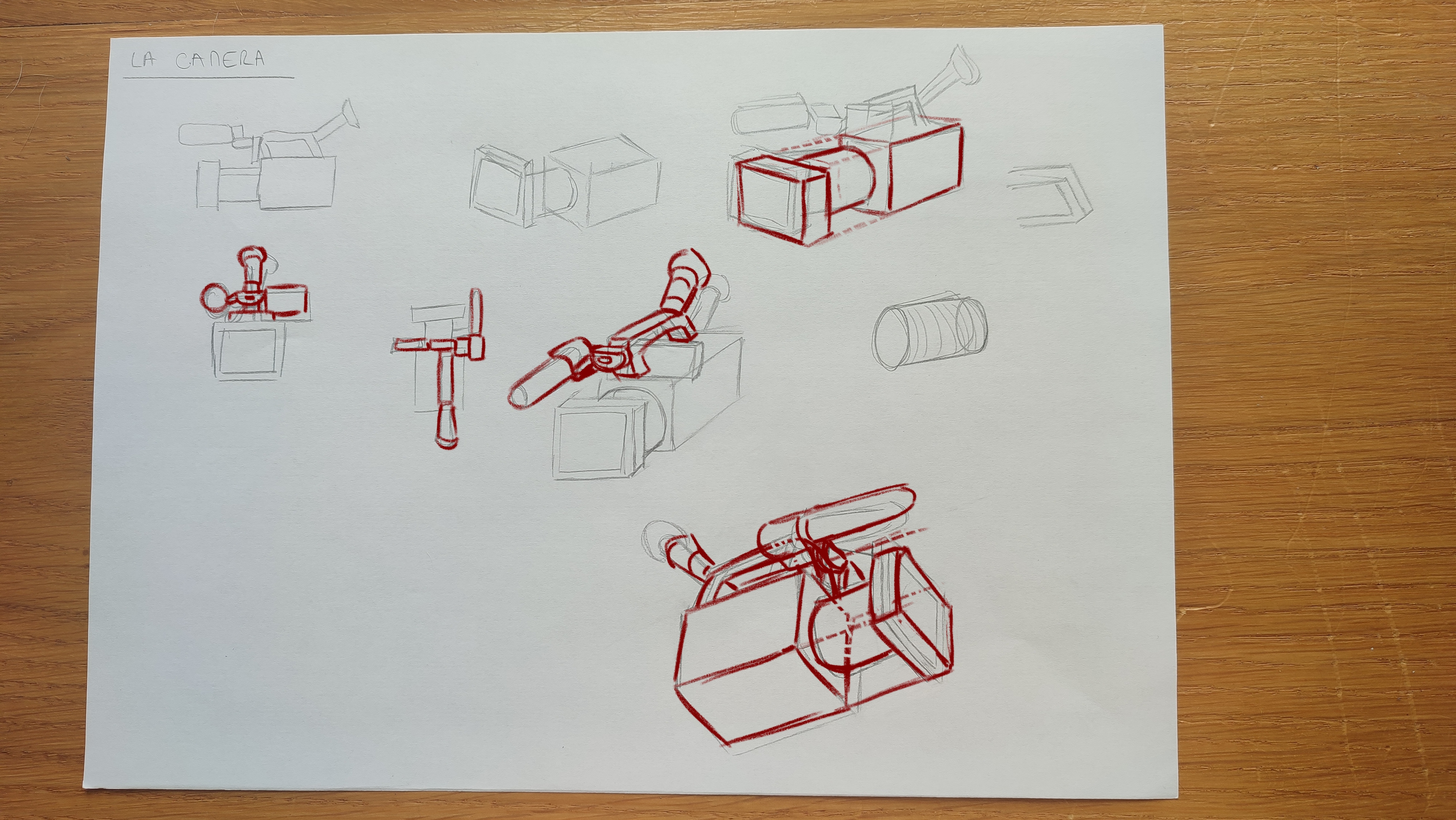 Bonjour Baleno, pas mal du tout! Effectivement se laisser aller à trop de détails peut te faire passer à côté de l'essentiel! Ici, la partie qui pêche un peu c'est la poignée de la caméran qui sous certains angles en vient presque qu'à disparaître tant elle s'applatit! C'est une partie importante, puisqu'elle est le point de jonction des autres éléments (micro, écran et oculaire). Pour le reste c'est du bon boulot! Si tu te laisses trop aller dans les détails fait toi des séries d'exercices de dessins ultra simplifiés à base de cube et de forme basique! ^^