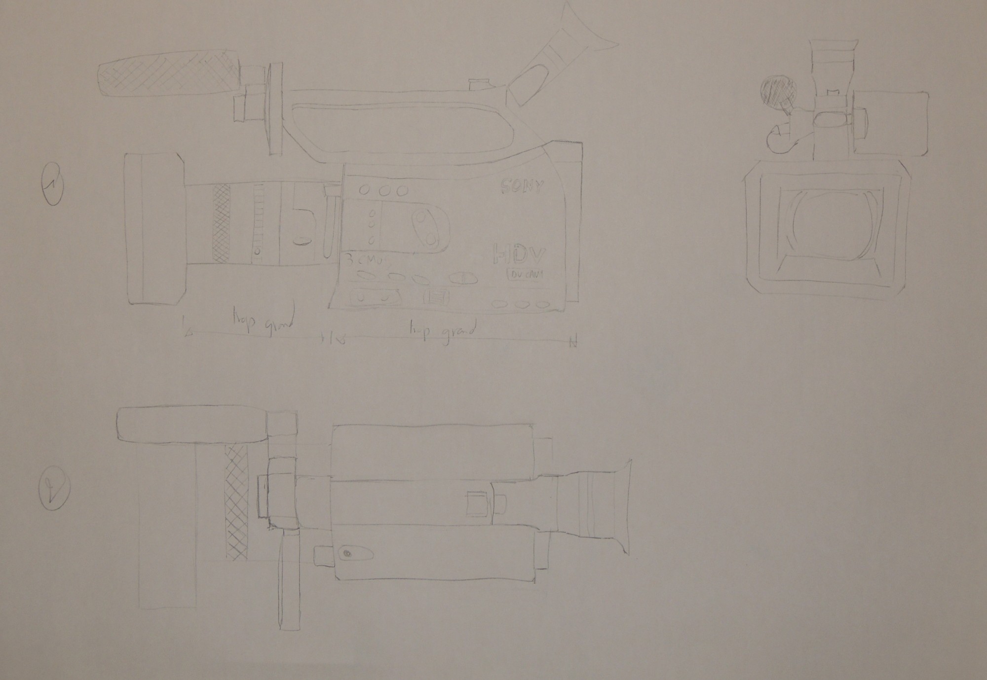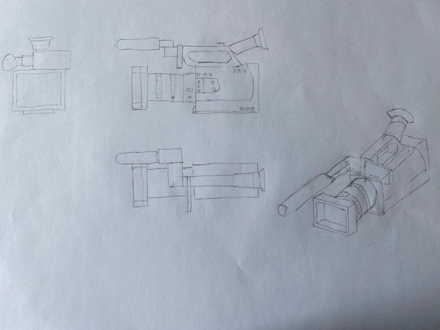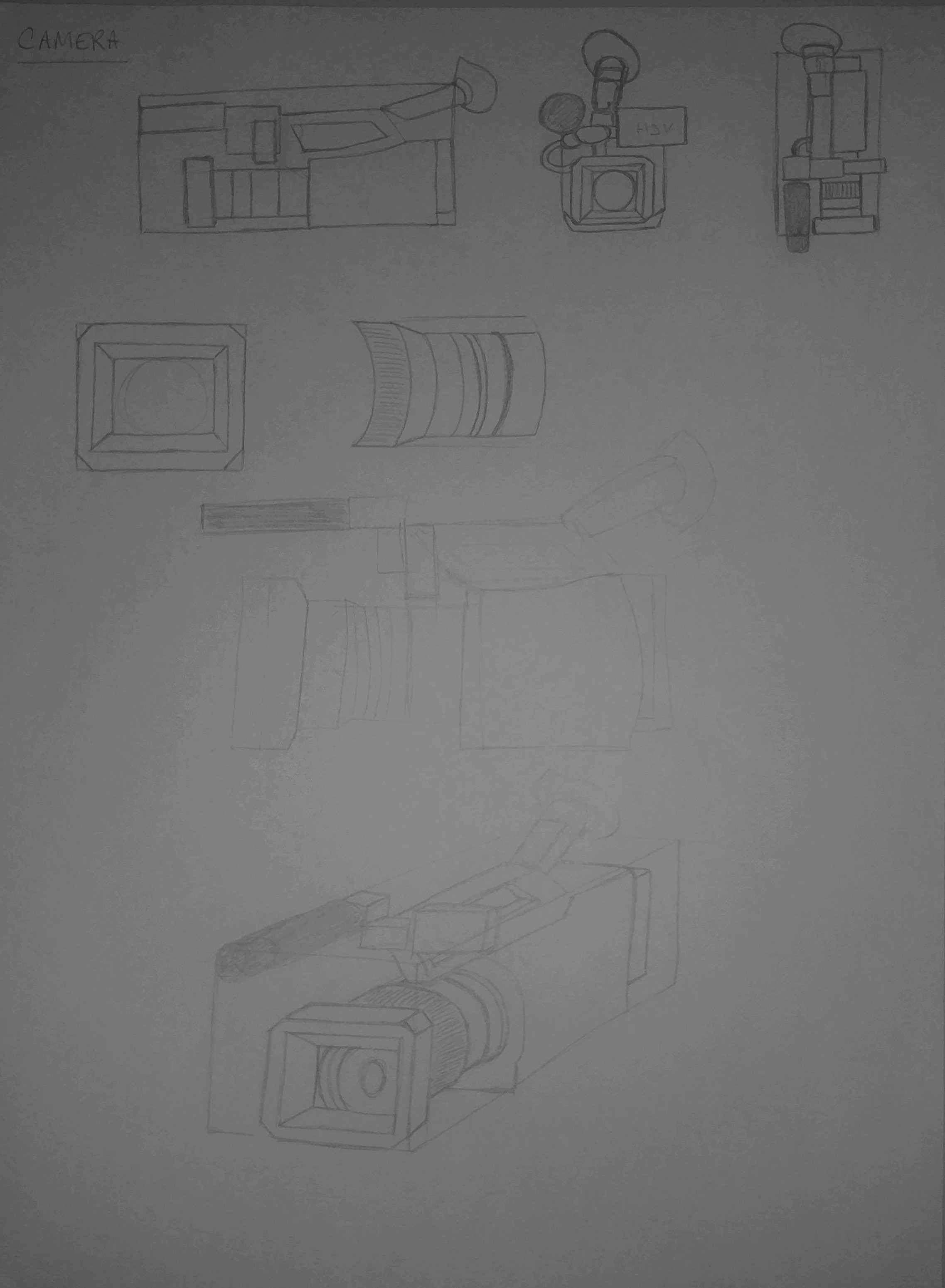 voici mon exo sur la caméra. Je n'ai fais que trois vues mais j'ai tenté d'être assez détaillé. C'est d'ailleurs marrant que lors de la correction vous recommandiez de simplifier la forme en rectangle puis de découper à l'intérieur. C'est la manière dont j'ai procéder de base... Les bons réflexes commencent à rentrer 😁