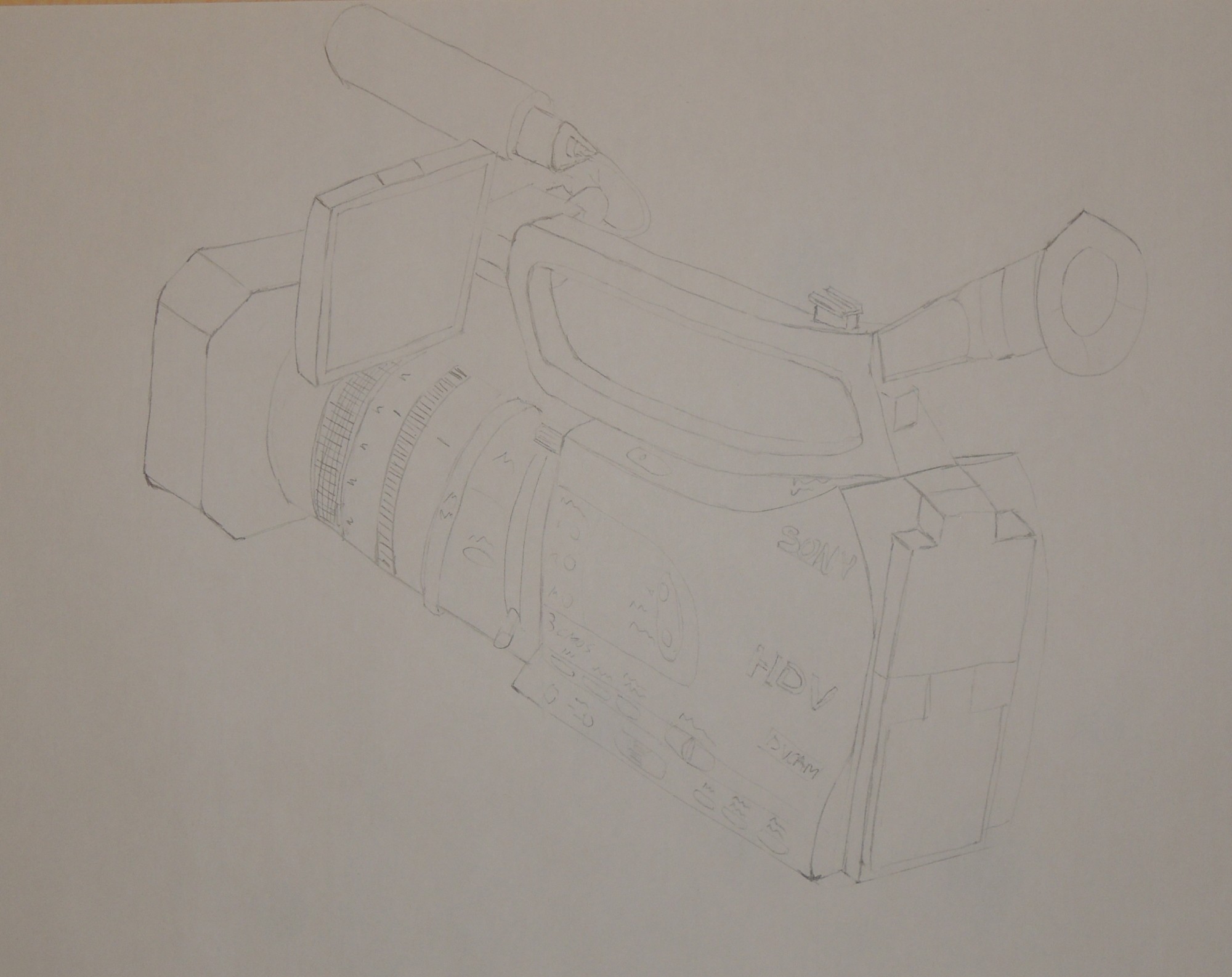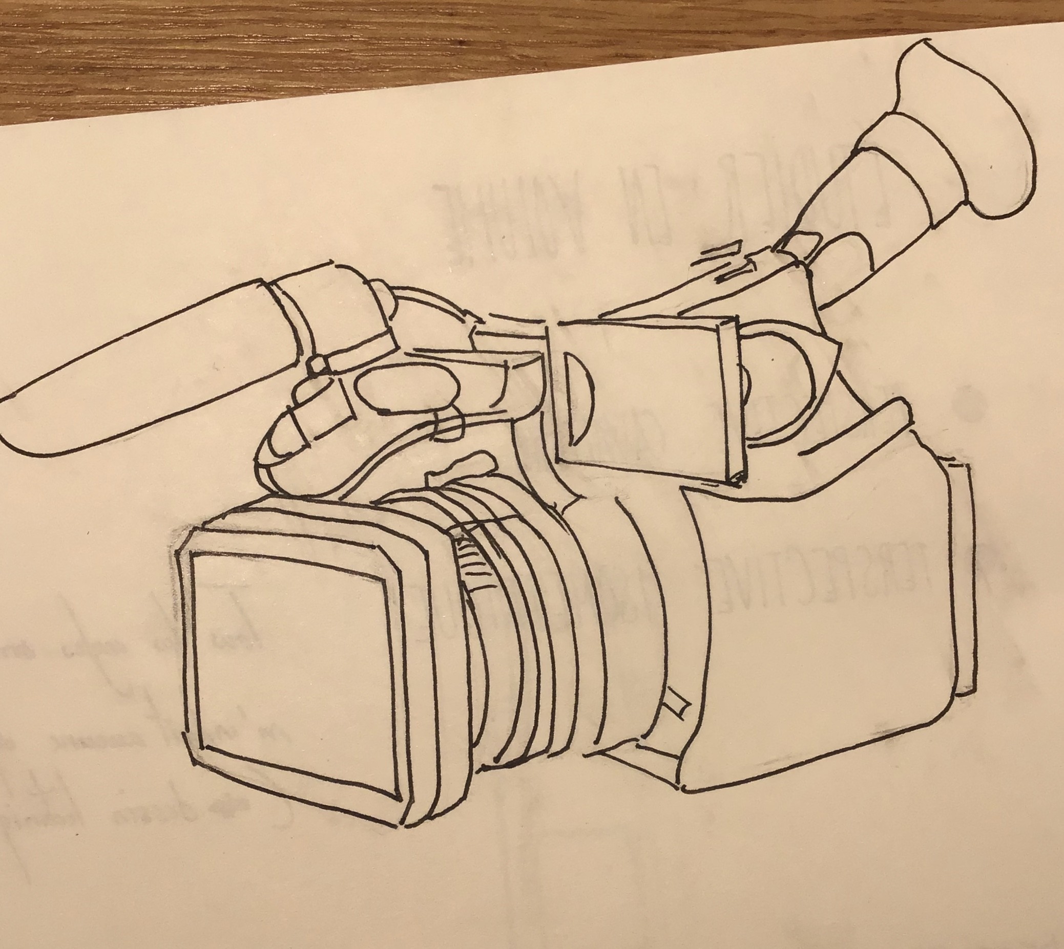 Voici le dessin de la caméra. Je pense que j'ai été trop dans les détails. Toujours un peu dur pour la perspective. J'ai regardé la correction et merci pour avoir remontrer le fait d'avoir le parallélépipède puis le découper. Comme d'hab, vos commentaires sont les bienvenus