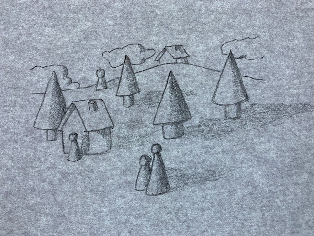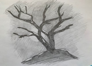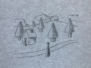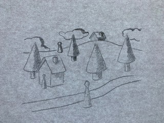 Pour ce dessins, c'est sympa, mais il faudrait pour une lumière plus "classique" (là on dirait qu'elle est très très forte et créé donc beaucoup de contraste) dégrader plus avec une teinte intermédiaire de gris moins foncé que tes ombres. Aussi ton paysage n'a pas d'ombre du tout, tu pourrait en faire sur la colline. Tu peux aussi suggérer des ombres portées au sol si tu te sens. En tous cas ça rend bien c'est bien contrasté :)