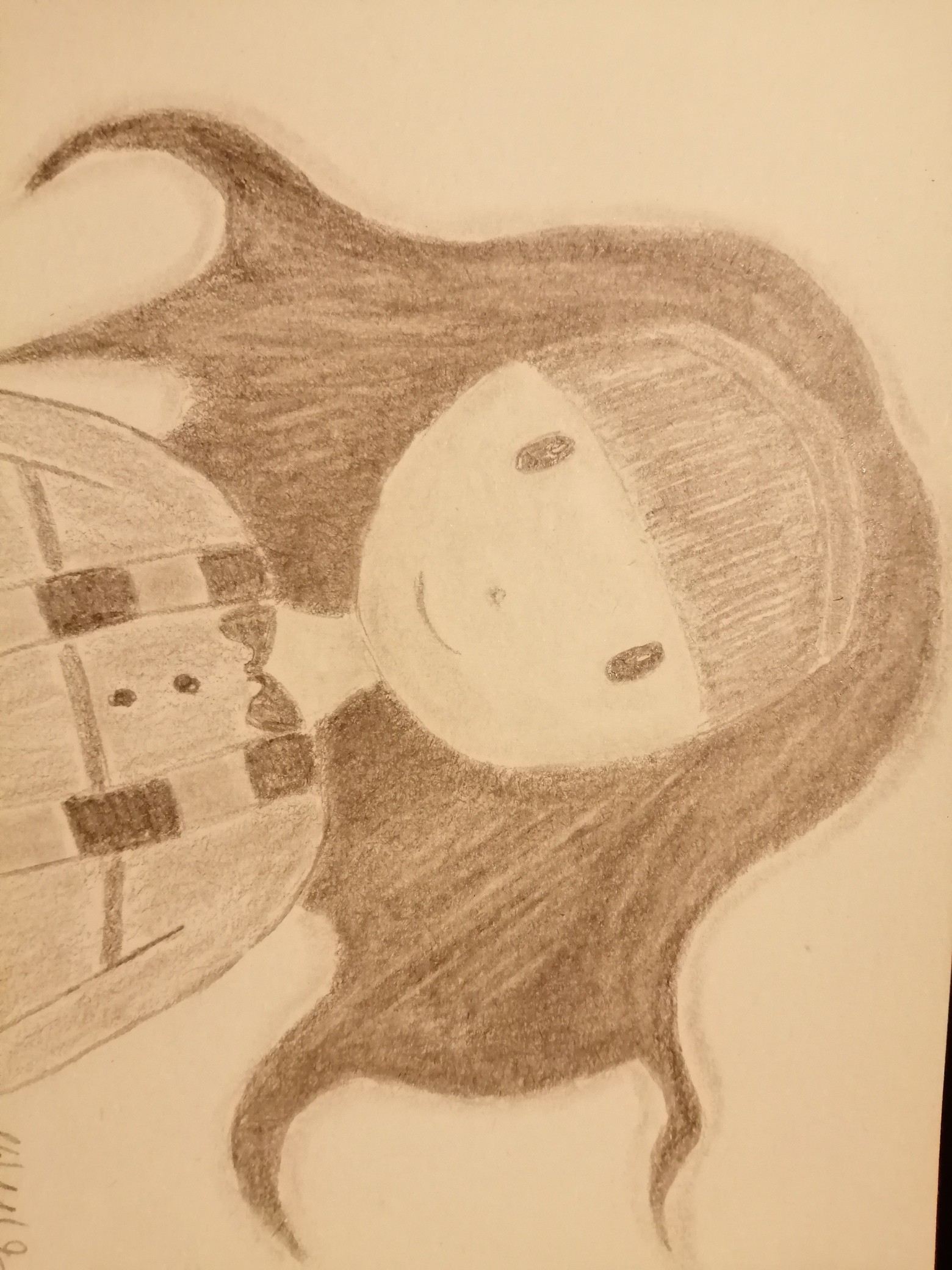 C'est mignon comme dessin :) Tu as mis tes valeurs surtout en aplats sans vraiment d'ombres et de lumières. Pour un style cartoon comme tu as choisi ça fonctionne :) Attention juste à redéfinir un peu le contour de tes formes qui sont parfois un peu floues, comme le contour du visage par exemple. Si tu voulais quelque chose de plus réaliste, comme si ton personnage était une figurine dans la réalité par exemple, il pourrait être utile des se servir des valeurs pour donner des informations de volume, ombres et lumières. Il faudrait dans ce cas définir la direction de la lumière et foncé les ombres, et faire des dégradés pour montrer les volumes. Bon travail en tous cas :)