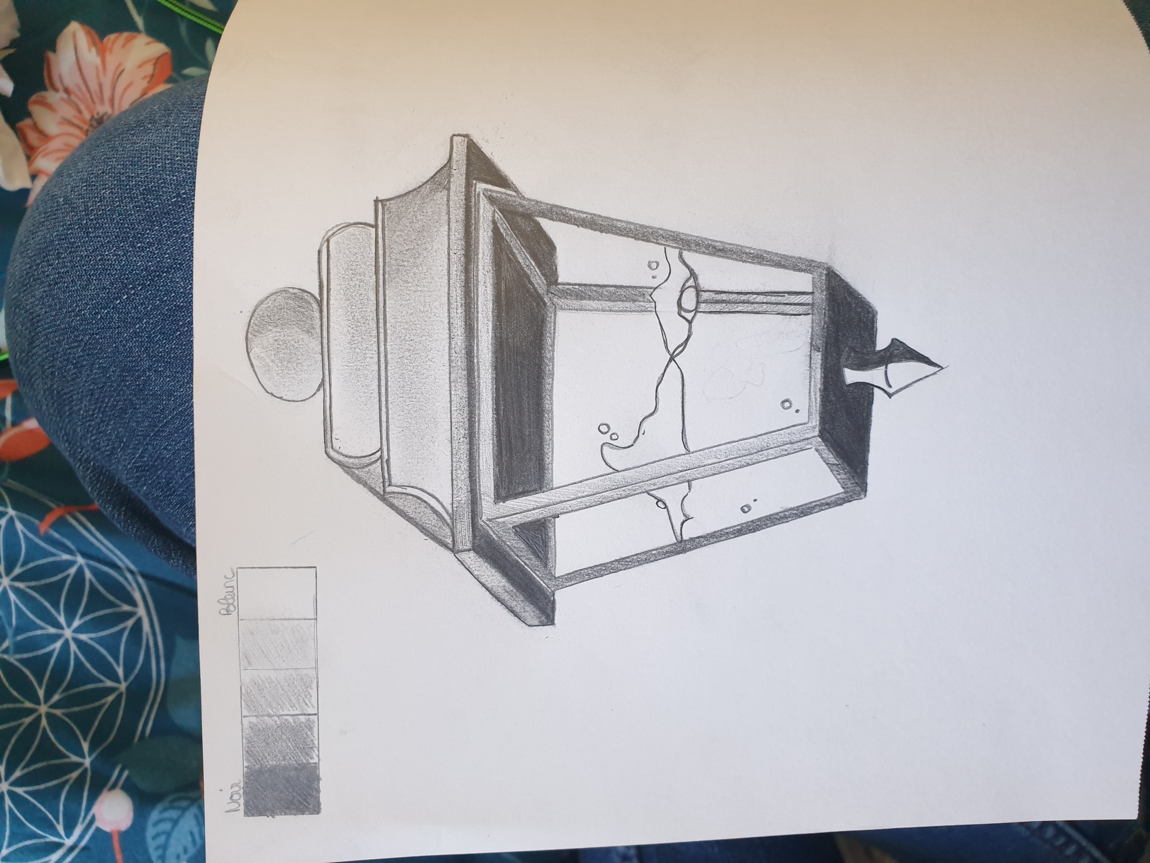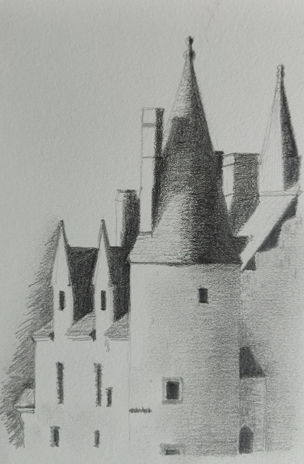 Joli travail ! Attention juste à bien délimiter le bord des formes sans faire trop flou. En tous cas les valeurs sont bien réalisées :)