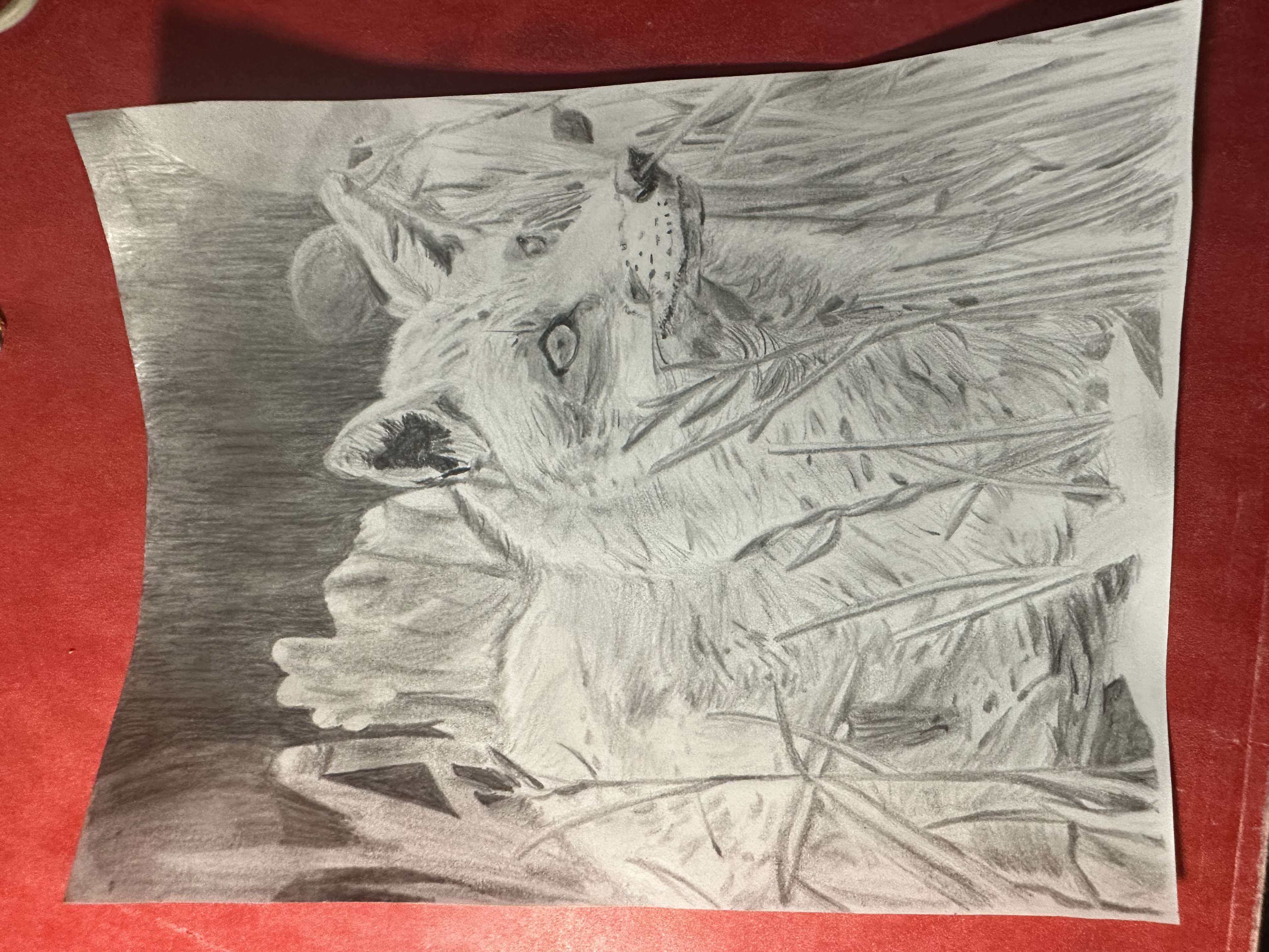 Bonjour Covid63gmailcom, c'est très bien ça! Essaie de mettre plus de valeurs différentes de gris, ça donnera plus de volume à ton dessin. Fais attention de ne pas donner un effet hachure à tes gris, ou pour la texture du pelage.