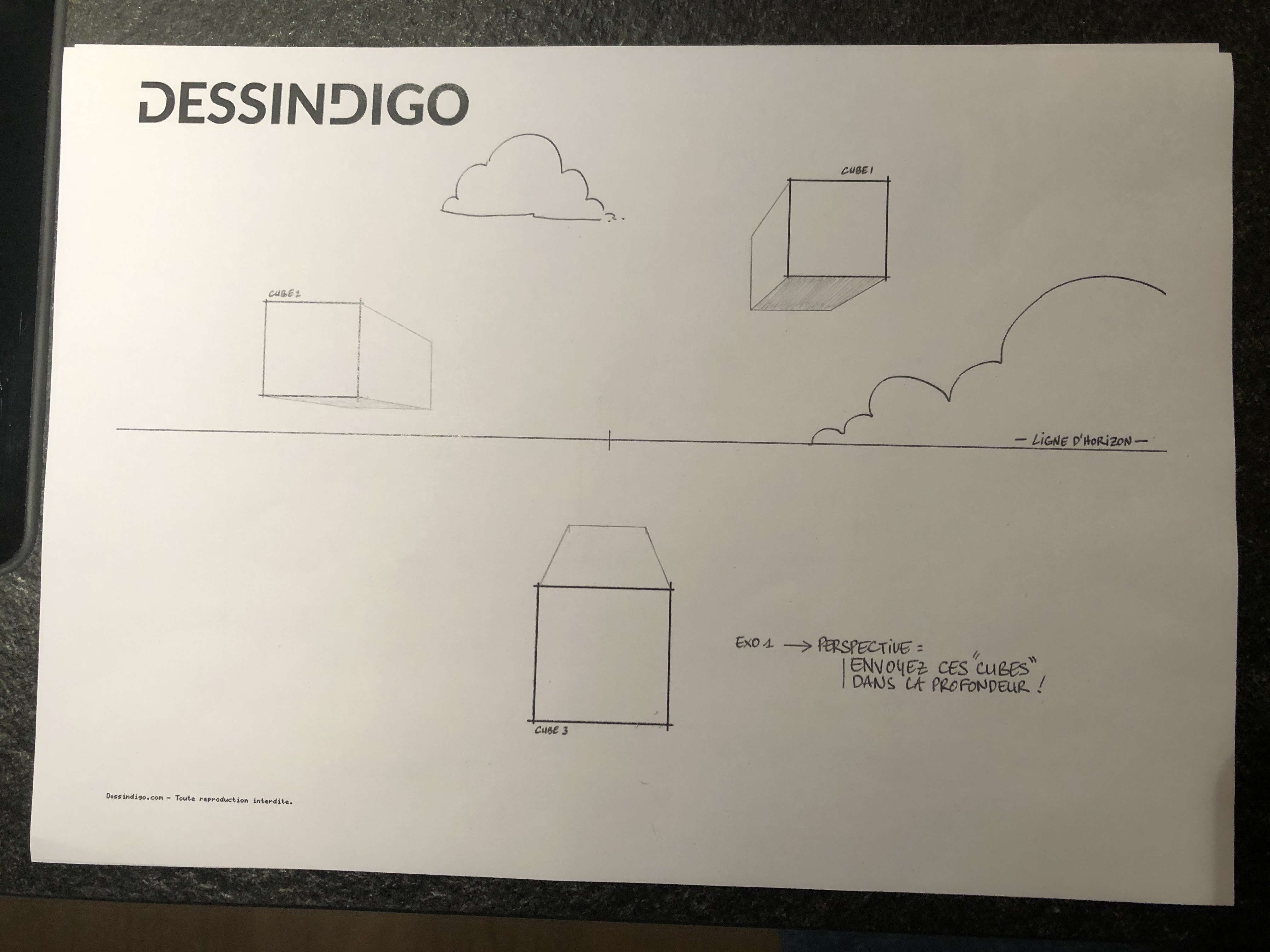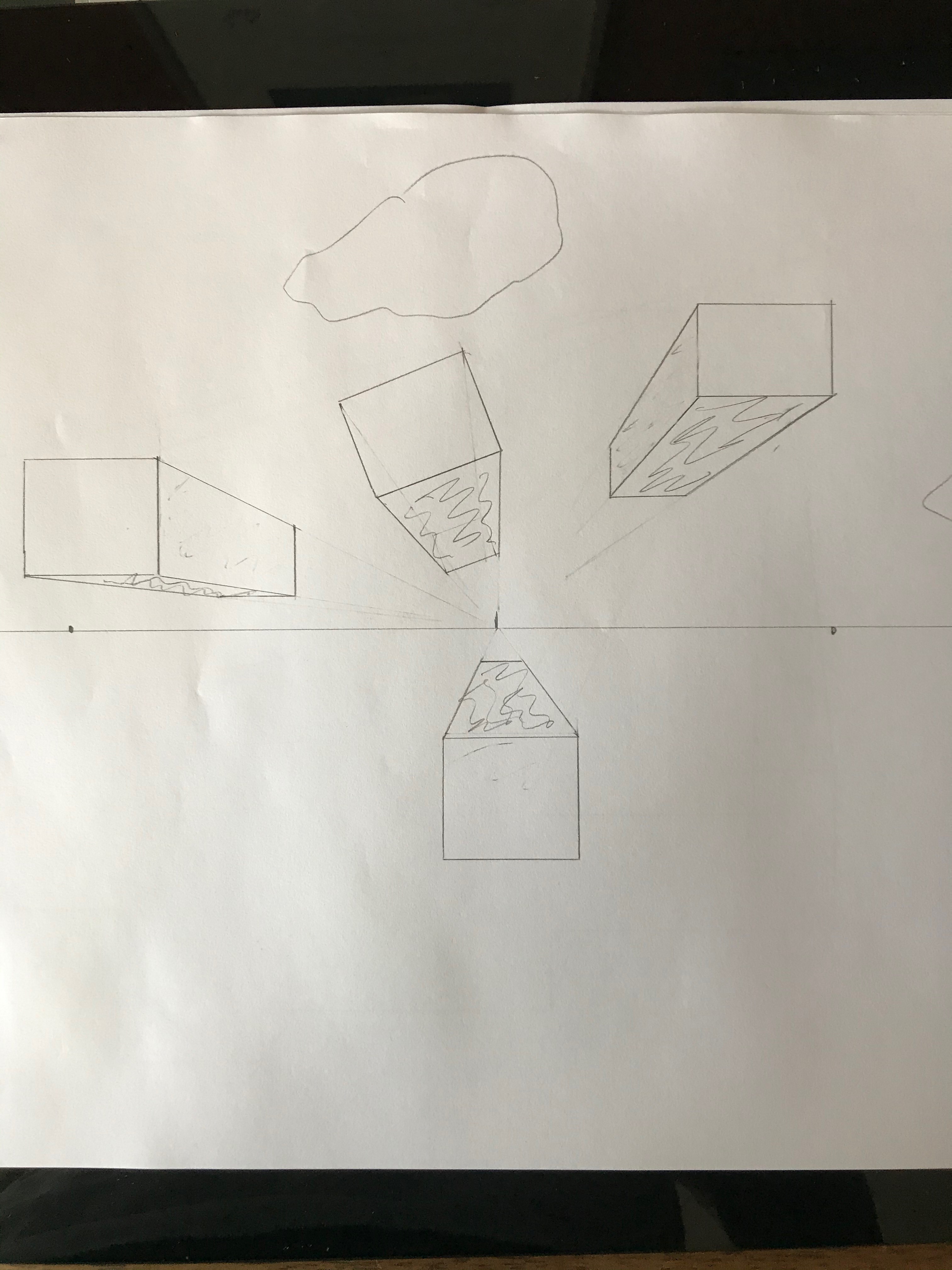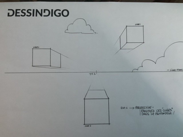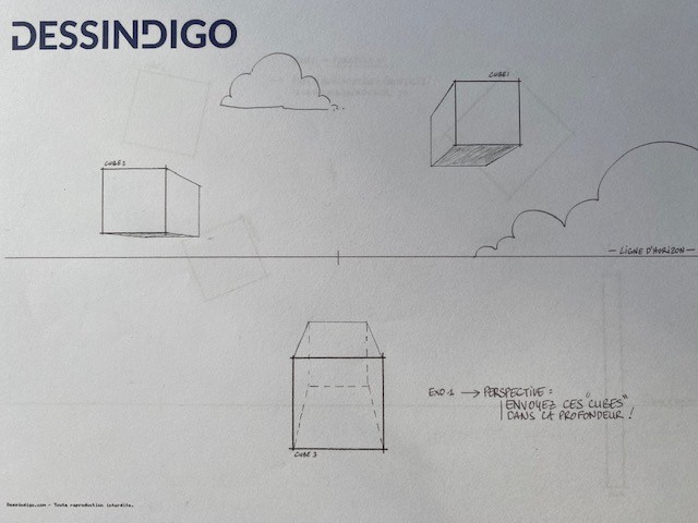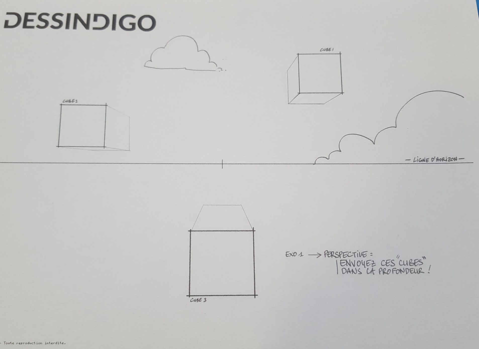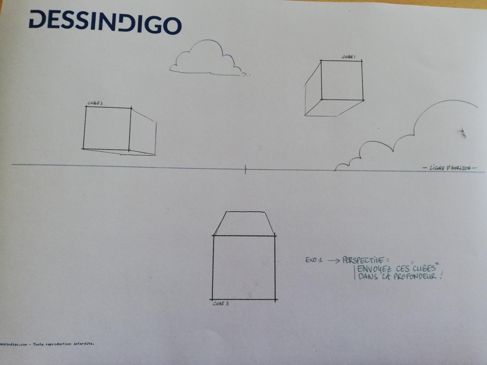 Voici mon exercice n°1 , j'ai pris la liberté de rajouter un cube pour m'habituer a la perspective.