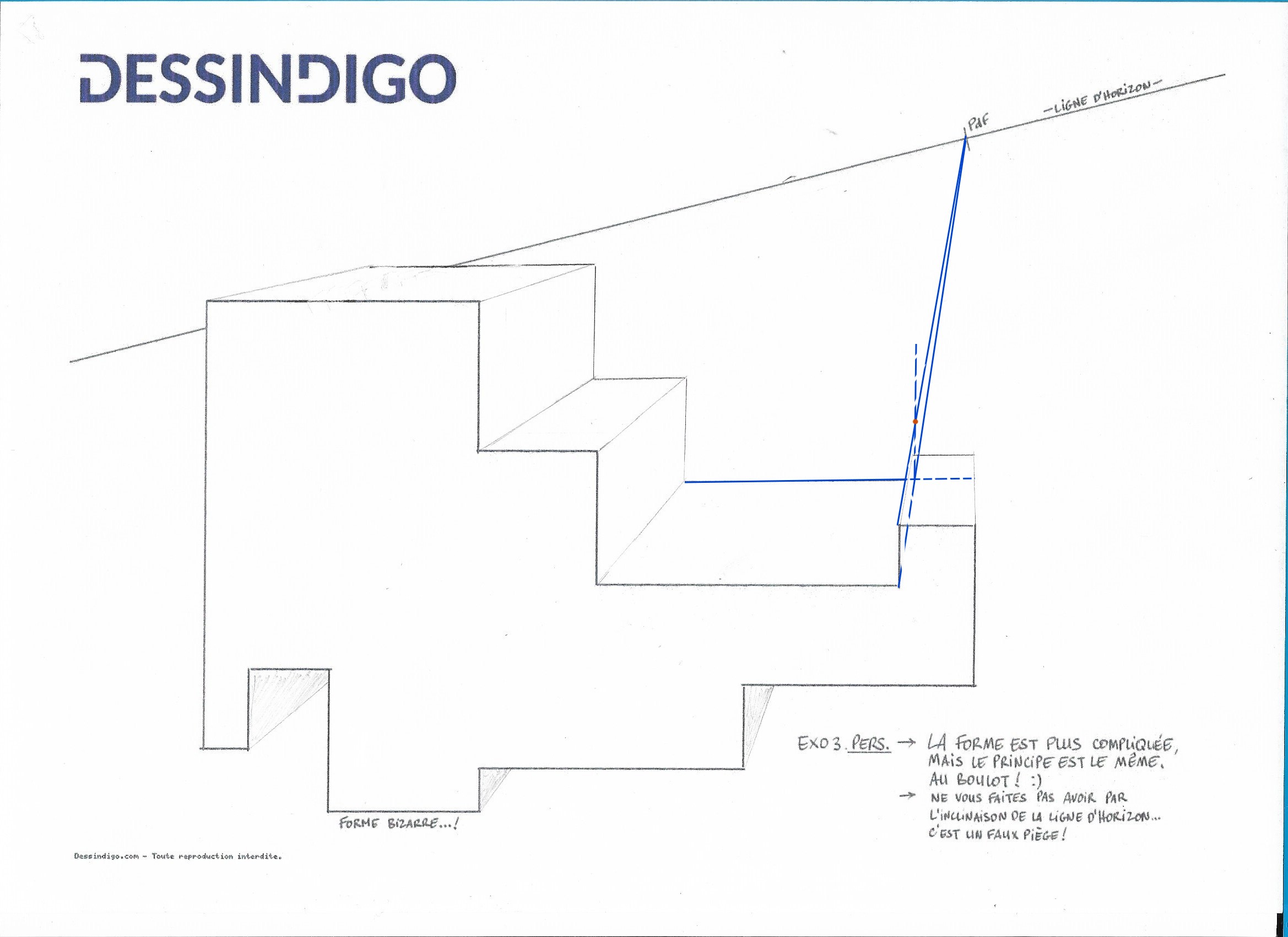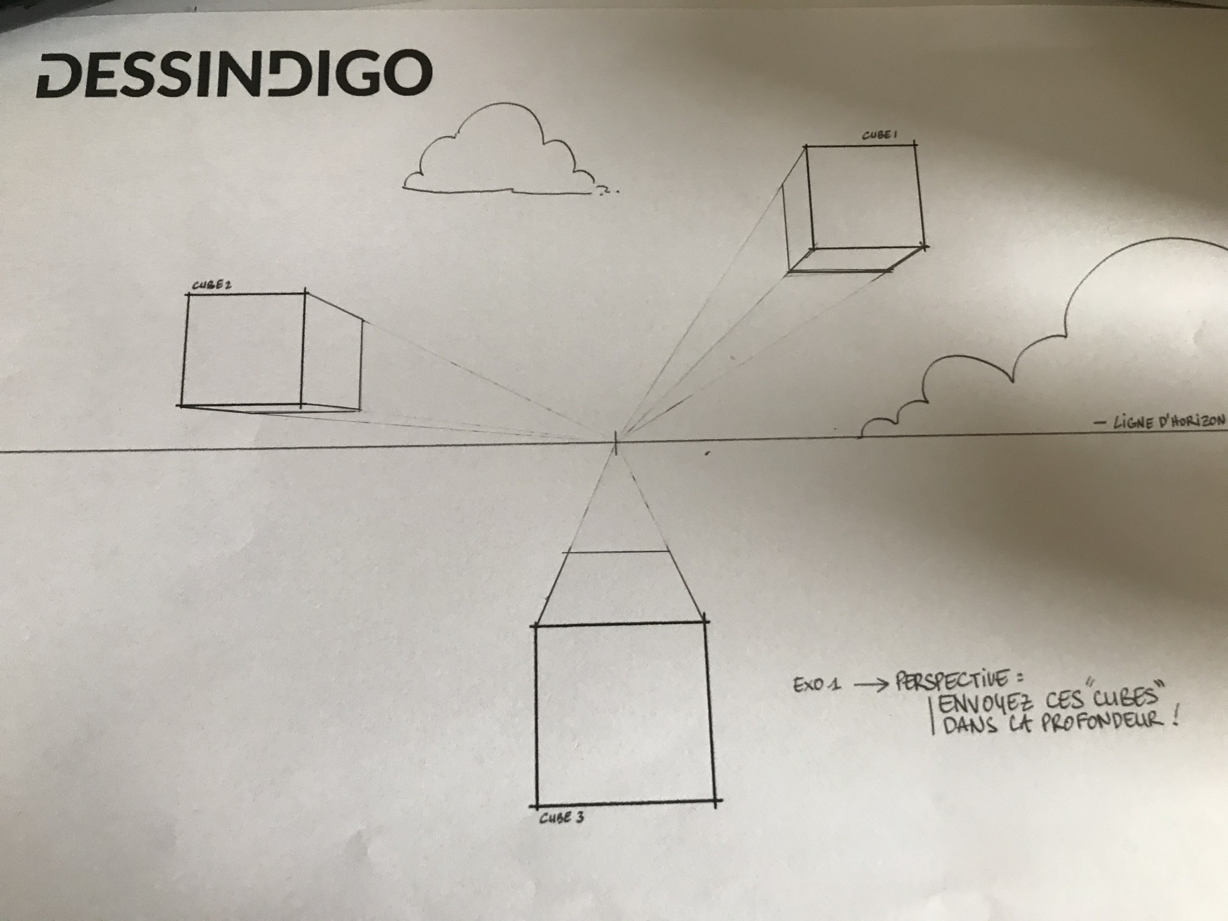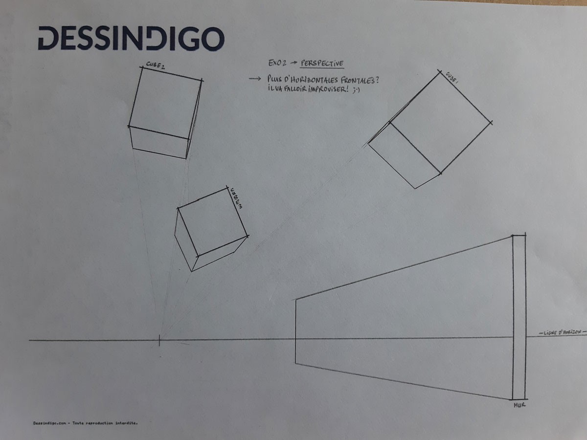 voici mon exercice. En tout cas merci car pour la 1er fois de ma vie je comprend ce que c'est la perspective😁 . Car les rare fois où je l'ai utilisé ce n'était pas de la bonne manière. donc les trait de construction+ la perpective et moi ça faisait 2😆