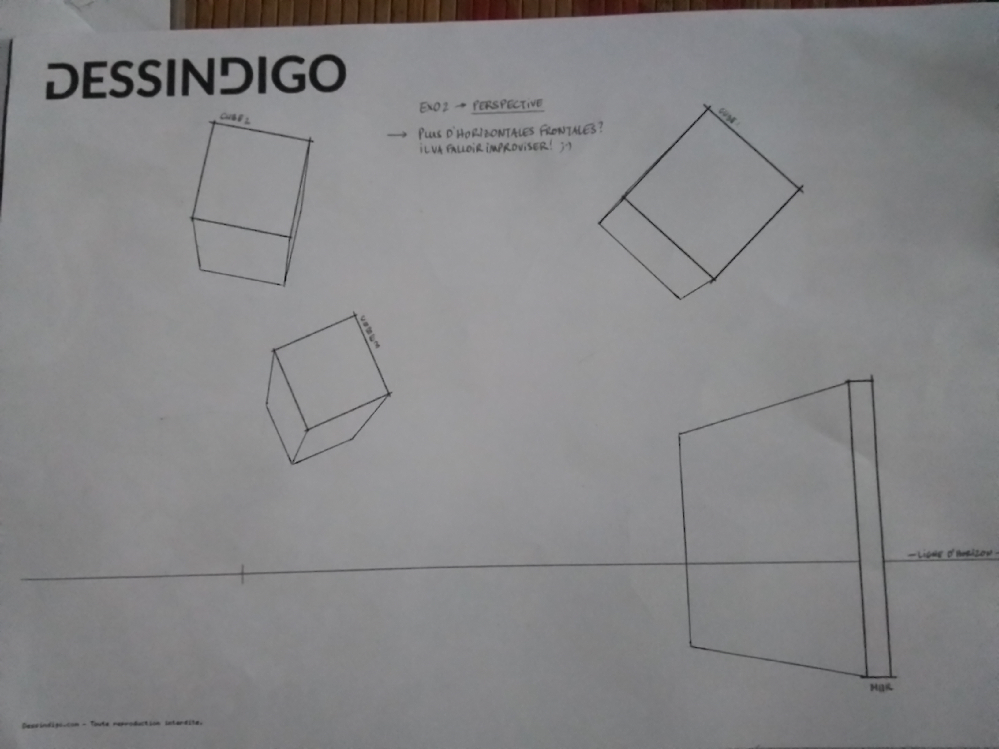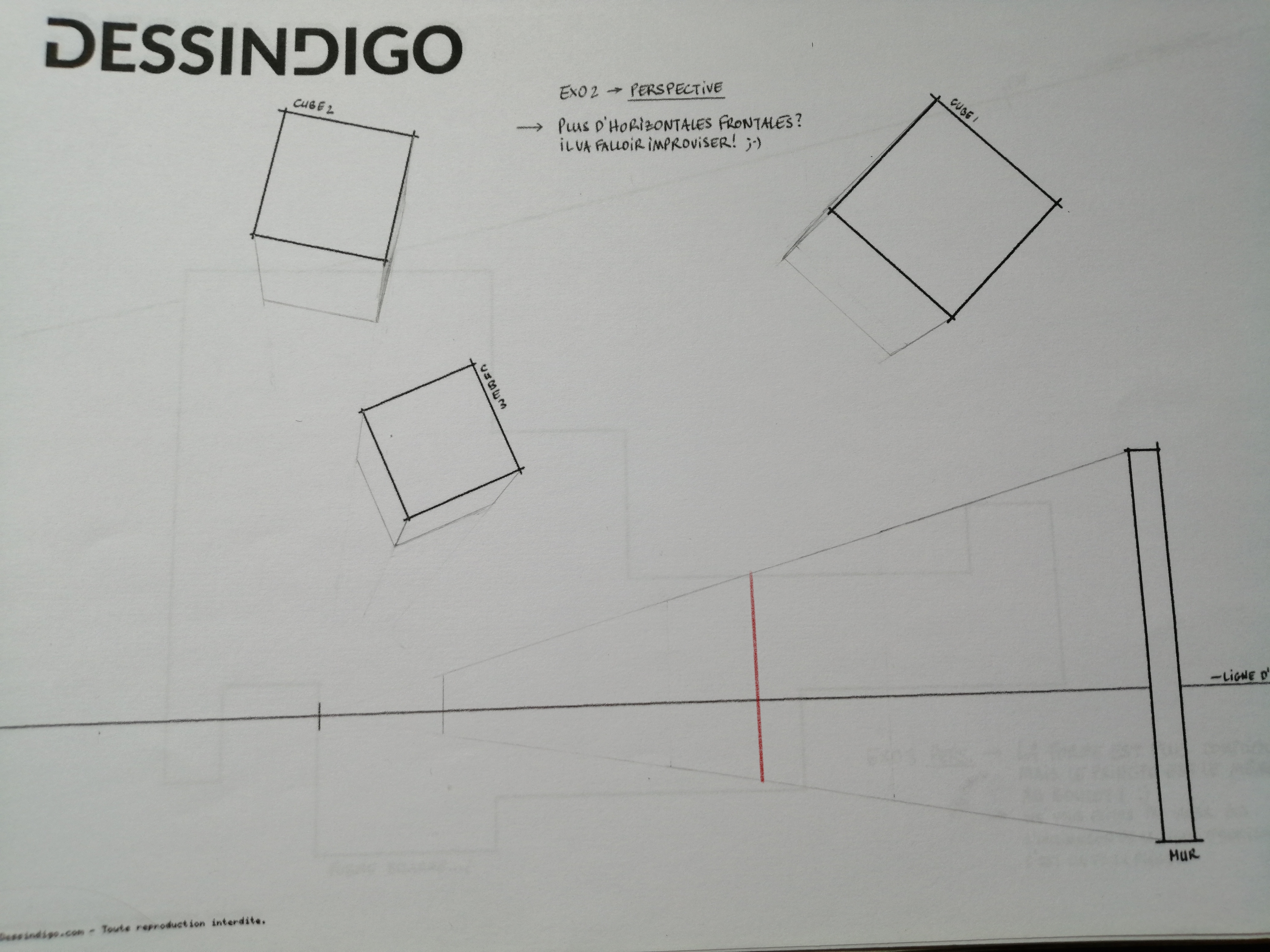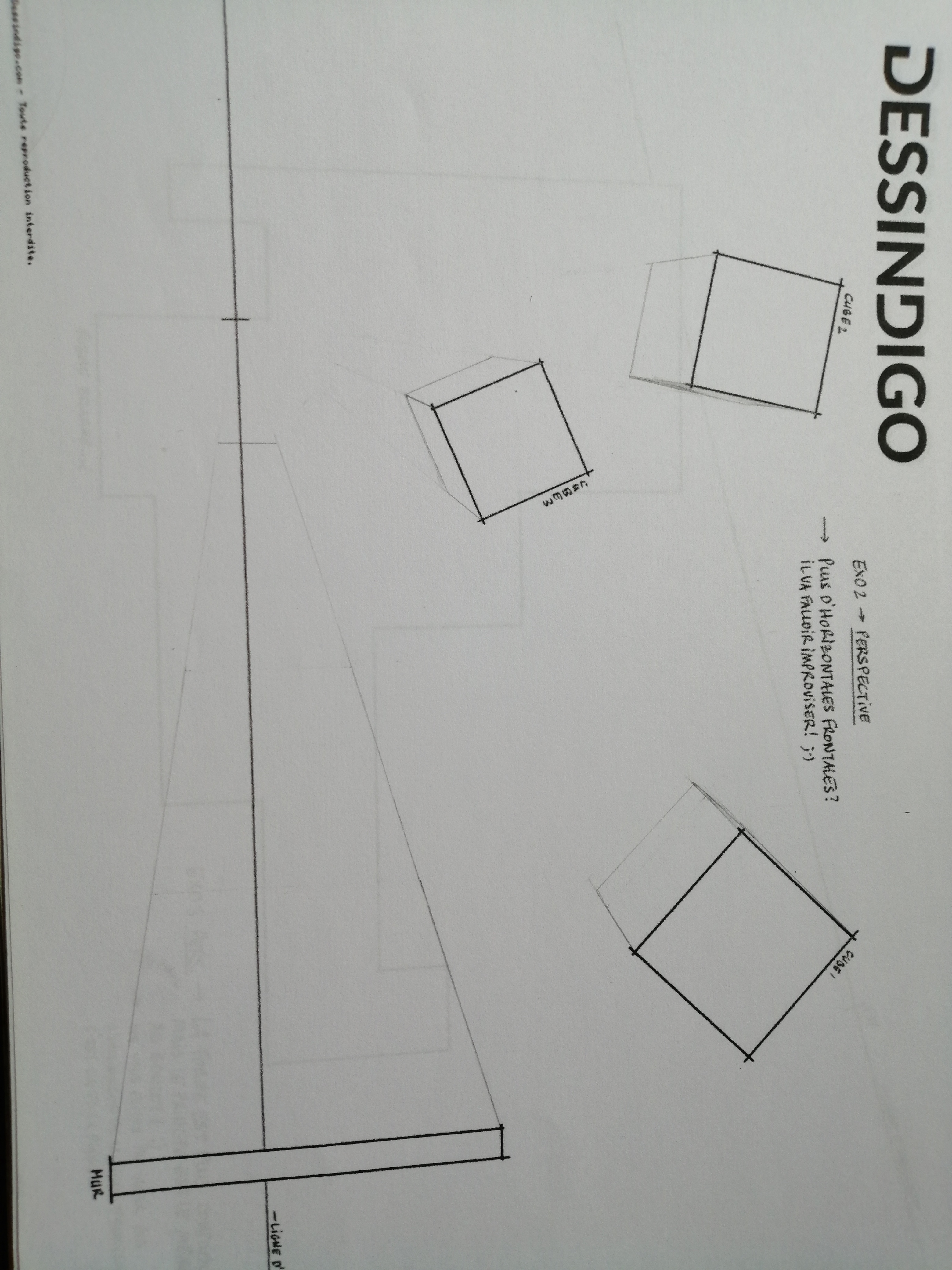 Bonjour. Je vous envoi mon exercice. Je ne sait pas si vous le dites dans la précédente vidéo, mais je me demandais comment je c'est à quel niveau je dois couper mon cube. ( quand je trace mes lignes pour rejoindre mon point de fuite , je ne c'est pas a combien de cm je dois m'arrèter pour fermé mon carré, pour que ce ne soit ni trop long ,ni trop court ). Je ne sais pas si vous m'avez comprit?
