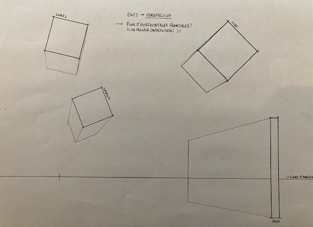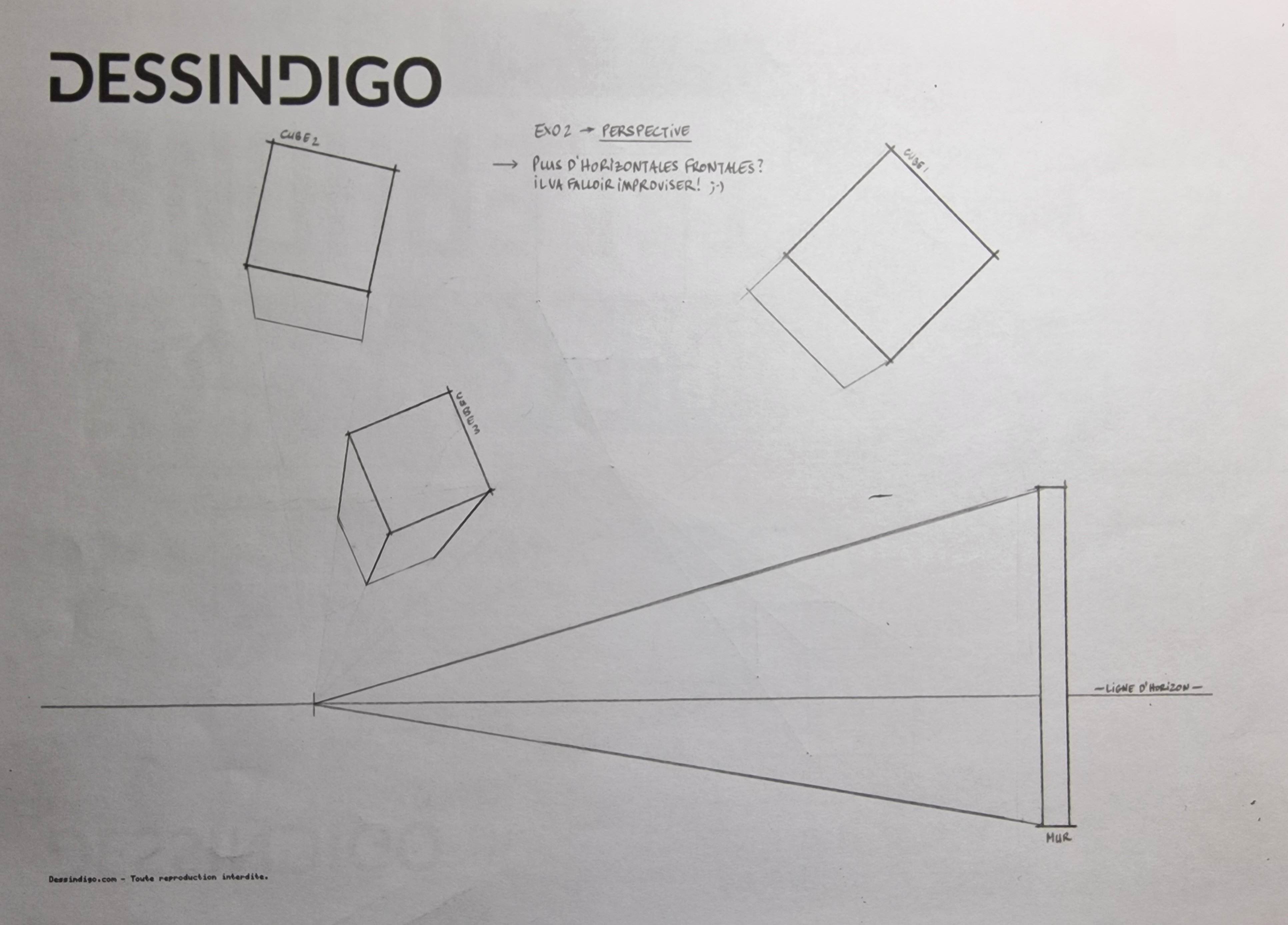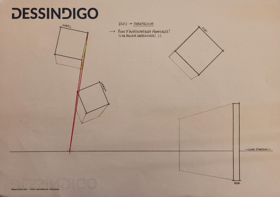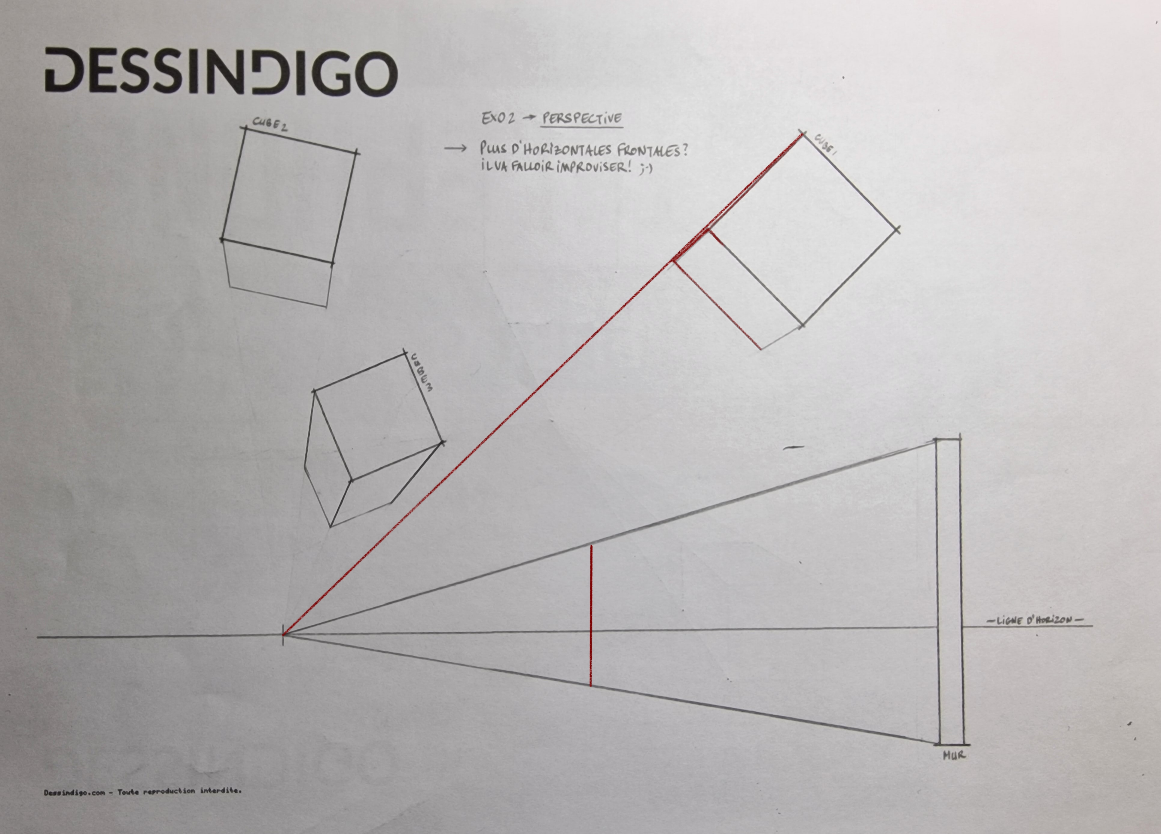 Bonjour. Je vous envoi mon exercice. Je ne sait pas si vous le dites dans la précédente vidéo, mais je me demandais comment je c'est à quel niveau je dois couper mon cube. ( quand je trace mes lignes pour rejoindre mon point de fuite , je ne c'est pas a combien de cm je dois m'arrèter pour fermé mon carré, pour que ce ne soit ni trop long ,ni trop court ). Je ne sais pas si vous m'avez comprit?