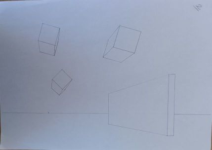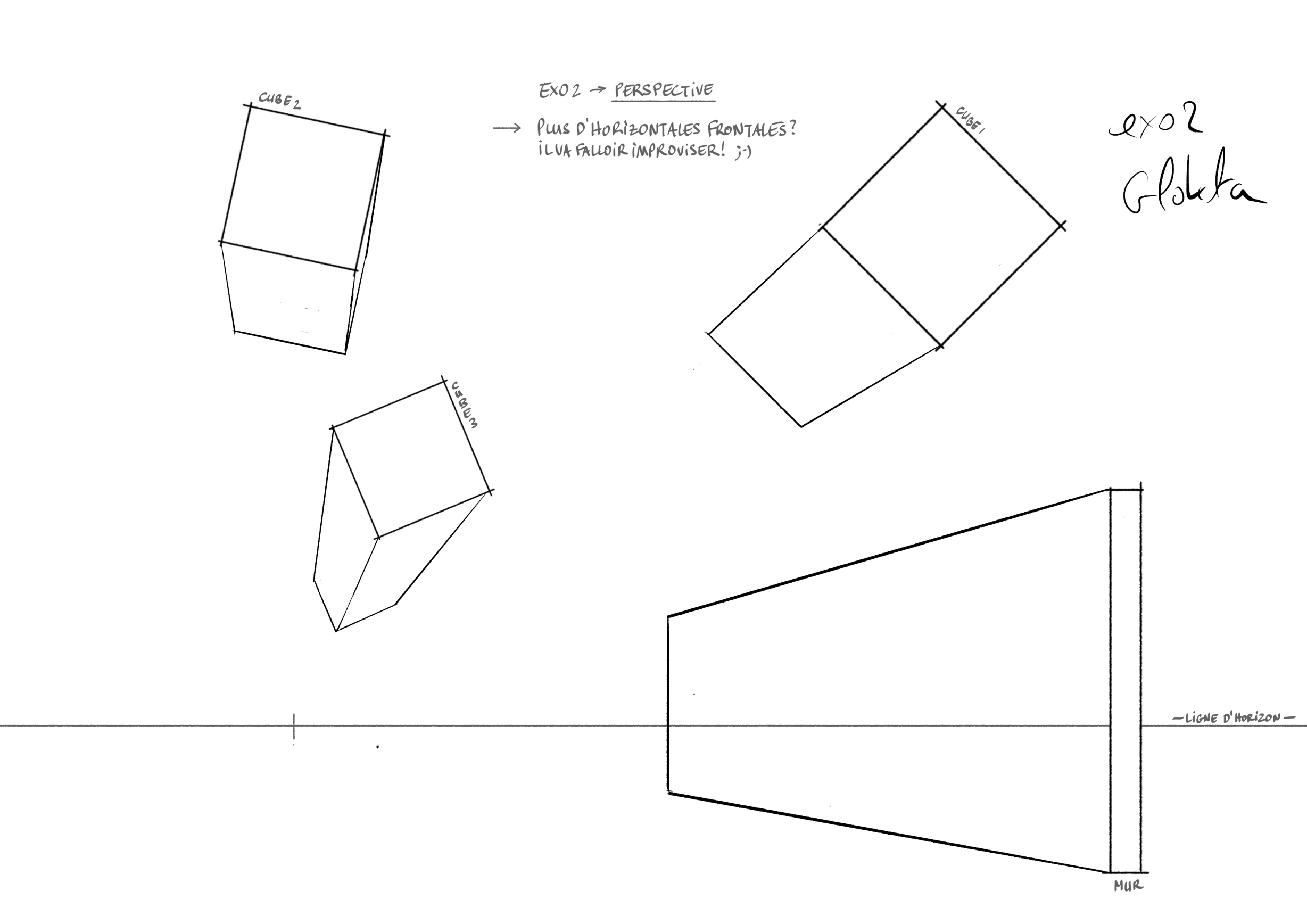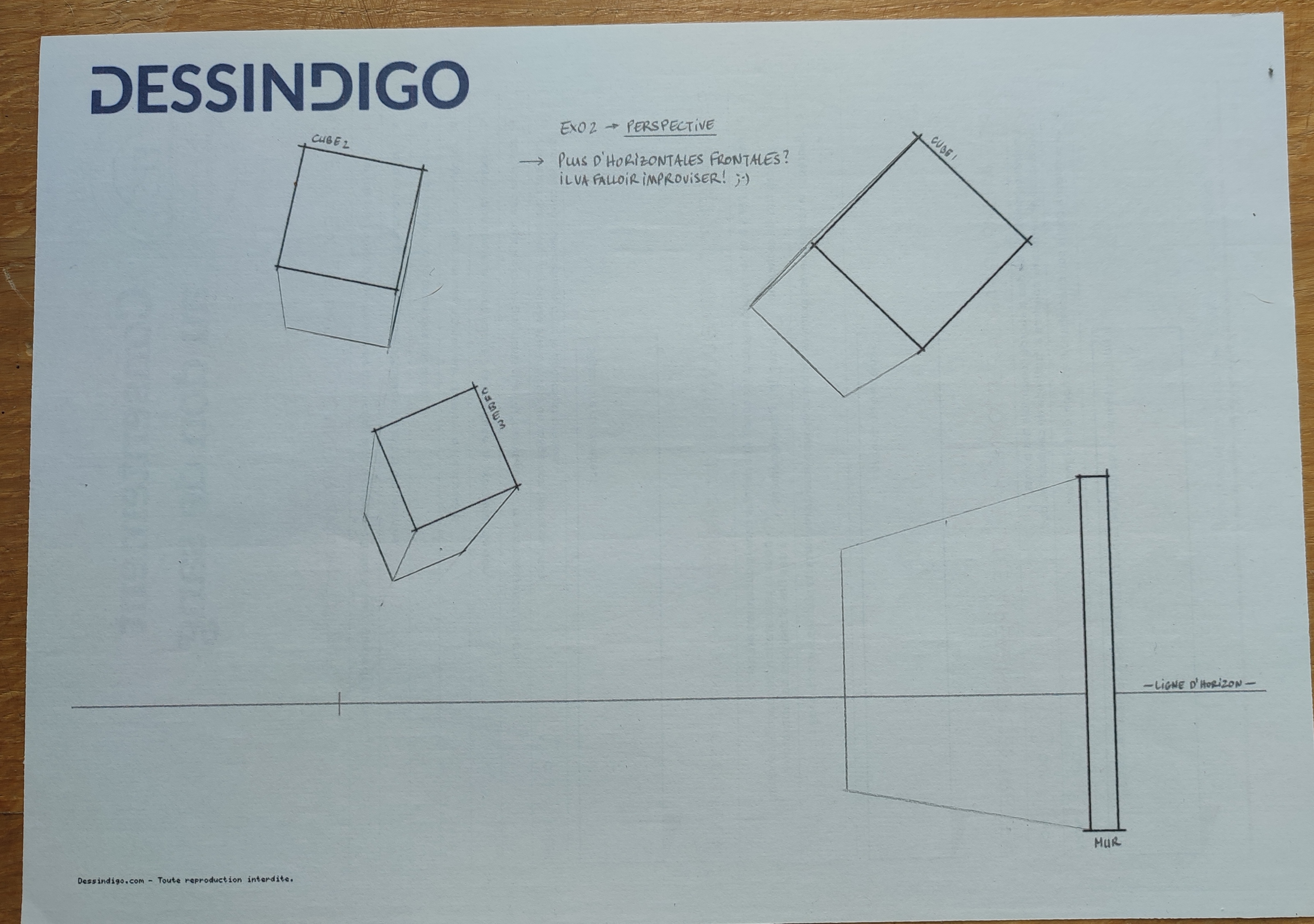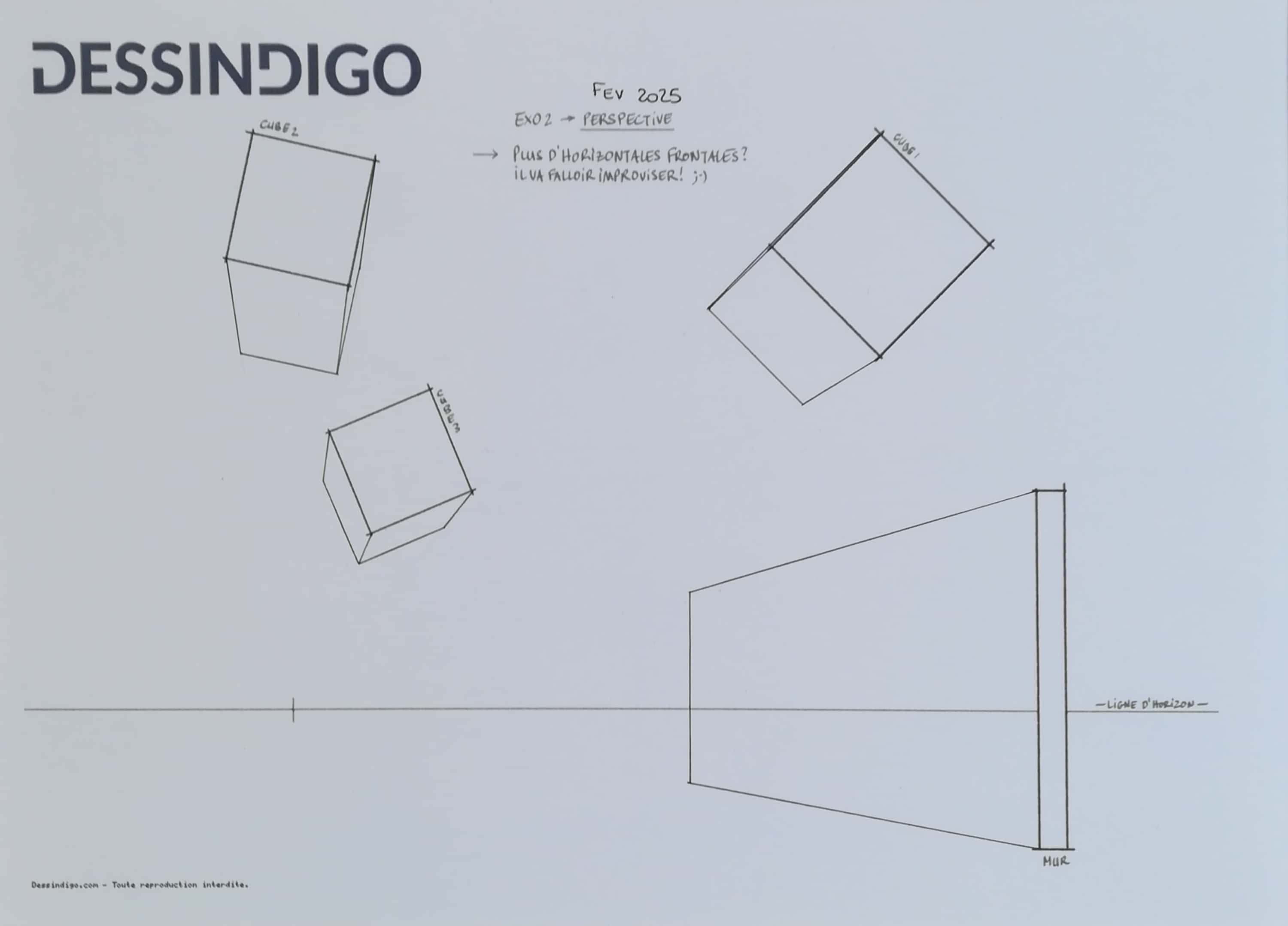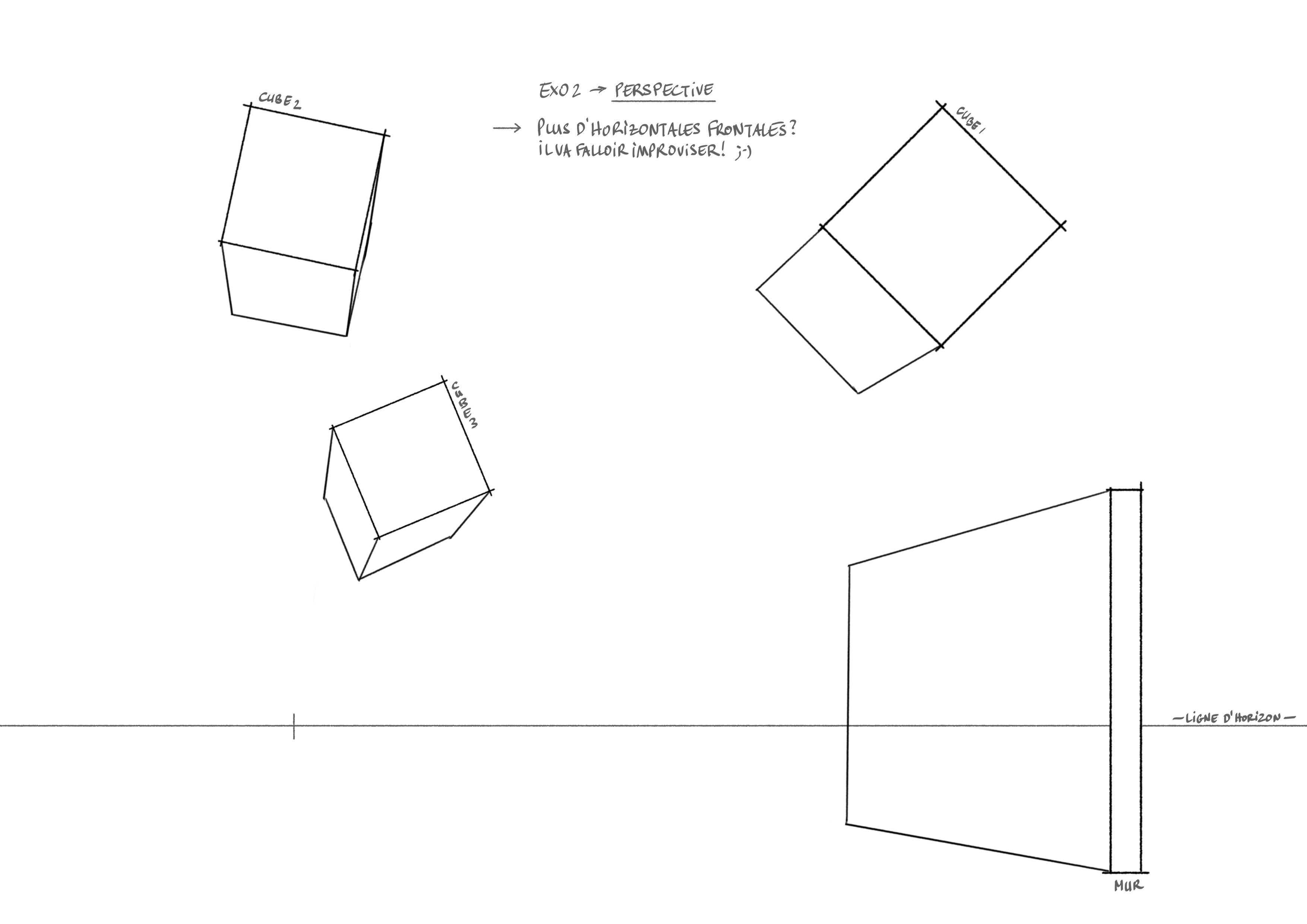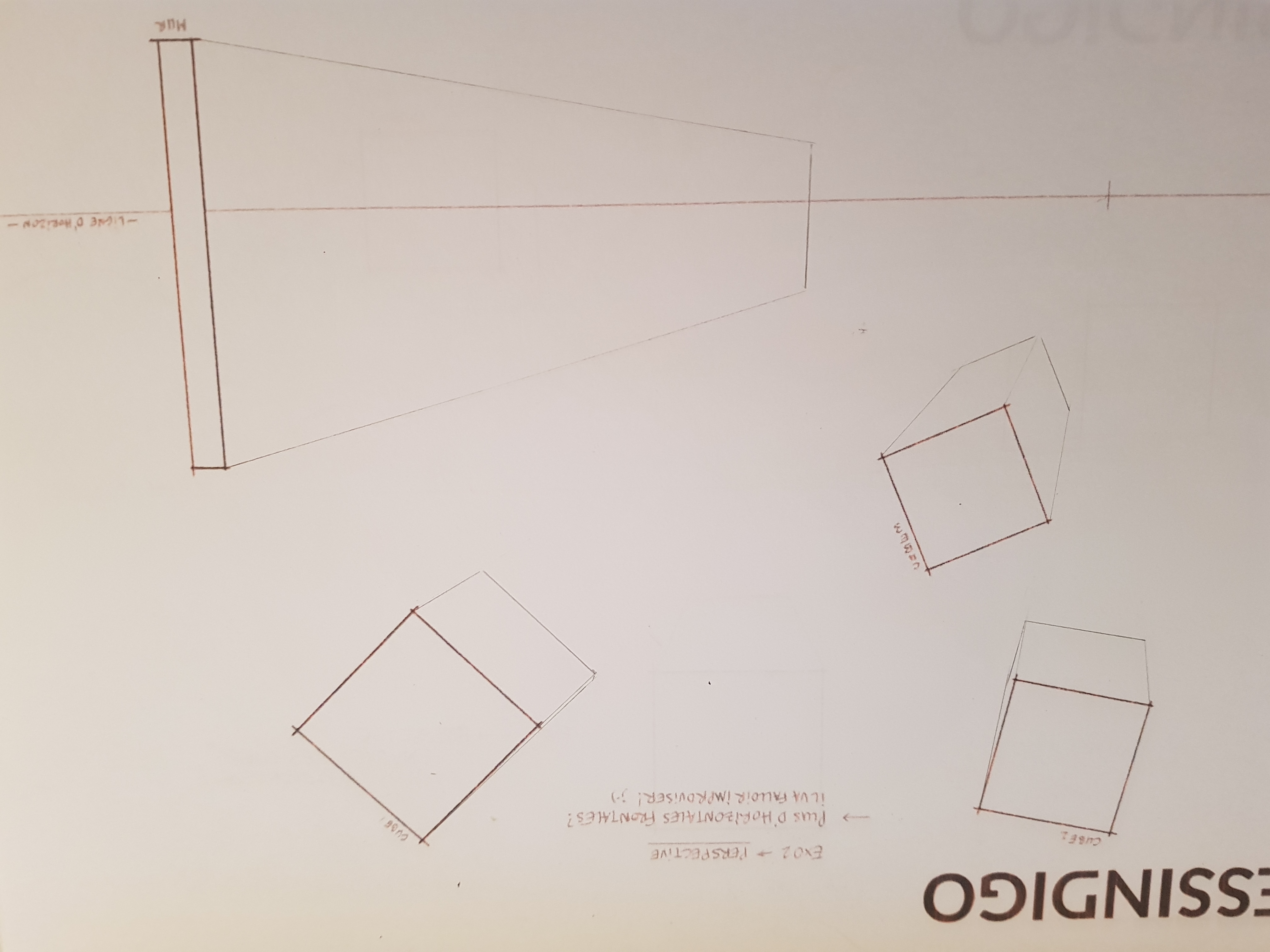 Voici un des exercices sur les perspectives, je crois que je commence à comprendre le truc. Vos cours sont super clairs comme les explications sur des choses aussi complexes que la perspective. Merci à vous.