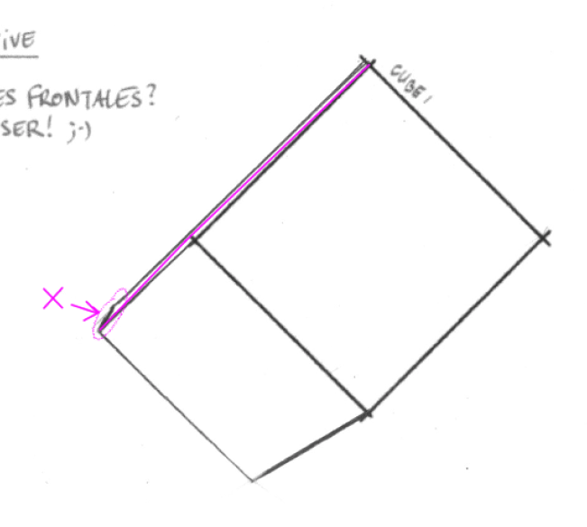 C'est ça ! Par contre en voulant absolument faire la face quasiment cachée du cube de droite, l'imprécision d'un de tes traits a tout faussé (vite arrivé avec de genre d'angle très précis). Ca fonctionne aussi bien en ignorant volontairement cette face ^^
