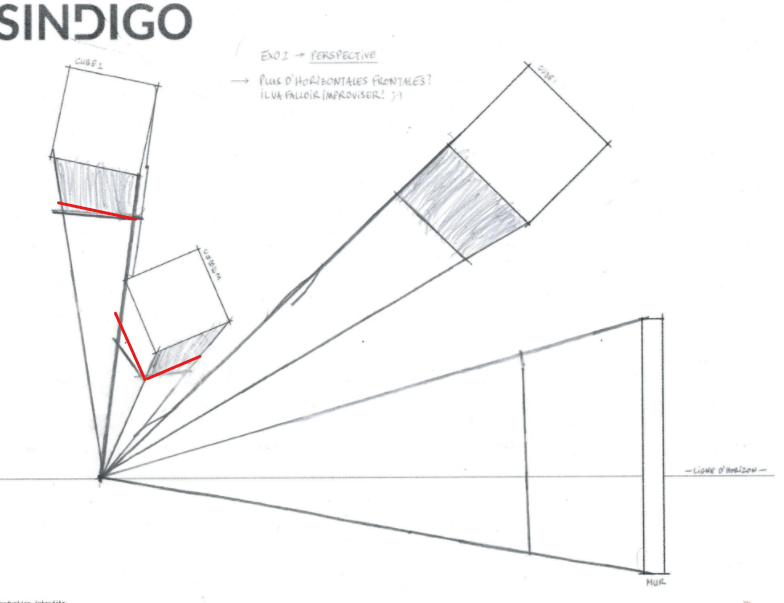 C'est presque ça, il faut juste que tu fasses plus attention à ce que tes lignes qui ne fuient pas vers le point de fuite soient bien parallèles. Je te joins une petite correction !