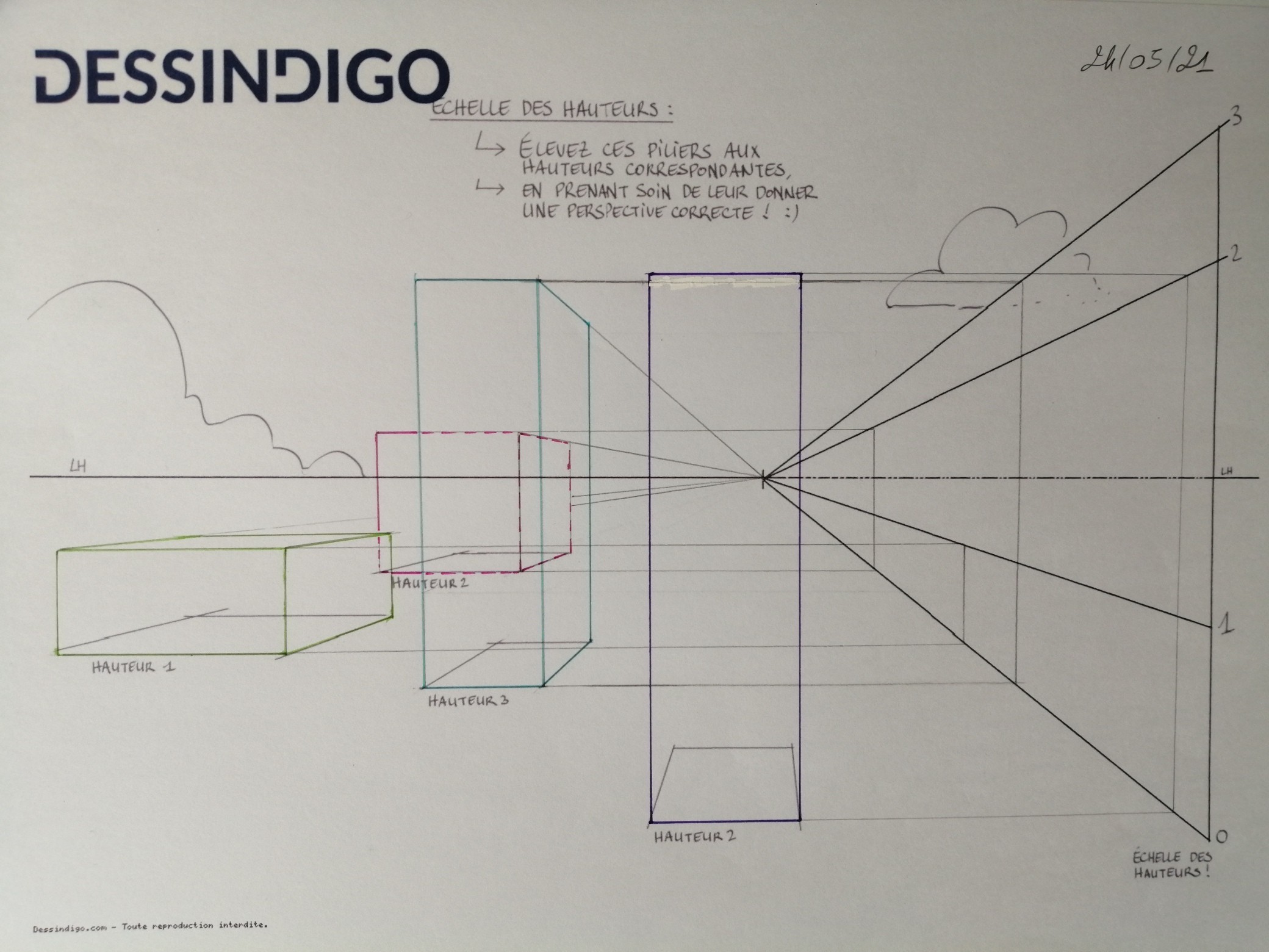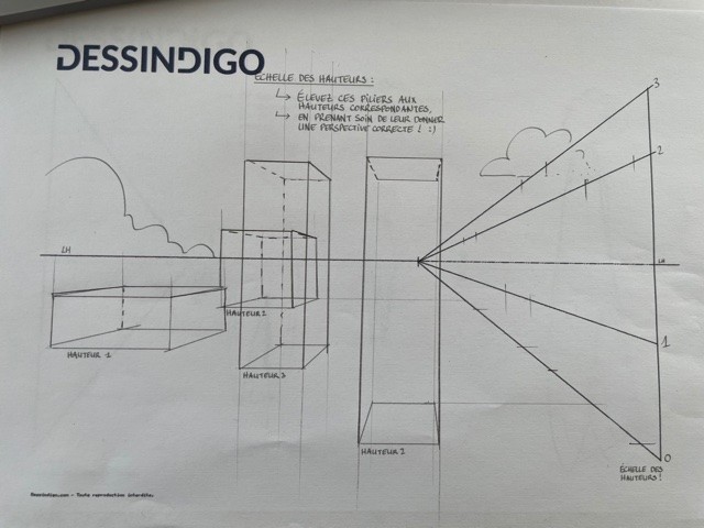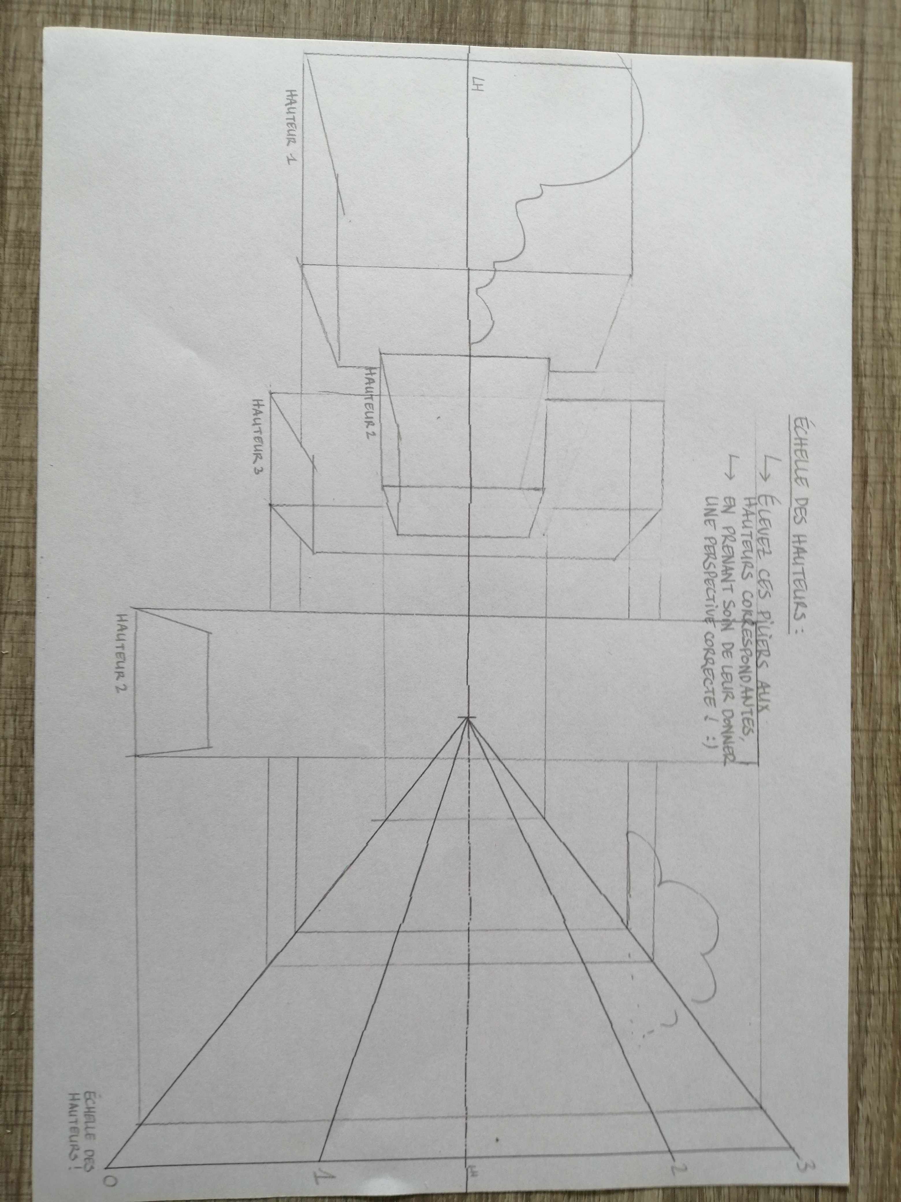 Encore bien réussi sur les reports de distances :) Attention par contre aux figures qui sont un peu penchées et souvent de manière un peu différente entre elles. On est sur des parallélépipèdes donc les traits horizontaux doivent être parallèles à la ligne d'horizon et les traits verticaux parallèles à l'échelle des hauteurs ^^