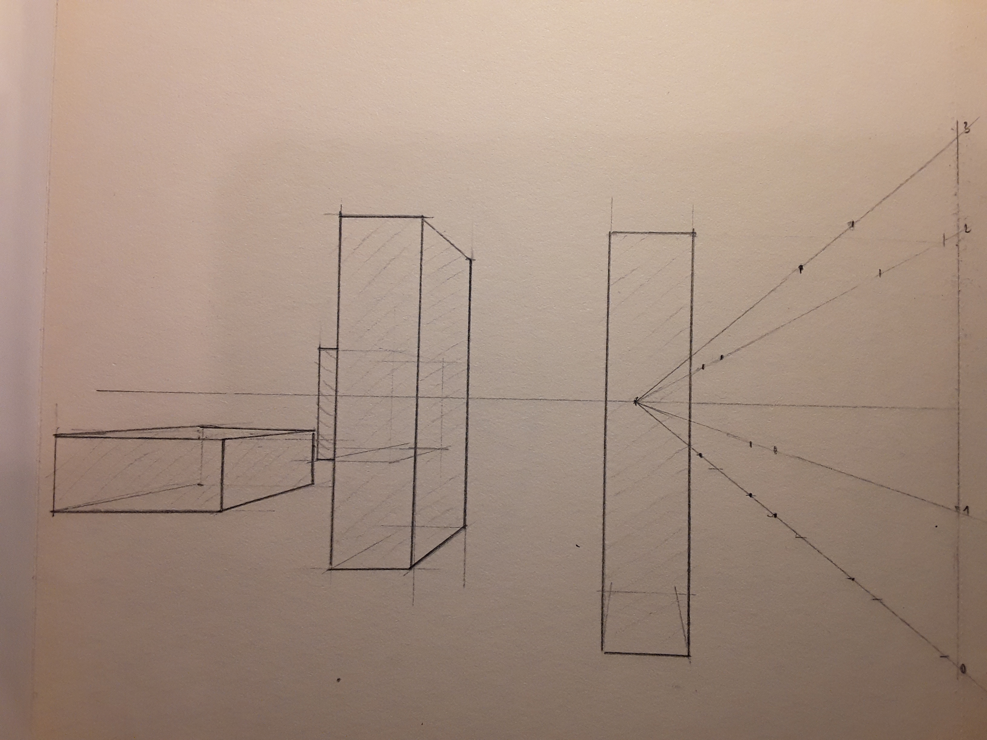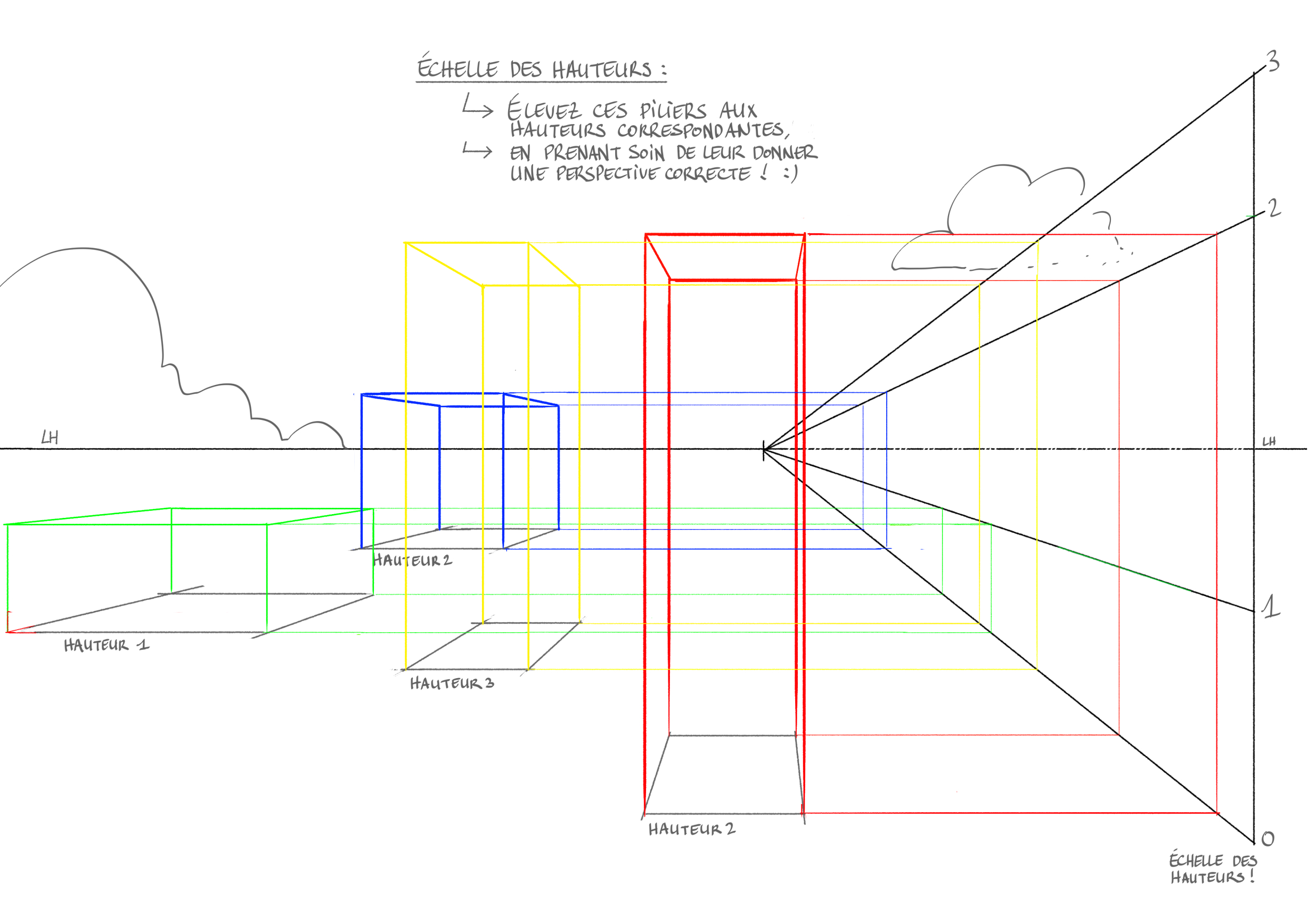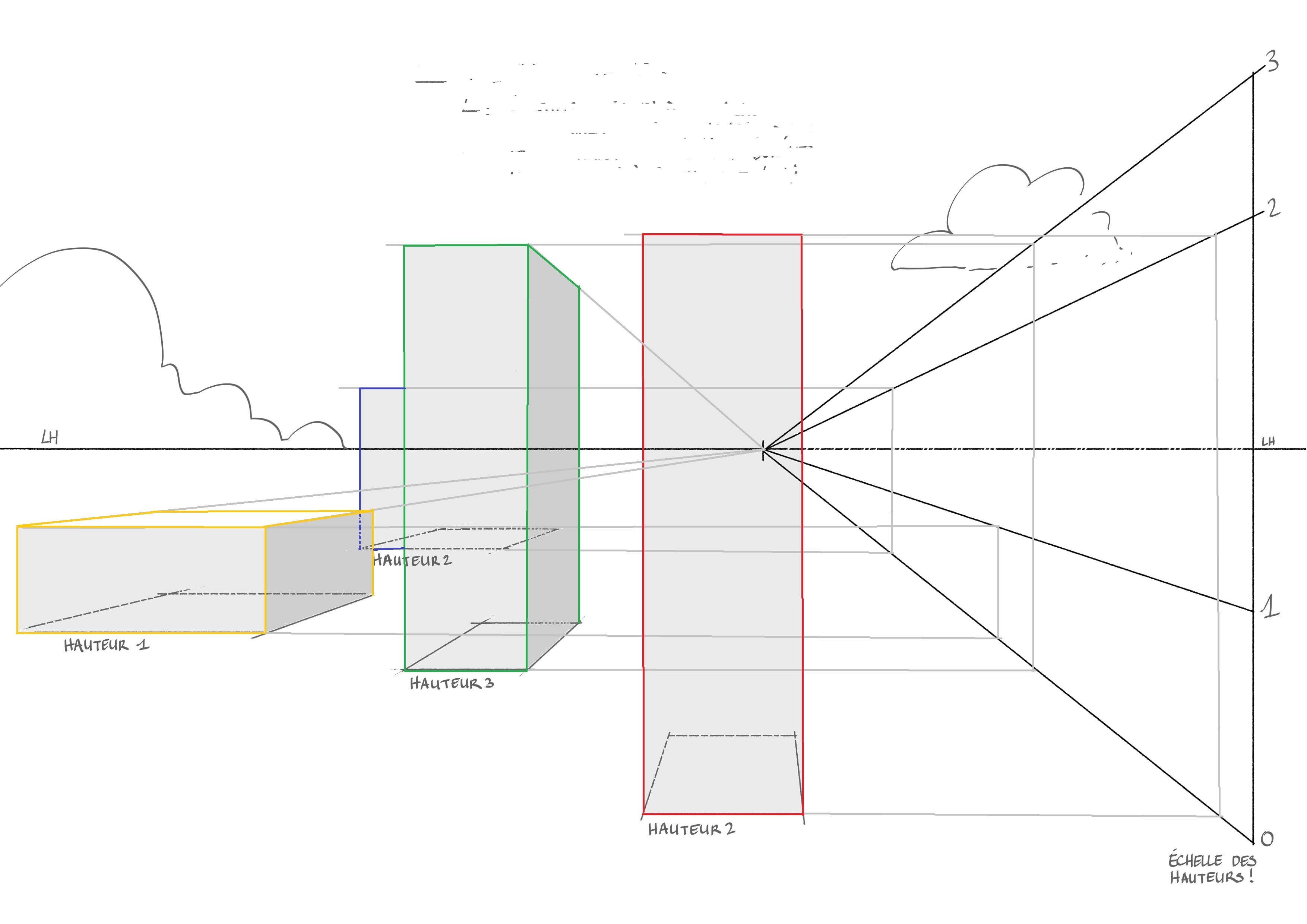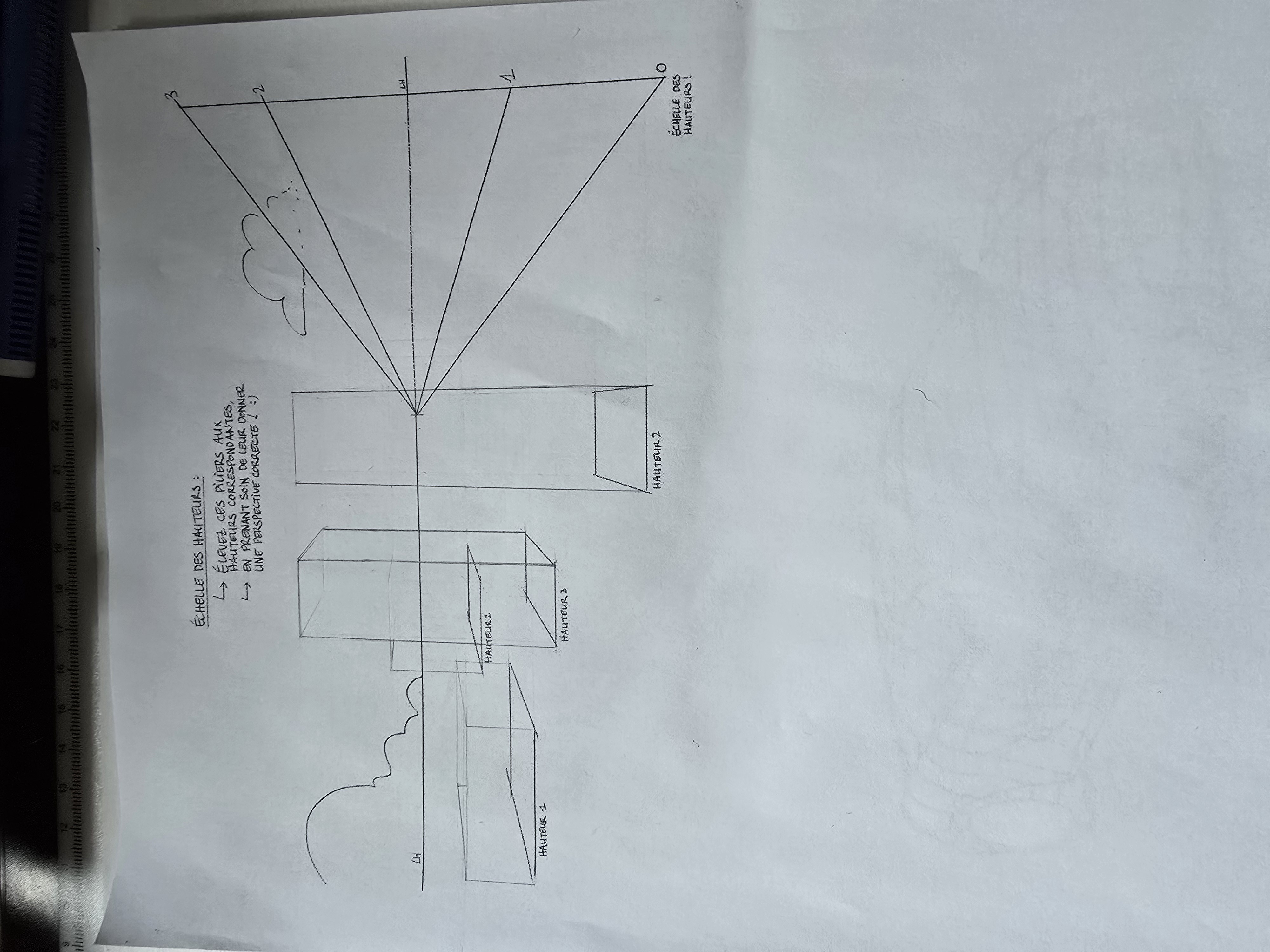 Hello Marie-Claire, c'est vraiment pas mal! Les deux formes de gauche (hauteur 1 et hauteur 2) sont OK, mais attention aux deux autres formes au premier plan, j'ai l'impression que tu as mélangé les lignes de report entre la hauteur 3 et la hauteur 2. À part ça c'est du bon boulot! ^^