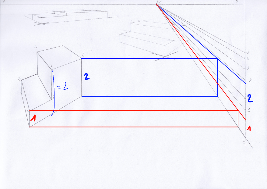 Voici mon essai sur l'exercice sur l'échelle des hauteurs avec ce petit escalier.