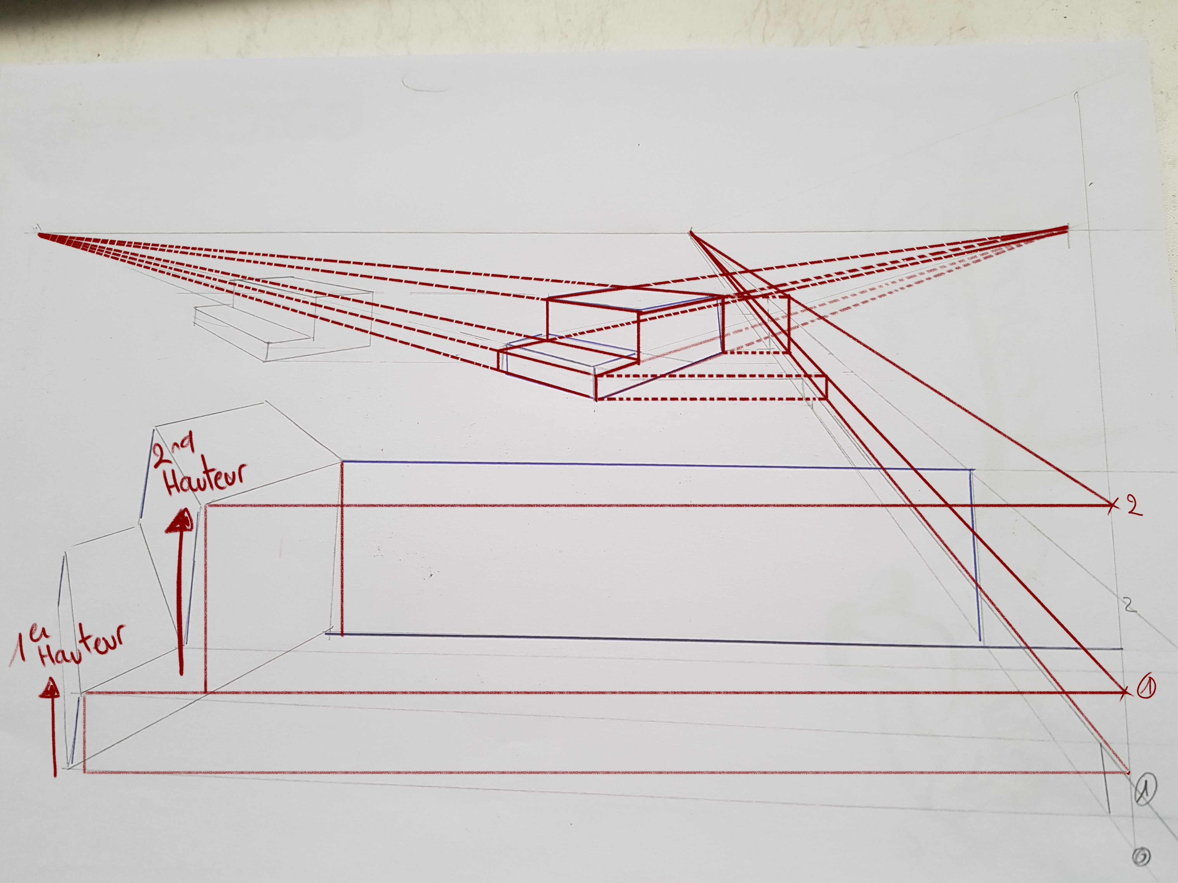 Bonsoir Tancrediizi, attention tu t'es trompé en reportant les deux hauteurs! Reporte bien les échelles de hauteur de manière claire avant de te pencher sur la perspective de tes objets! ;)