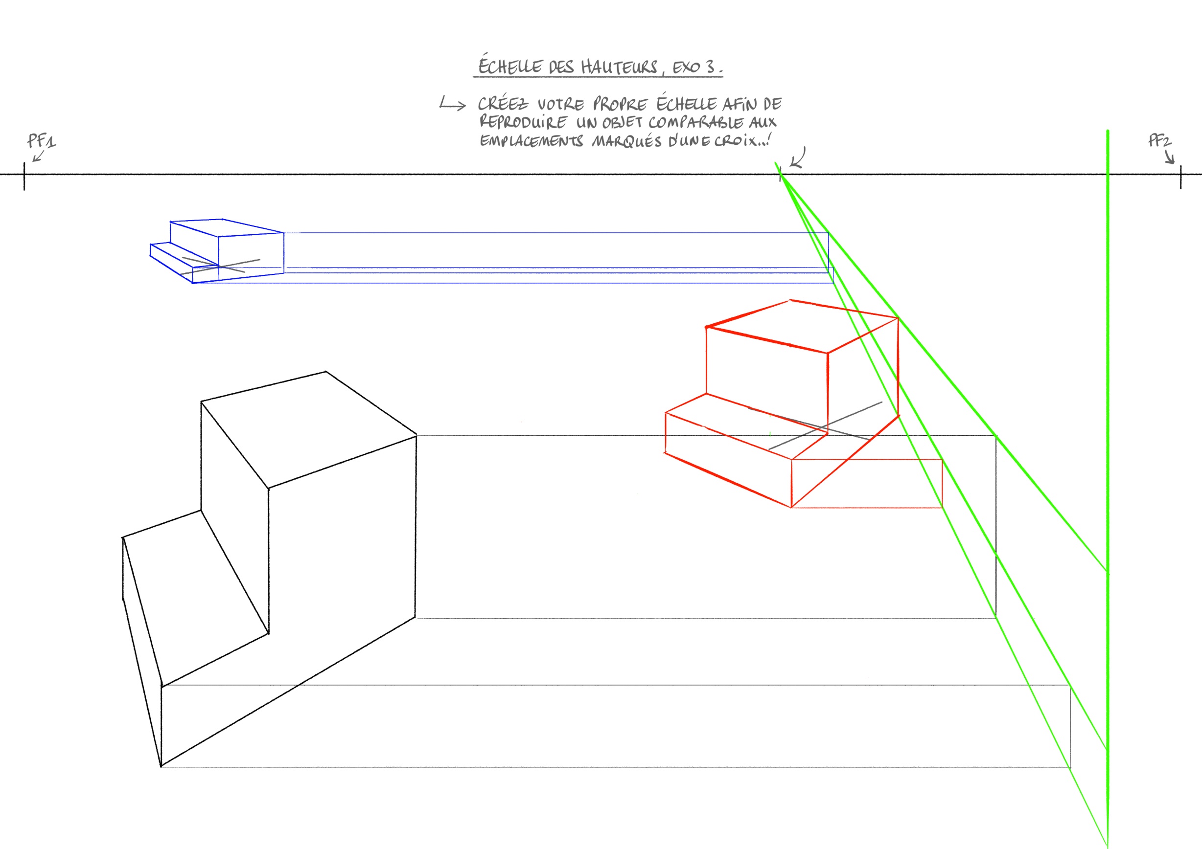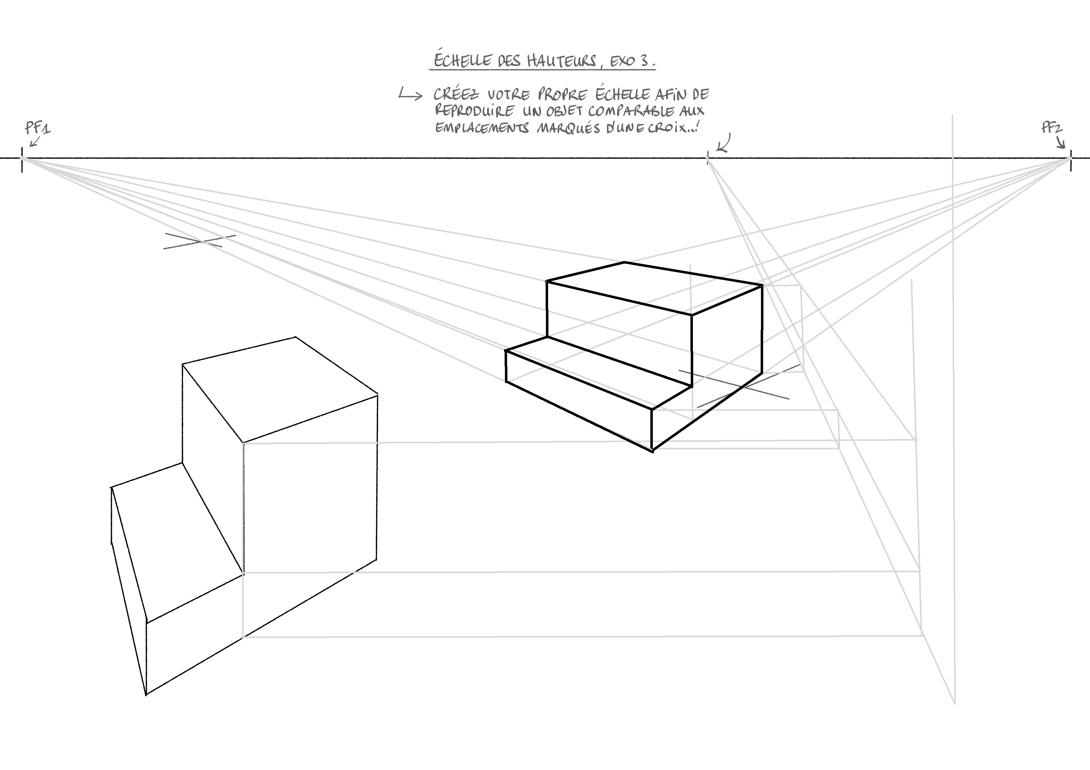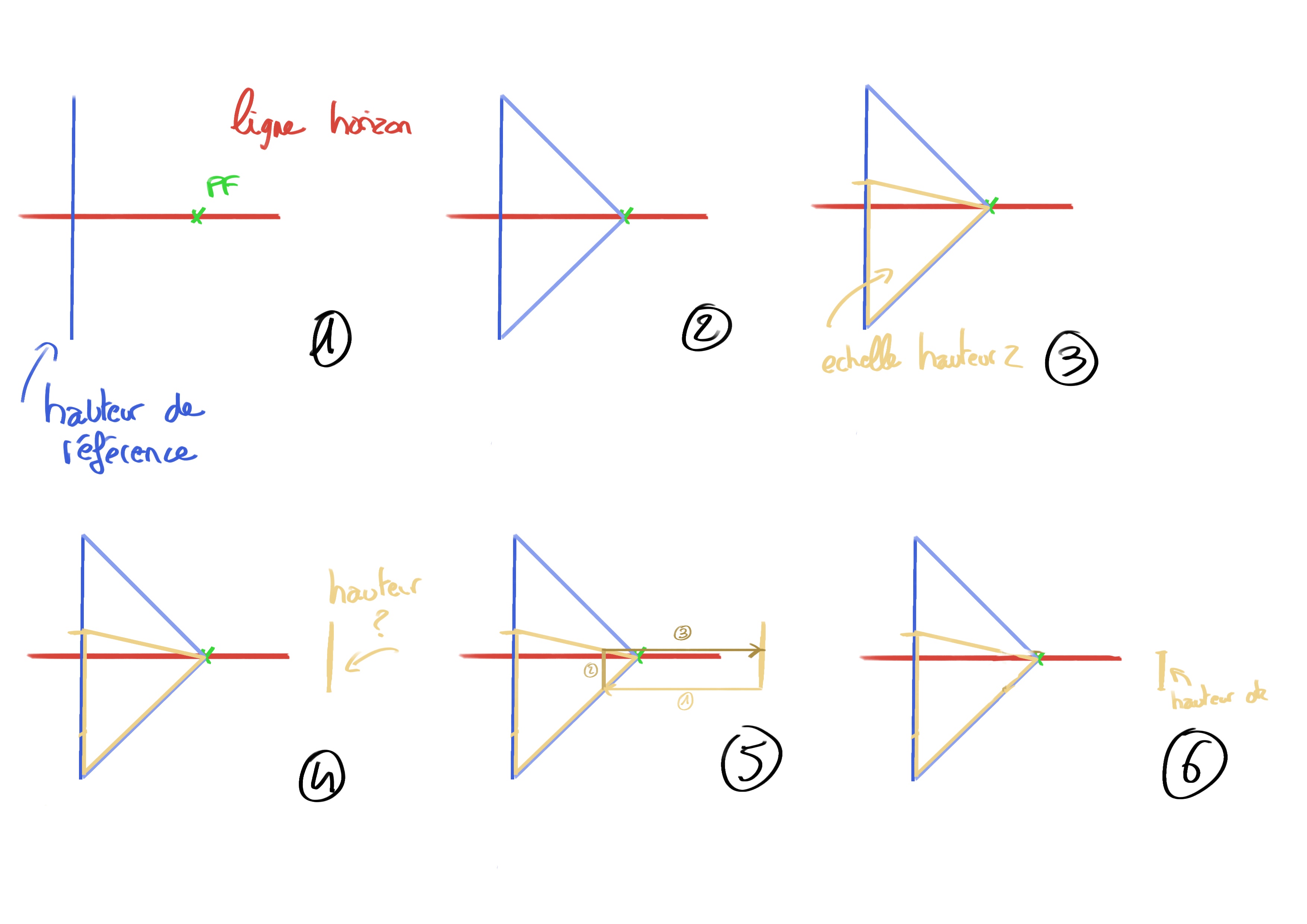 À quoi servent réellement les échelles de hauteur ? pour dessiner les objets, on peut pas juste se servir de la ligne d'horizon ?? Je ne comprends pas comment il dessine ça.