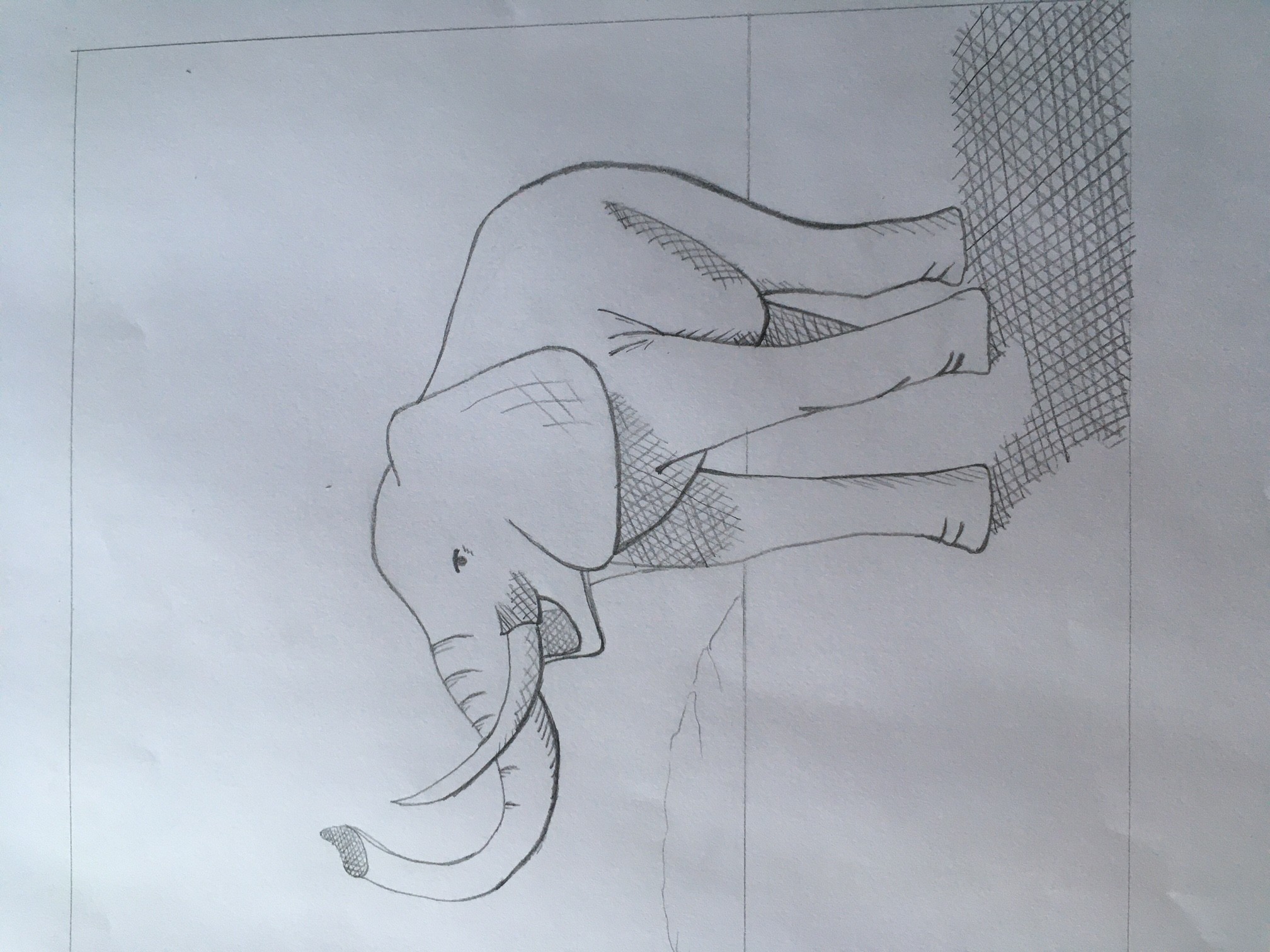 Bien sympa cet éléphant :) Tu as bien compris le principe des hachures, mais je pense que tu pourrais encore étoffer. Tu n'as fait qu'une seule valeur avec tes hachures. Tu pourrais essayer de faire des dégradés en faisant tes hachures plus ou moins légères, appuyées et serrés pour rentrer progressivement dans l'ombre ou la lumière, et mieux suivre les volumes. Attention aussi aux placements parfois peu cohérent de certaines hachures. Par exemple, j'enlèverais les hachures à la base de la défense, ou je continuerai les hachures que tu as faites sur le vente jusqu'en bas du ventre. Ta lumière semble venir de la gauche donc tu pourrais ajouter d'autres ombres sur la droite de tes éléments, sur la patte arrière par exemple.