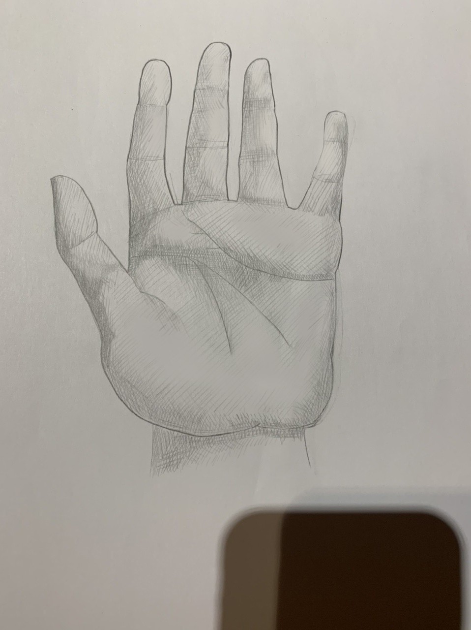 Pour la main je sais que la paume est grosse mais comme je me suis lancé sur les hachures je l’ai mise tout de même