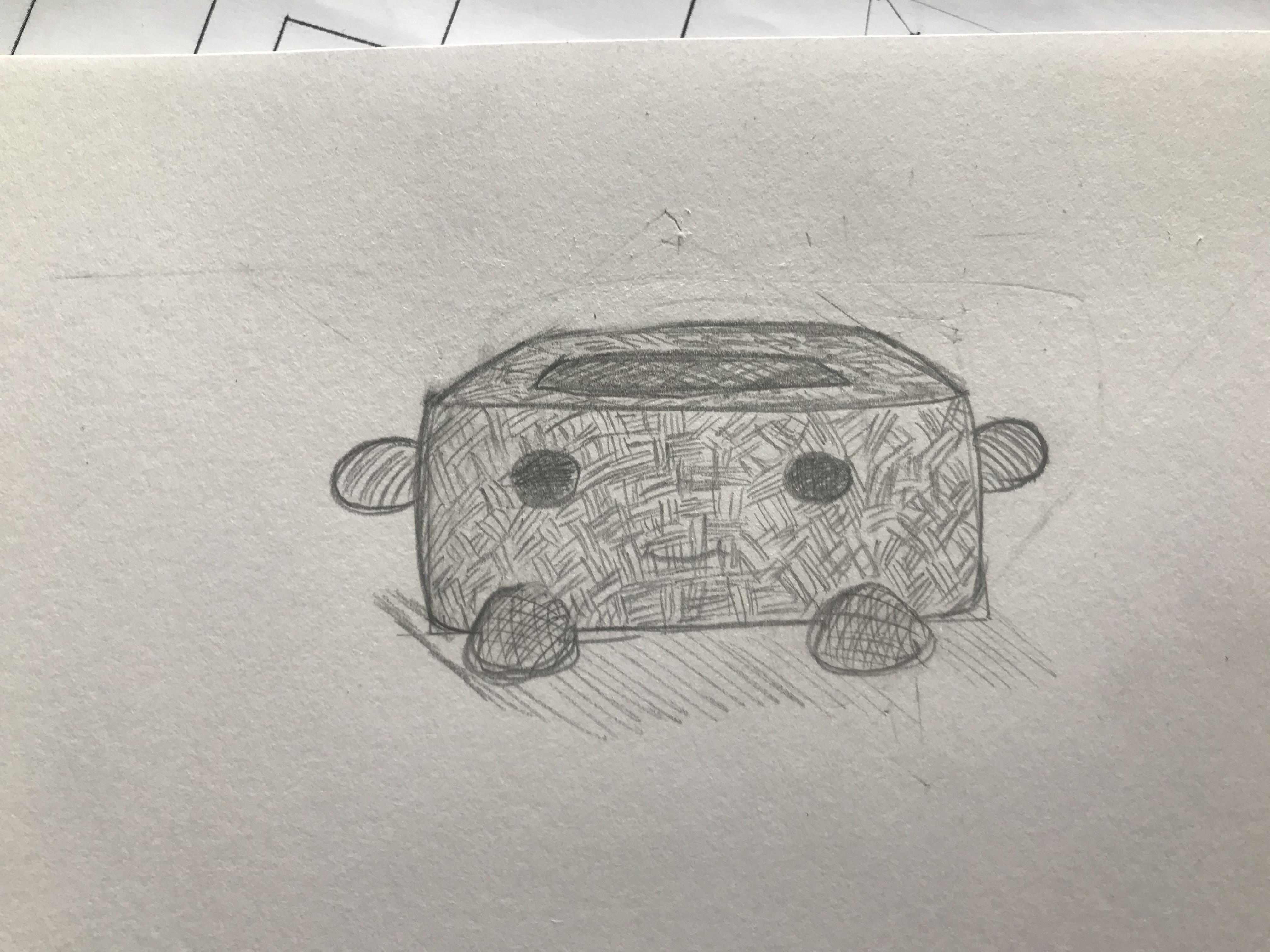 C'est sympa ! Le motif de hachures que tu as choisi donne l'impression que ton petit personnage est en osier ! Ce qui est appréciable est que sur le dessus tu sembles avoir adapté tes hachures à la perspective, c'est bien :) Ce que je noterais est un léger manque d'homogénéité, on se demande pourquoi les bras et pieds ont des types de hachures différents. Tu pourrais aussi tenter de faire des dégradés sur les parties arrondies pour mieux montrer les volumes. En tous cas c'est du bon travail :)