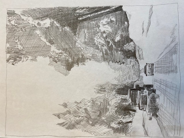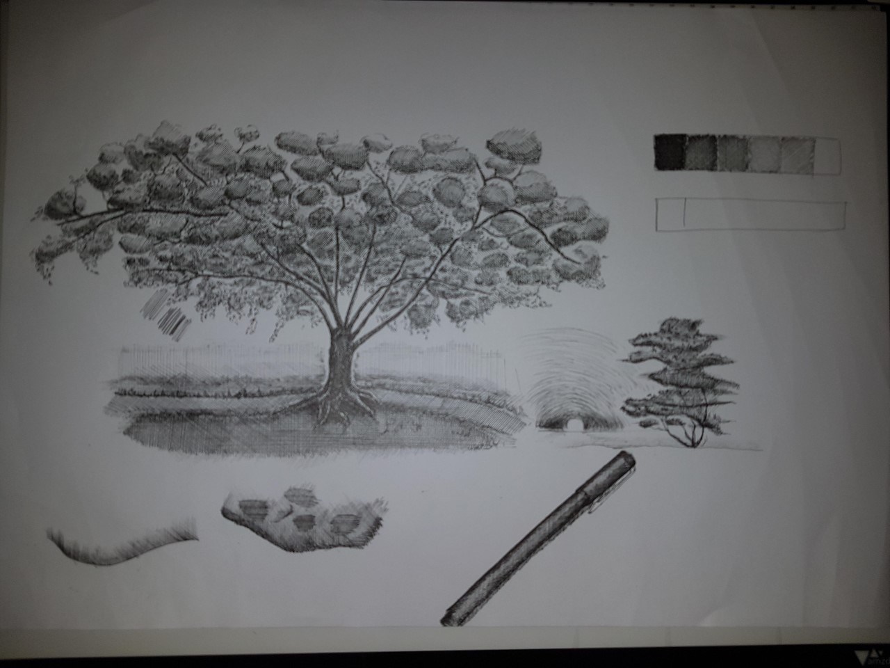 Histoire de travailler les hachures et le relief j ai fait cette ébauche