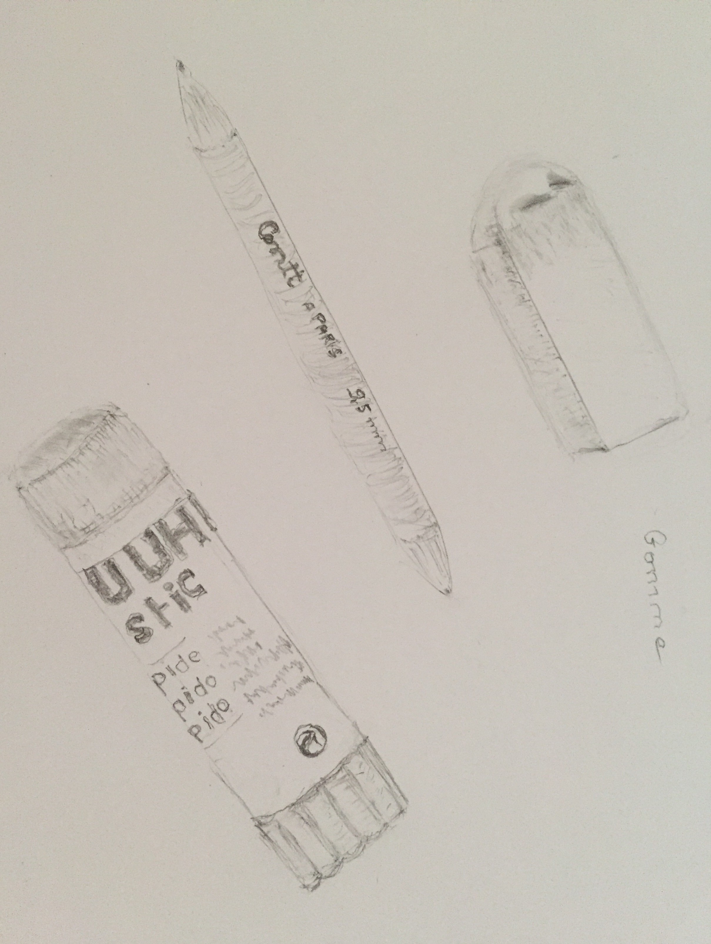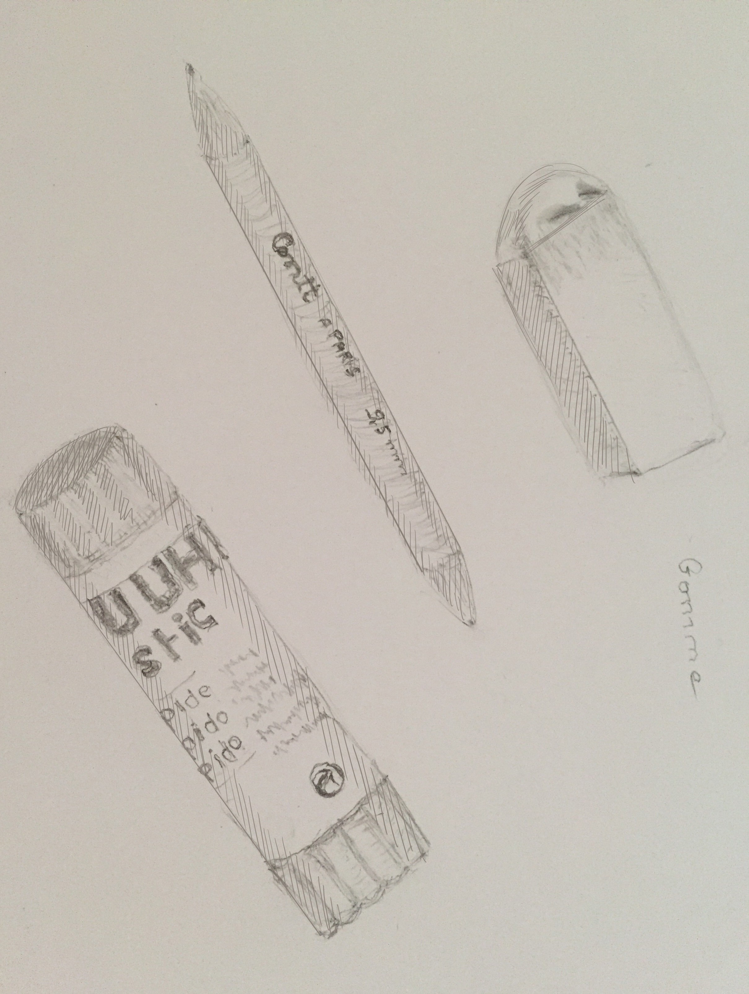 voici des éléments hachurés tels que gomme, tube de colle et un atténuateur