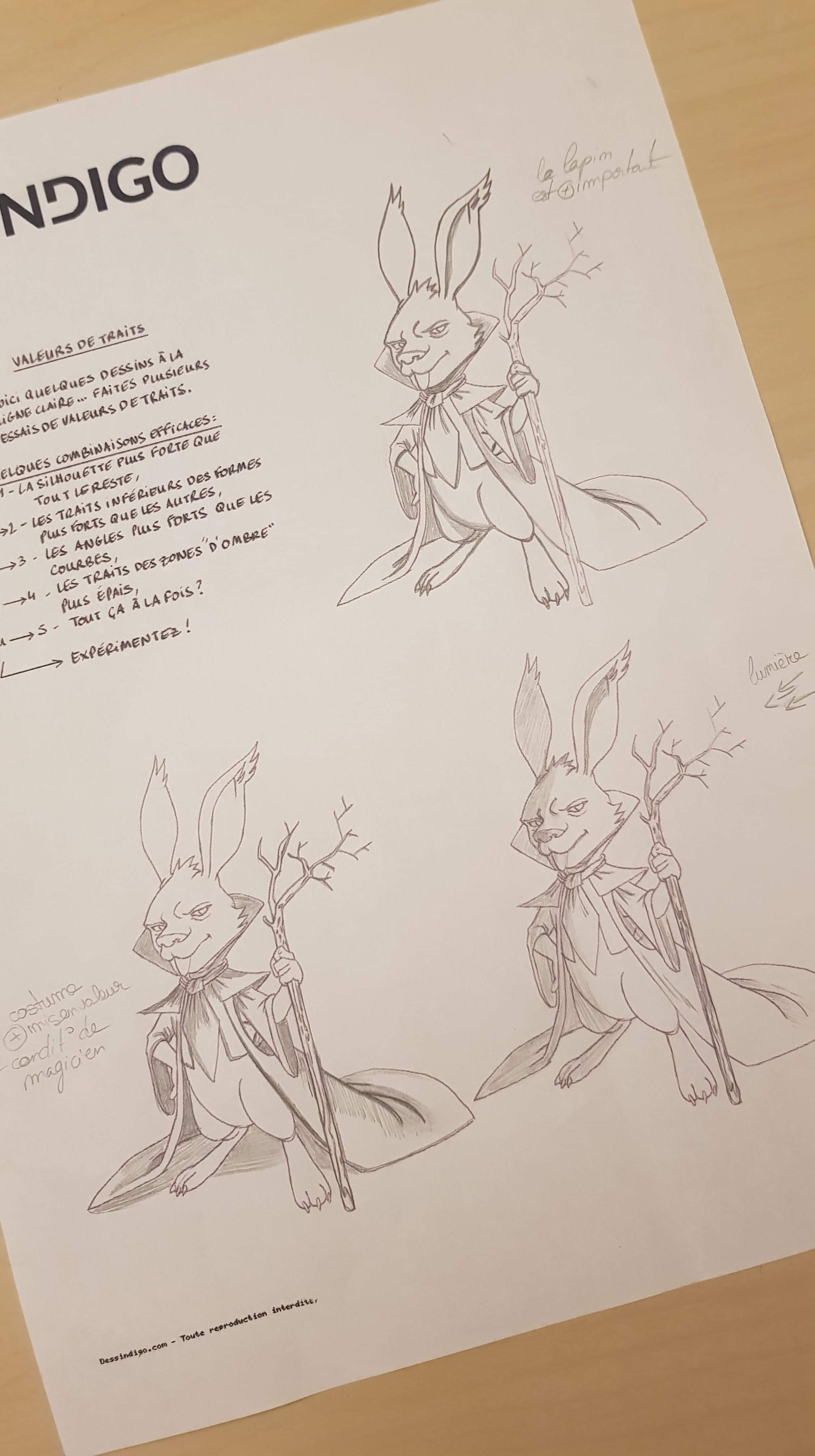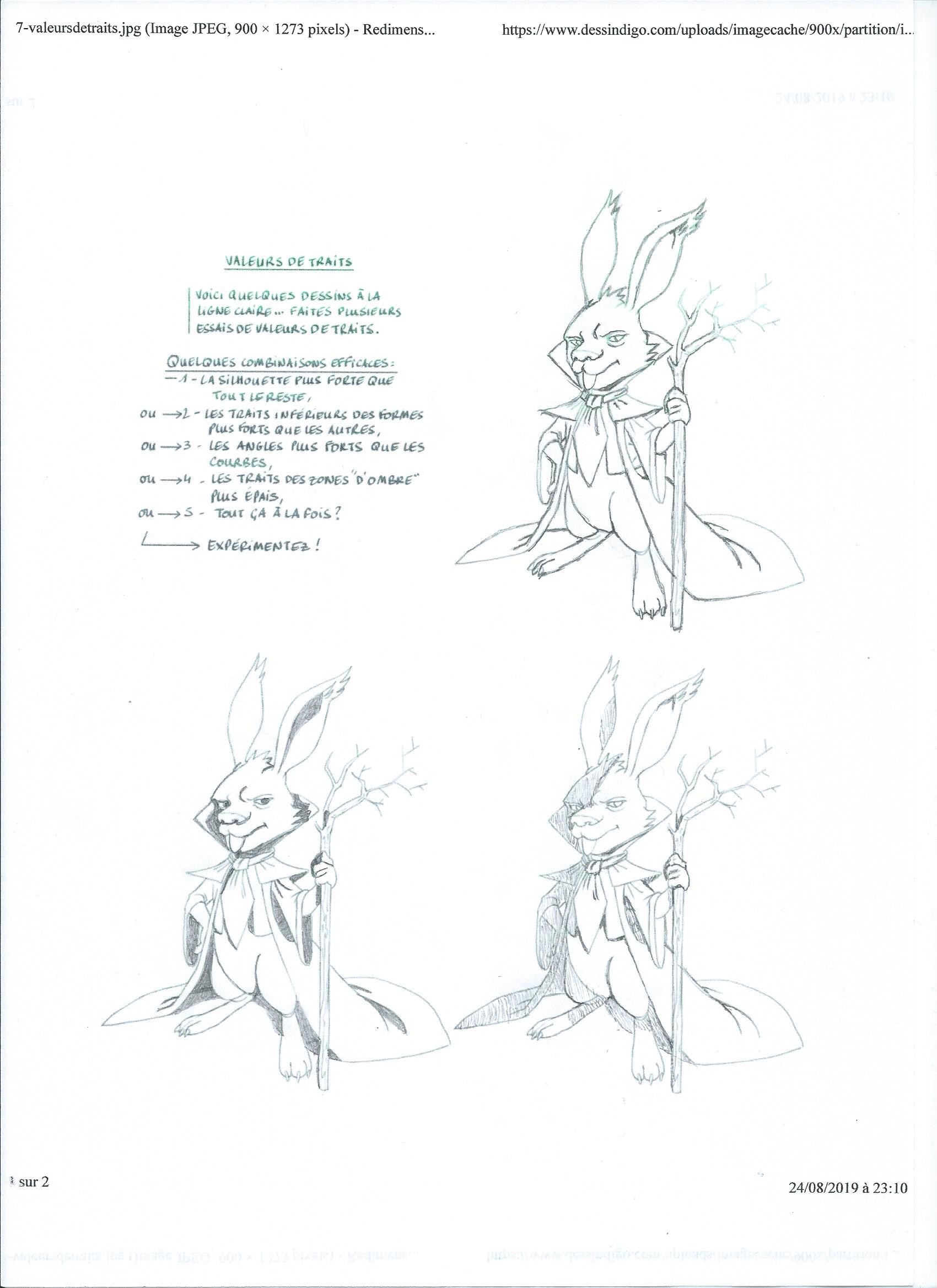 Bonjour à tous. Super exercice cool et détente par rapport à ce qu’on a était habituer lol. Je poste deux lapins avec des traits utilisé différemment en espérant avoir bien saisie l’esprit de l’exercice.