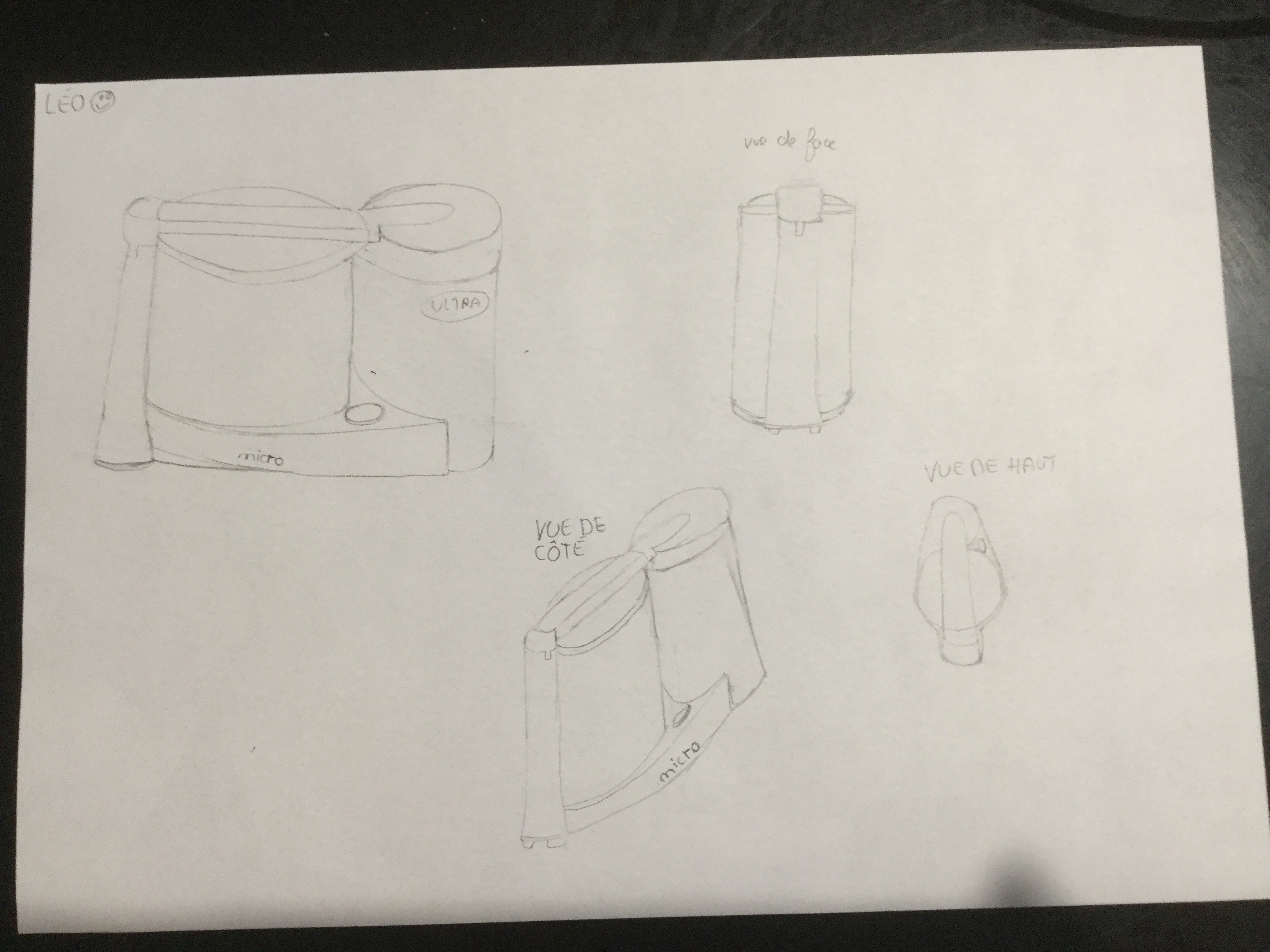 Voilà, j’ai refait un dessin en essayant de le mettre sous différents angles, pour la vue de côté, je trouve que j’ai fais un truc bizarre, dites moi ce que vous en pensez, mercii d’avance