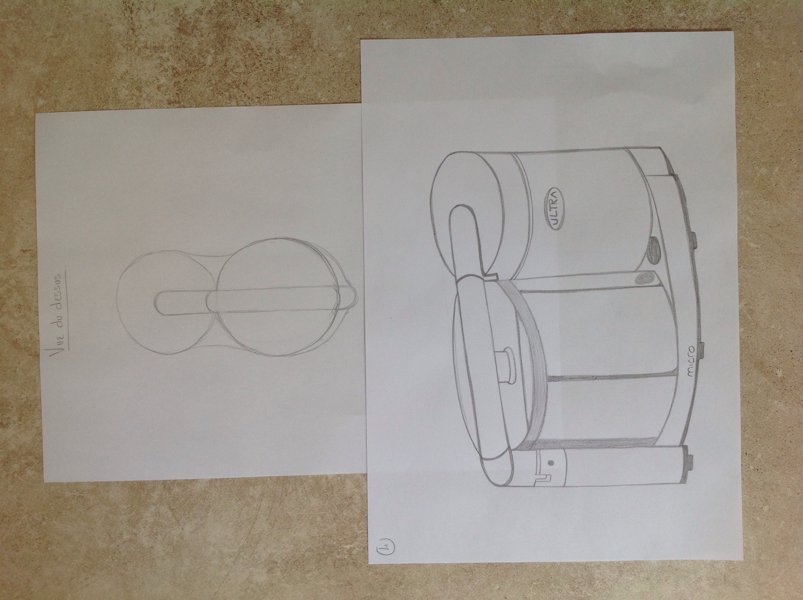 Voici le 1er exercice, pas facile, surtout que le robot ménager ne fait pas partie de me préférence en terme de dessins