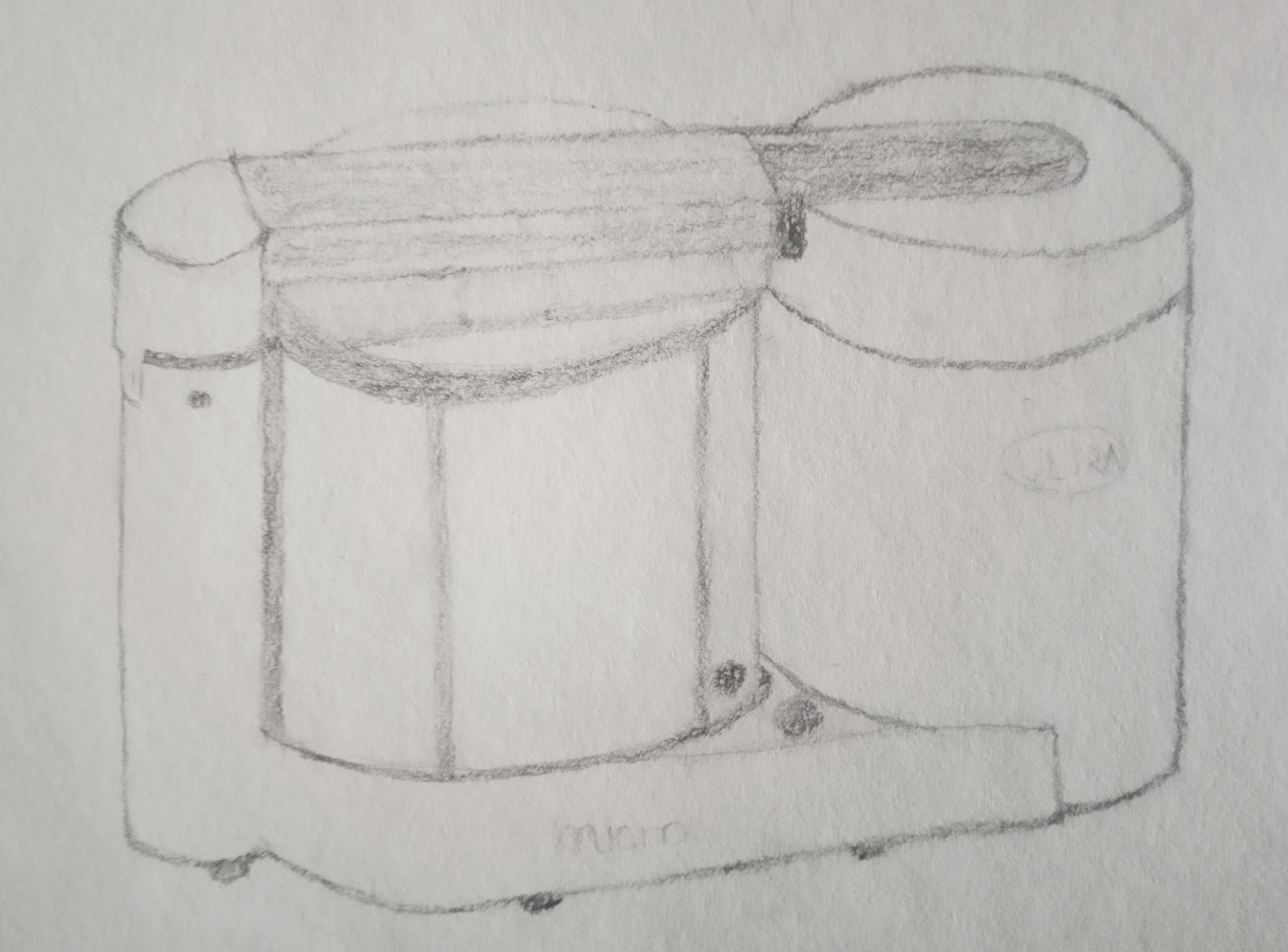 Globalement tu as bien compris :) Pour ta vue de dessus tu n'as pas besoin de ce deuxième cercle que tu as fait autour de ton cercle du bas, sinon c'est bien. Pour ta vue dite de profil, le premier cylindre est trop petit, il ne doit pas y avoir autant d'air tout autour. Tu as fait un petit bouton qui vole, il est sur le socle et doit être de profil aussi. Pour la vue arrière c'est bien, il manque la démarcation du "couvercle du cylindre et tu as fait la barre au dessus alors qu'elle rentre dans le cylindre, donc on ne devrait pas la voir. Vue de face même chose pour la barre, ce n'et pas surélevé, et ton élément tout devant devrait être mon large. Tout ça ce sont des histoire de dimensions mais niveau construction c'est compris :)