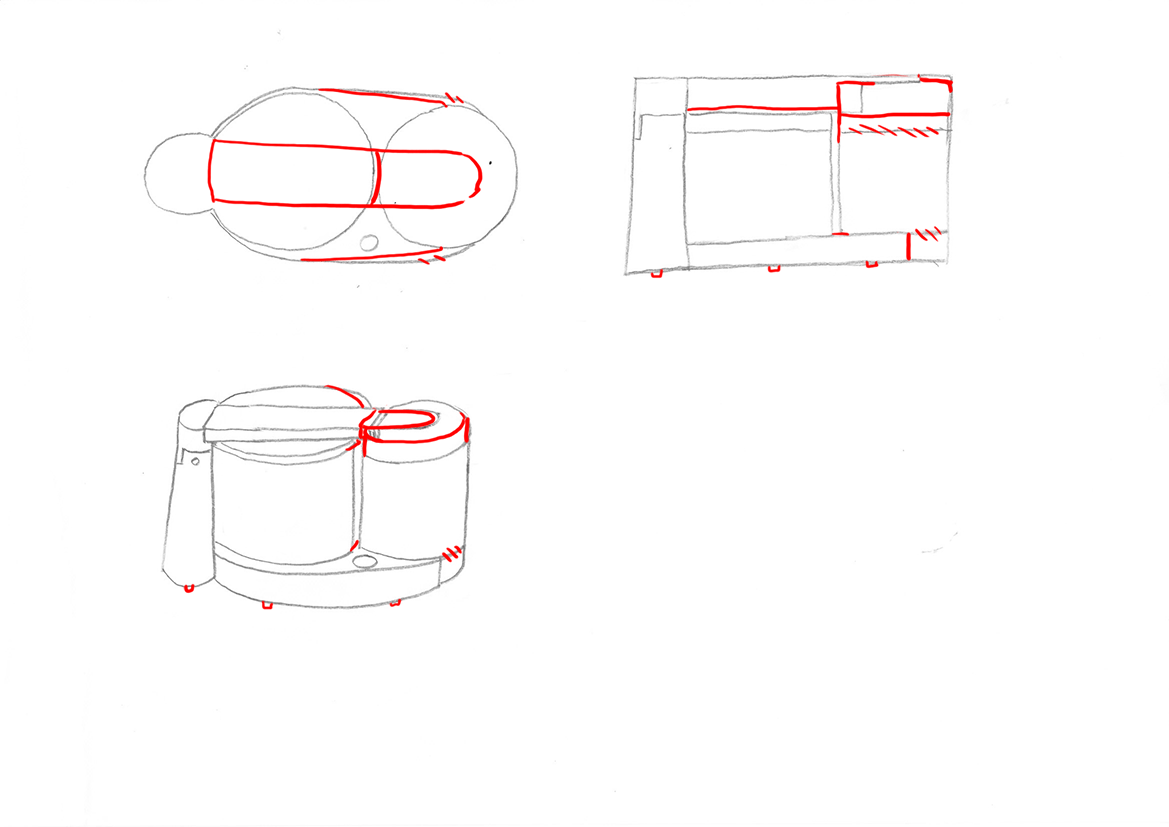 Voici les différentes vues de mon appareil ménager... C'est mon premier vrai dessin où je m'applique (autre mes cours d'art plastique composé essentiellement de bonhomme bâtons ahah), donc bon je ne suis pas sûr du résultat