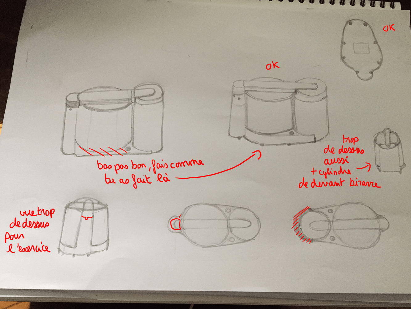 C'est du bon travail, je pense que tu as compris l'objet :) Pense juste à faire la suite de l'exercice en faisant différentes vues : de face, de profil, de dessus...
