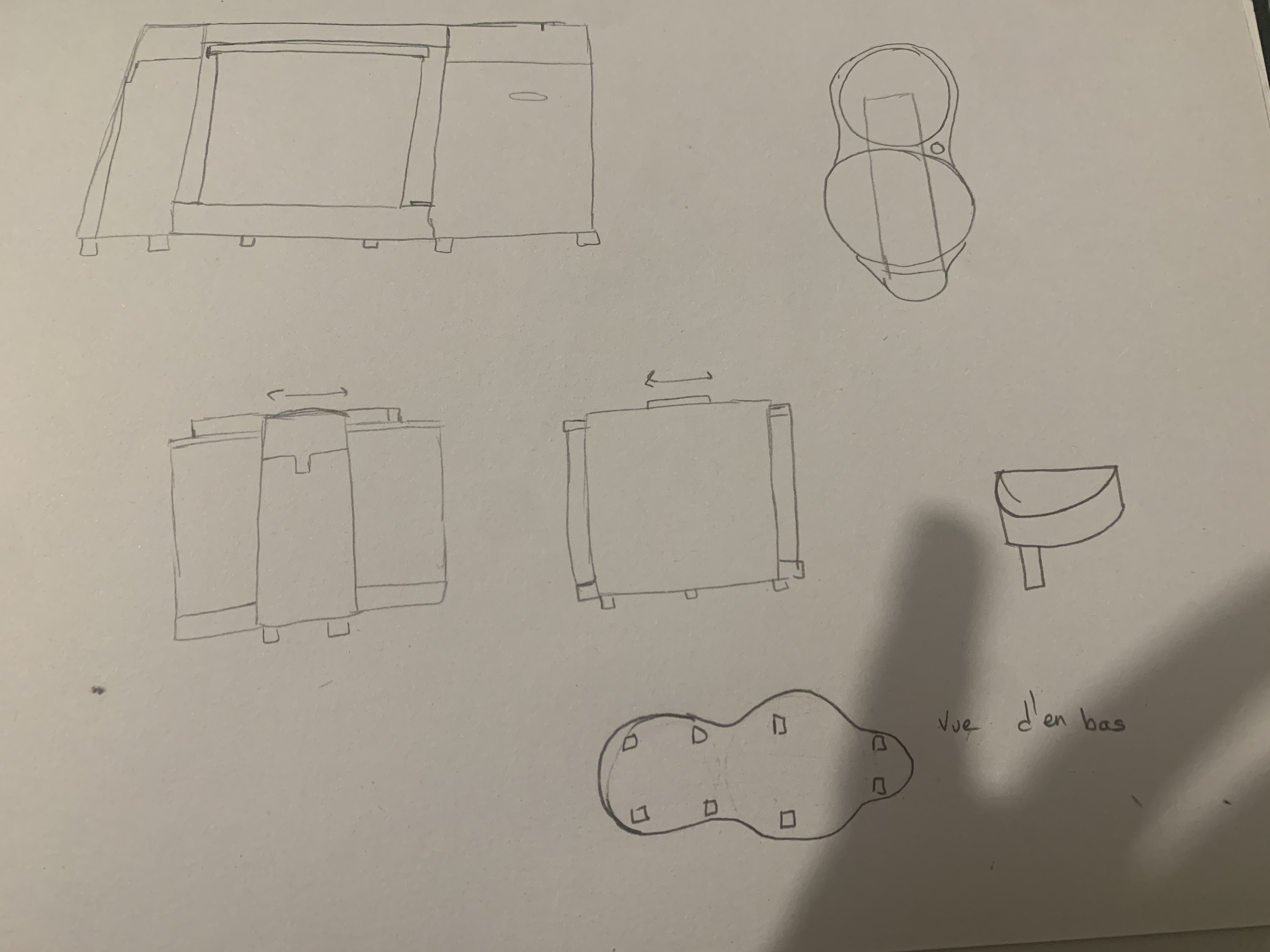 Bon on ne voit pas très bien sur ta photo, mais tes dessins ont l'air nickel ! Le seul truc que j'aurai à dire c'est que sur la vue en haut à droite, le robot a l'air en trapèze avec une base plus fine, alors qu'en réalité il est plus droit il me semble. Bien joué !