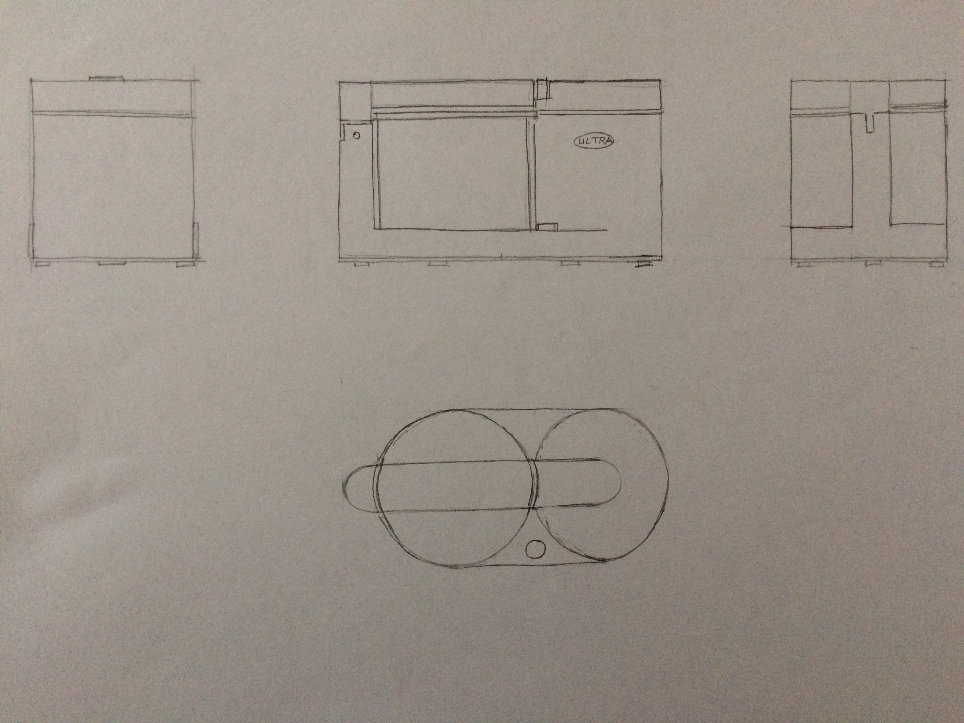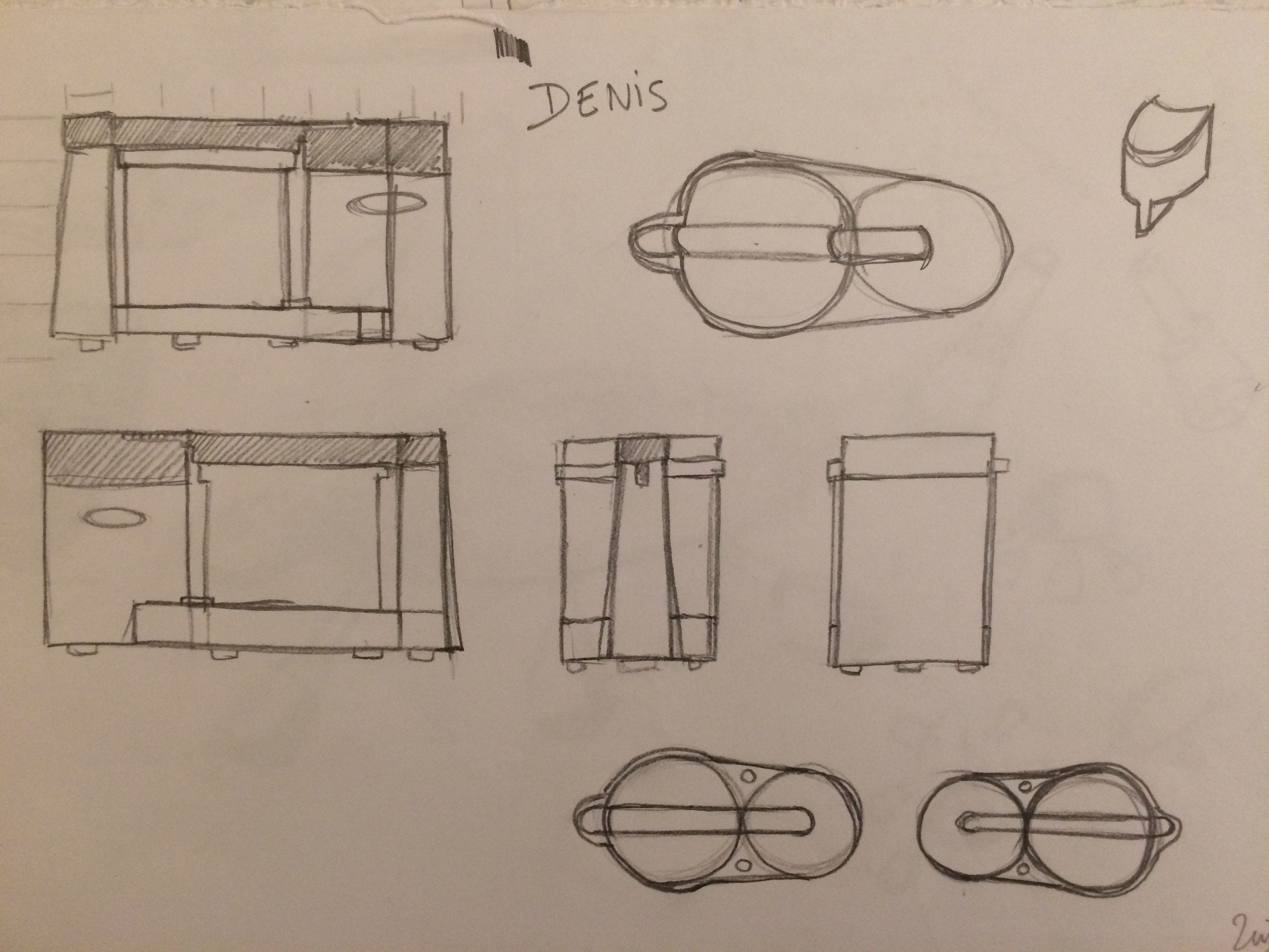 Ton dessin est bien, mais moi ce que je veux voir c'est des vues à plat schématiques pourvoir si tu as compris l'objet... Et si tu tiens vraiment à faire une vue en volume, ne fais pas la vue de la référence mais un autre angle de vue, et c'est là qu'on verra si l'exercice est maîtrisé :)