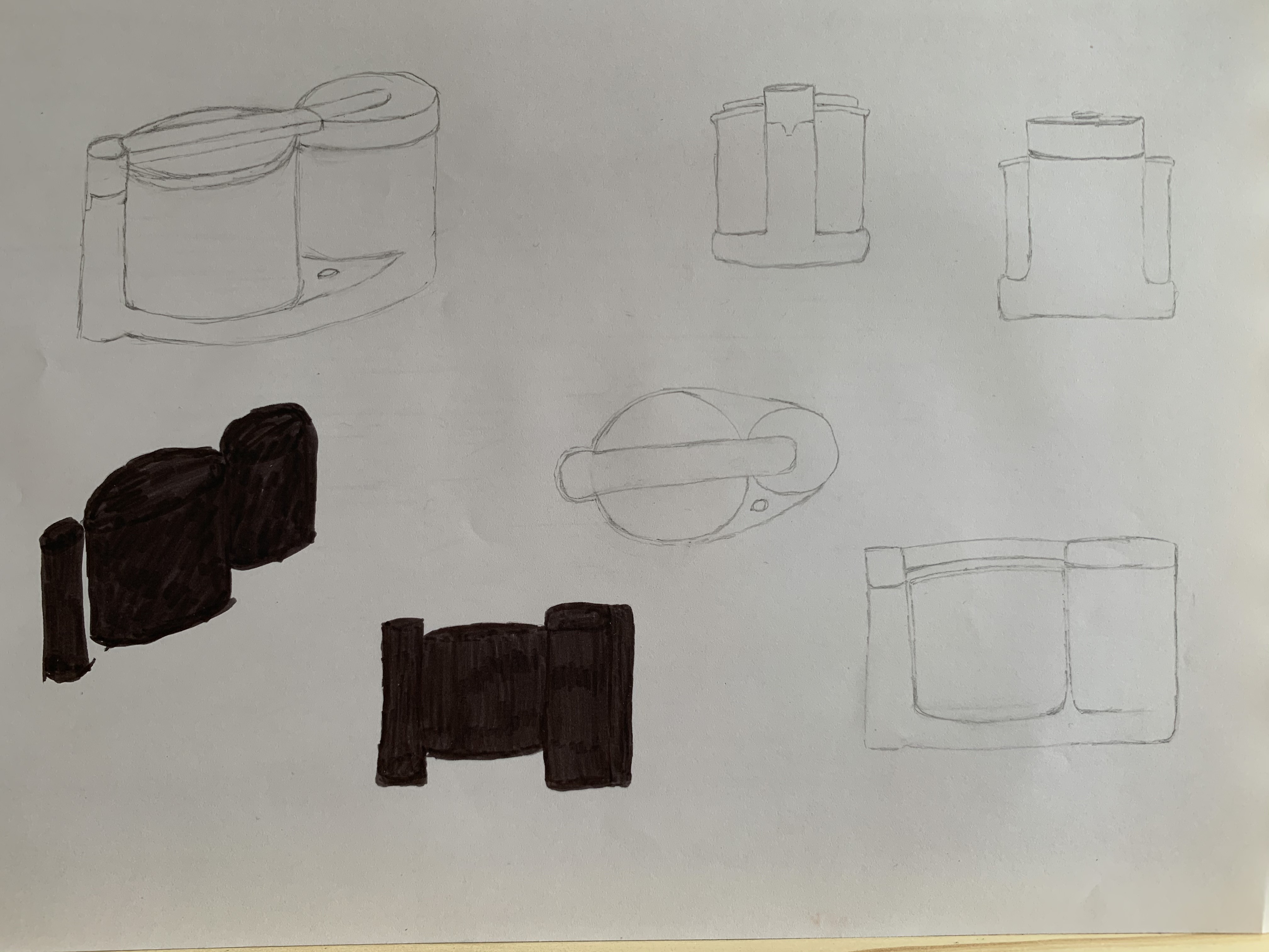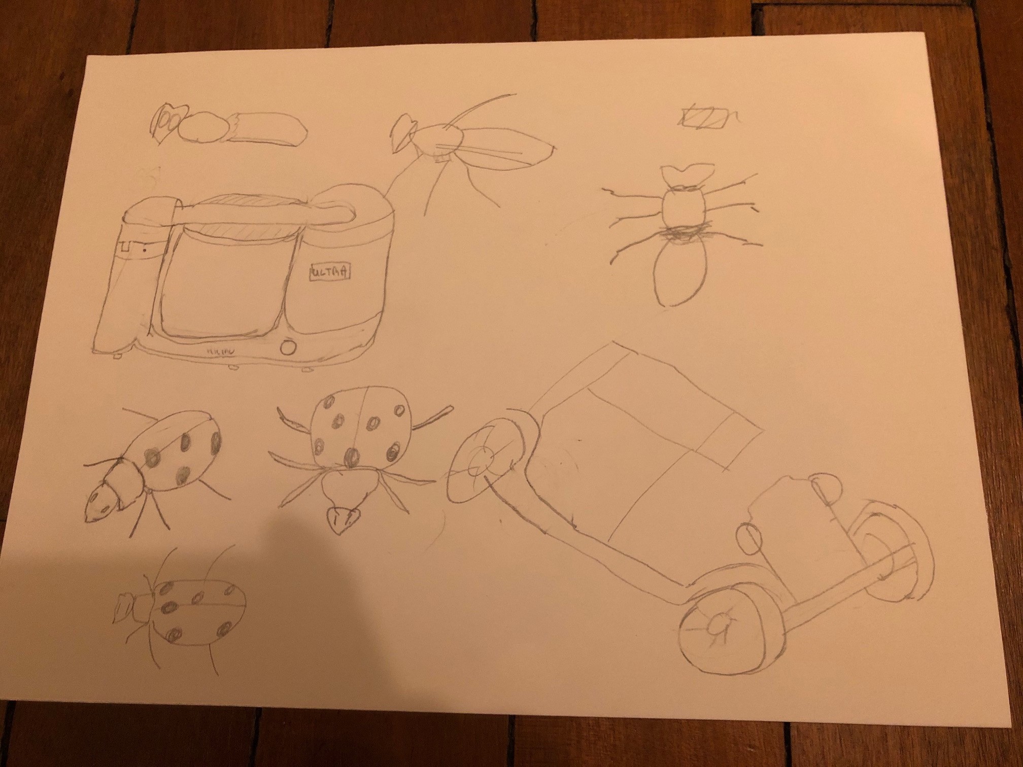 Tu ne t'es peut-être pas assez pliée à l'exercice suggéré par Grégoire, c'est à dire de dessiner chaque objet sous plusieurs angles de manière schématique et "à plat" dans le but de comprendre la structure. Là je vois un robot ménager en perspective basé sur la référence, et pareil pour la voiture. Et la coccinelle, c'est plus ou moins 3 vues de dessus :/ Donc déjà je te suggère d'essayer de recommencer, en essayant moins de simplement "copier la référence" mais vraiment de comprendre comment sont placés les éléments, les rapports de taille entre eux etc. Il faut vraiment penser schéma, et pas "joli dessin".