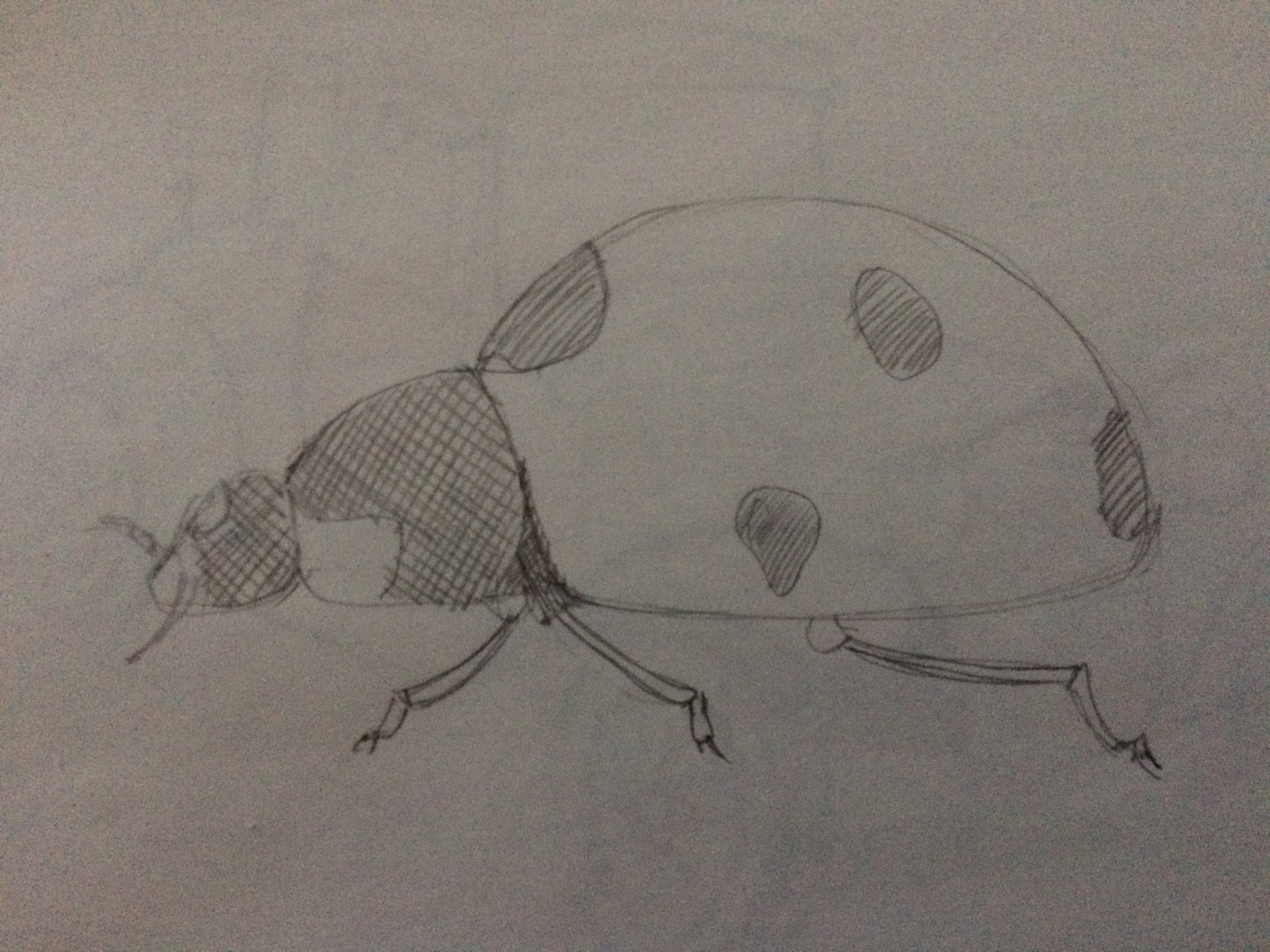 Ta coccinelle est bien. Tu as très bien géré les pattes et les proportions générales. La seule chose que j'aurais à dire c'est que, que ce soit ta vue de profil ou de dessus, tu as un peu trop marqué la limite entre le thorax et les élytres, normalement c'est presque dans la continuité même s'il y a une petite démarcation. Sur ta vue de dessus, la tête semble aussi trop en avant, ce qui casse la forme globale de "demi sphère" de la coccinelle.