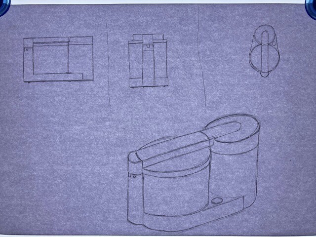 ça me semble bien compris :) Attention juste aux vues de dessus et dessous. Pour la vue de dessus le petit cylindre est un peu trop petit. Pour la vue de dessous, c'est trop anguleux sur la gauche. On est sur le même objet, donc la silhouette extérieure du dessous devrait être la même que pour la vue de dessus. Bon travail en tous cas !