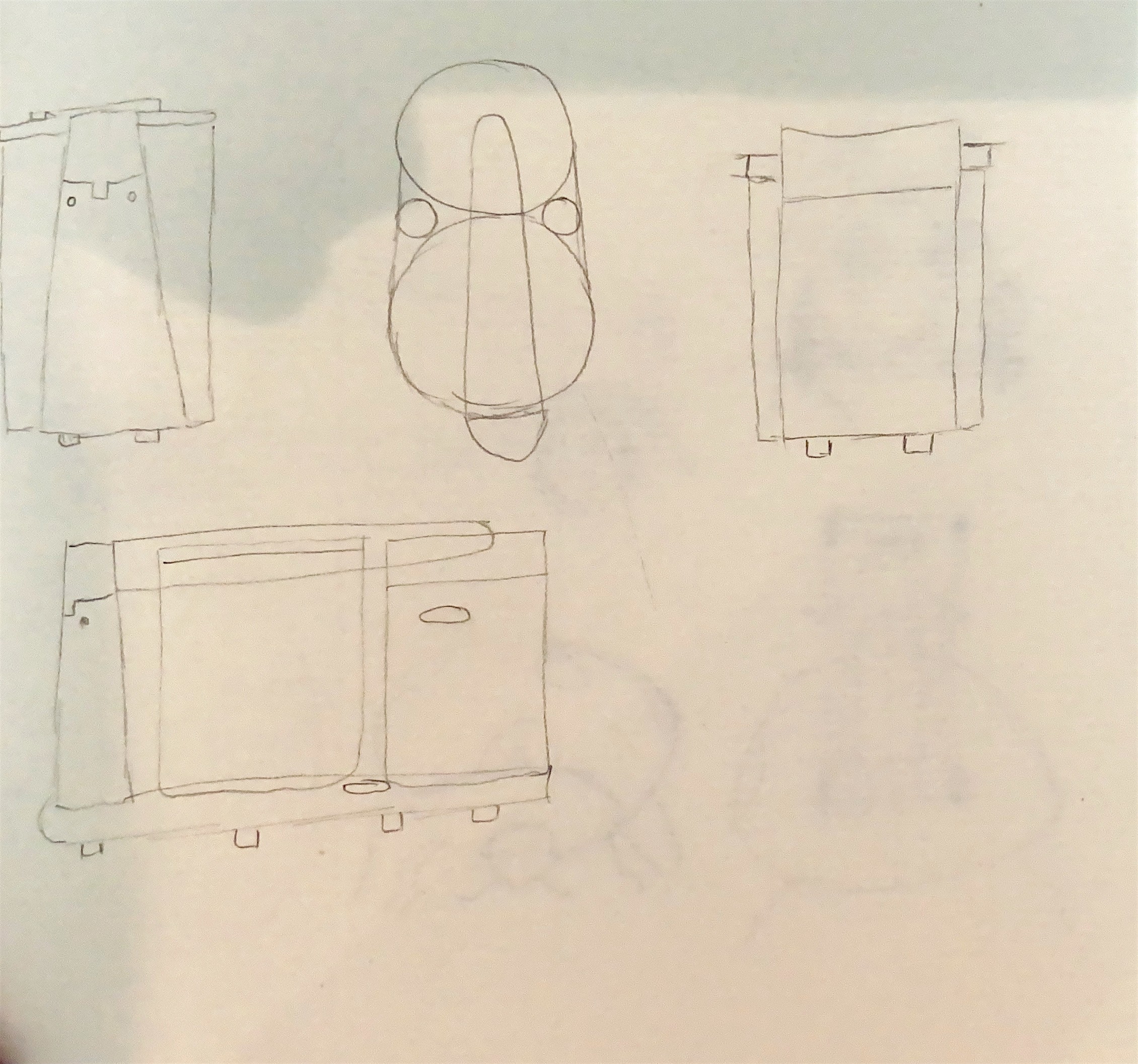 J’ai commencé par faire un croquis du robot (à droite) et j’ai vite compris comme il est important de bien étudier la machine avant de se lancer.