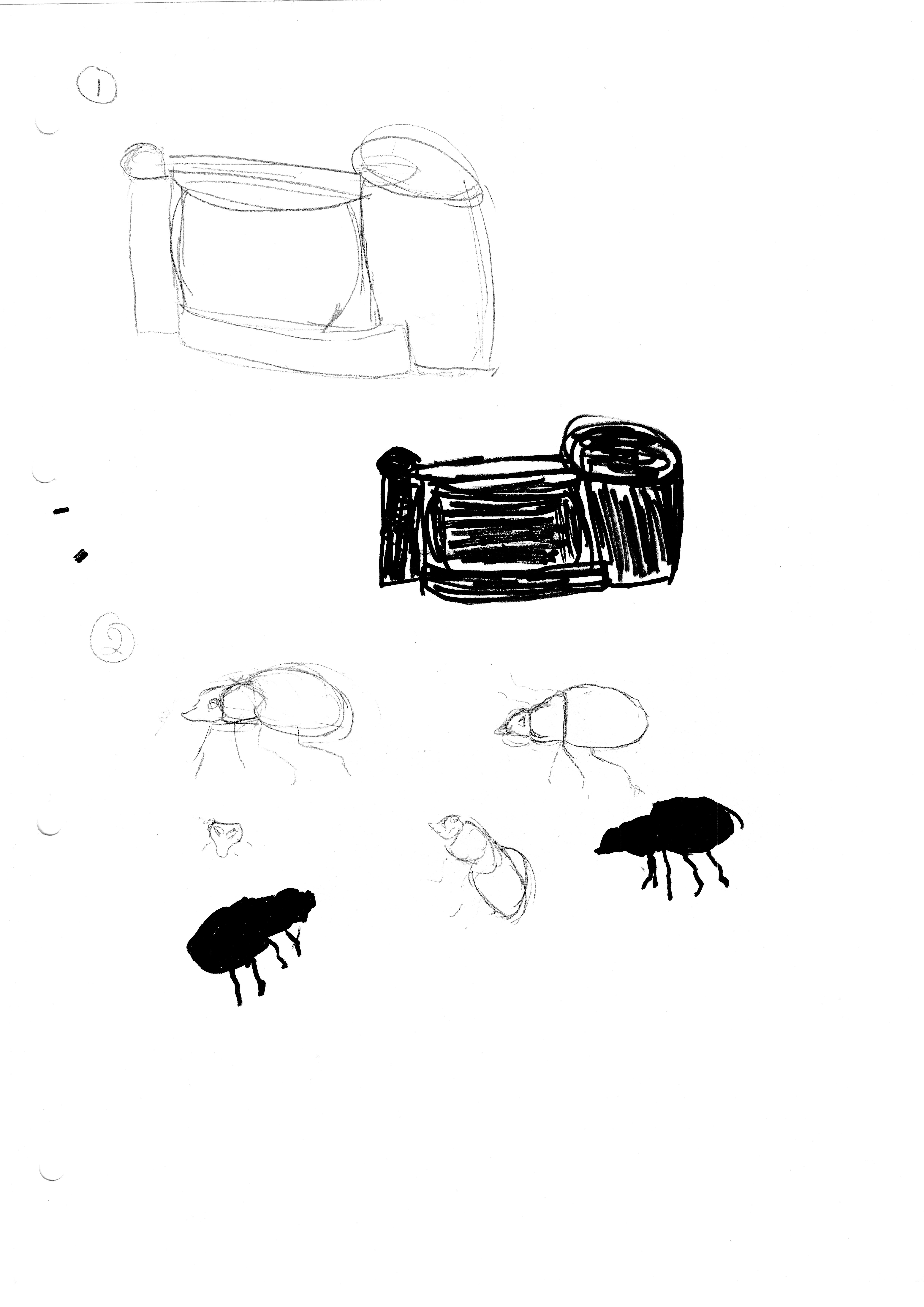 Pour le robot c'est pas mal, la structure semble comprise :) Si c'est une copie de la vue en perspective il n'est pas tout à fait assez tourné, mais si ça devait être une vue "de face", dans ce cas le robot paraît un peu trop de dessus vu qu'on voit le dessus des éléments. Maintenant il faudrait tenter de s'imaginer le robot sous d'autres points de vue, de dessus par exemple ! Bon travail en tous cas :)
