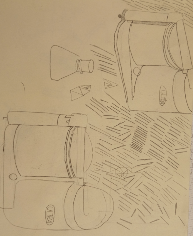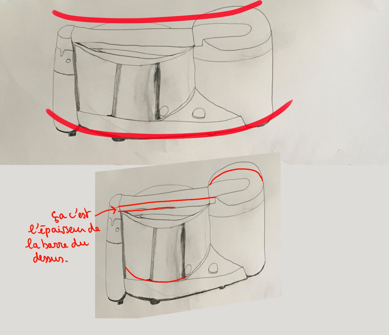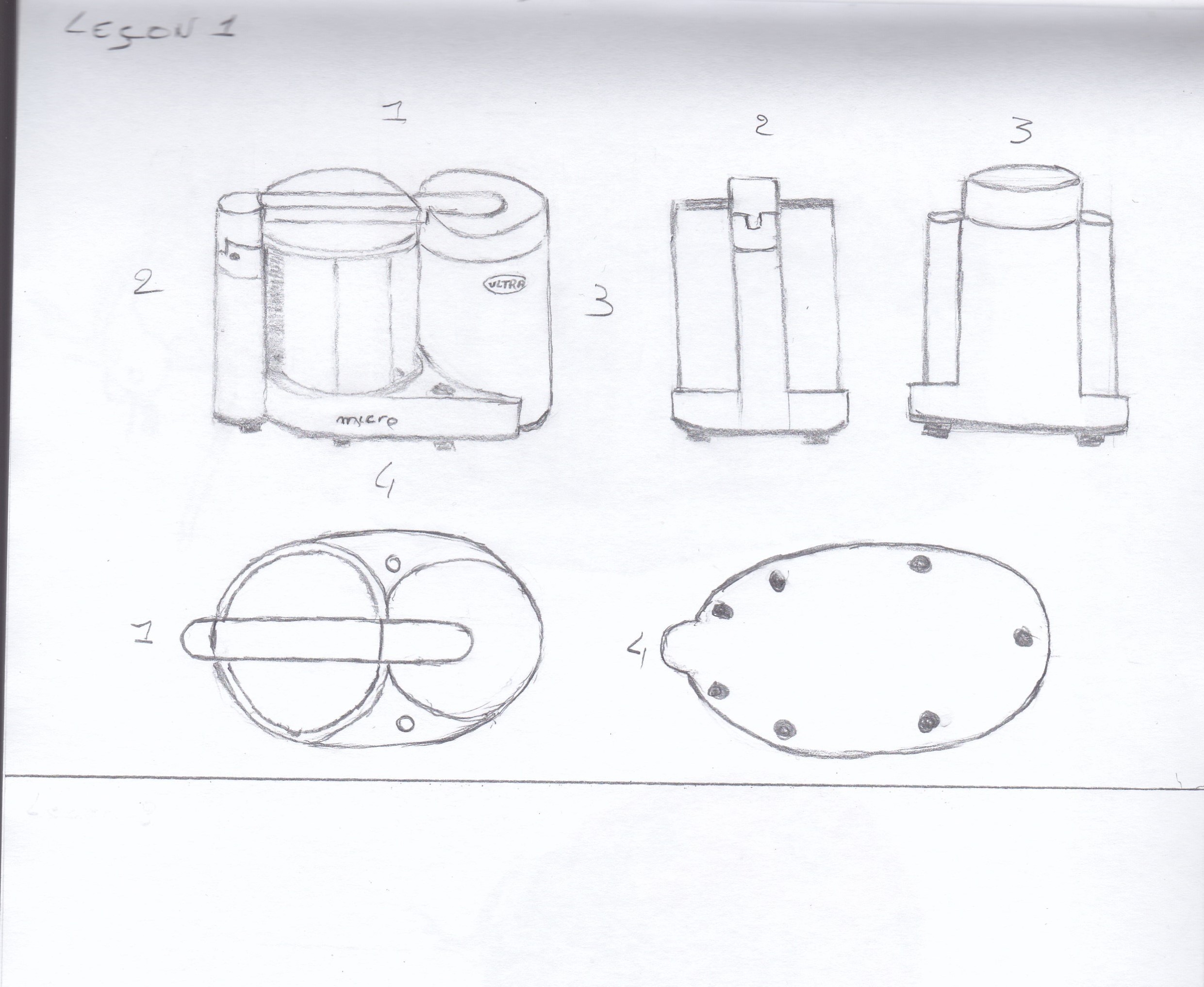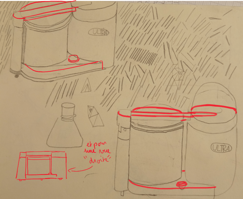 Je ne pensais pas le faire aujoud'hui mais la motivation a porté ses fruits 😁. Voici mon exo n°1 de ce cours. Je n'ai pas eu le courage de faire la vue 3/4 de l'appareil qui donne pourtant beaucoup d'informations, mais je me rattraperai sur les prochains dessins 😉.