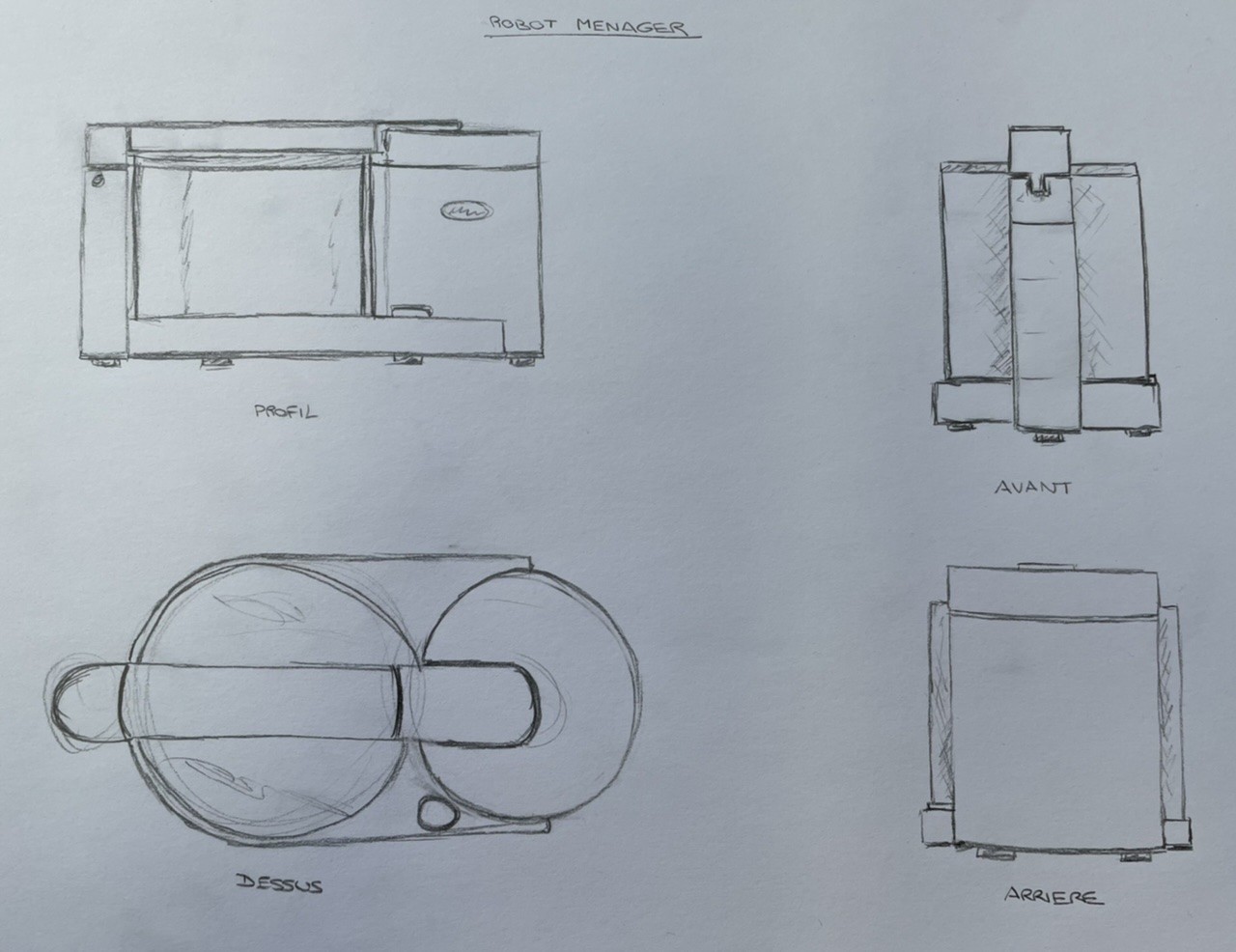 C'est plutôt bien mais attention le robot est un peu en arc de cercle là (je le montre visuellement), et un peu trop long, j'ai modifié en dessous. Mais c'est à peu près compris ! Maintenant im faudrait tenter de s'imaginer le robot sous d'autres points de vue : de dessus, de côté...