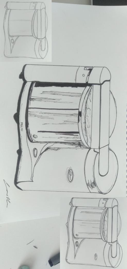 Les volumes sont plutôt bien pourtant :) Pour le premier robot, le premier cylindre est un peu gros, mais c'est bien compris. Pour le deuxième c'est pas mal aussi mais pour un travail de vues de référence il vaut mieux que les vues soient bien "en face", c'est à dire comme si on avait le regard au milieu de l'objet, là cette vue est encore trop vue de dessus. Je montre avec l'exemple d'un verre ce que ça peut donner quand l'objet est bien en face et plus de dessus ^^ Tu pourras essayer d'autres vues par la suite ;)