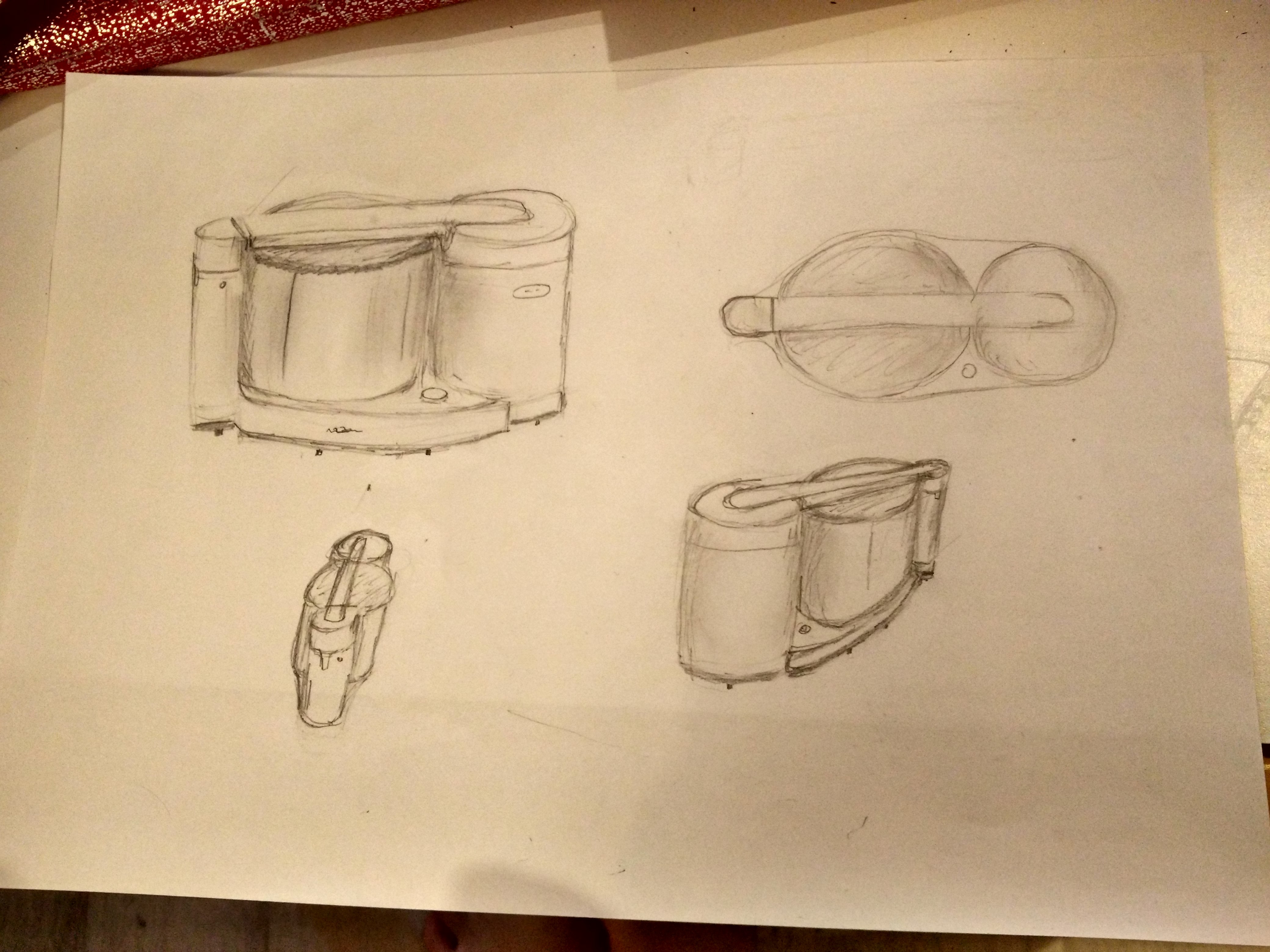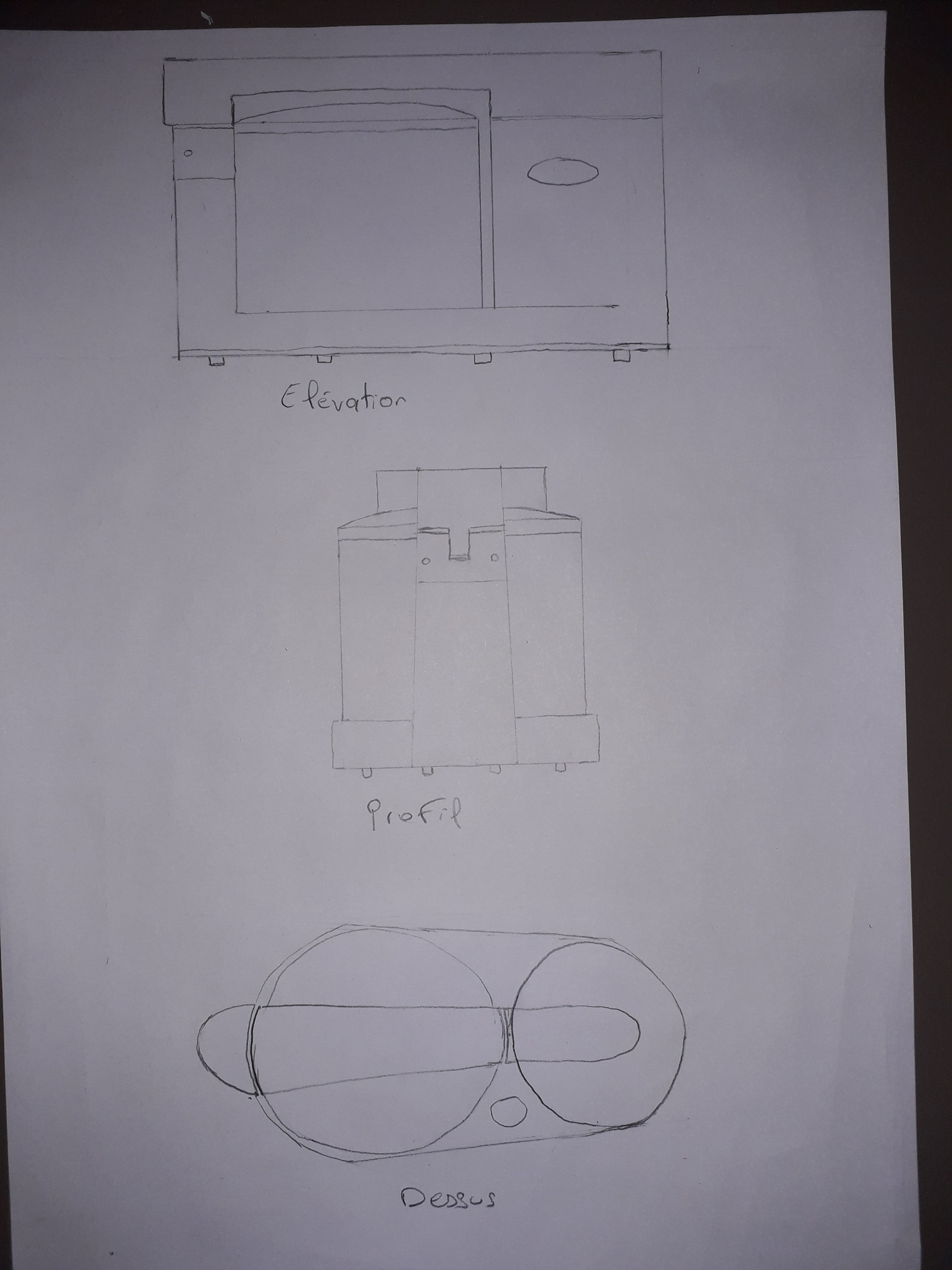 C'est du bon travail soigné :) très bien pour les 2 vues au dessus. En dessous tu as tenté des vues en perspective avec point de fuite, c'est encore un peu tôt pour faire ça et ce n'est pas ce qui est demandé dans l'exercice (même si c'est un bon exercice ce que tu as fait ^^). Comme pour la vue de dessus, pour se visualiser plus précisément les proportions on a besoin de vues "bien en face", c'est à dire avec le regard bien au milieu de l'objet, où on ne voit pas la perspective. En tous cas c'est bien :)