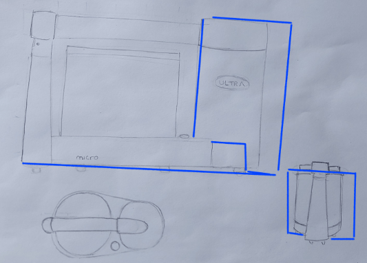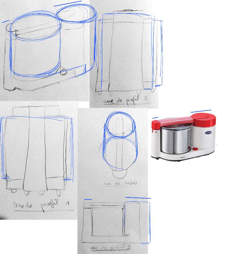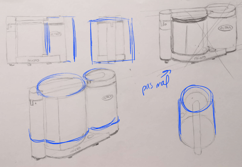 Sur ta vue de profil, la forme générale est trop carrée, et sur la vue de derrière elle ne l'est pas assez :p Quant à la vue de dessus, le deuxième cylindre est trop petit (la différence de taille n'est pas si marquée)