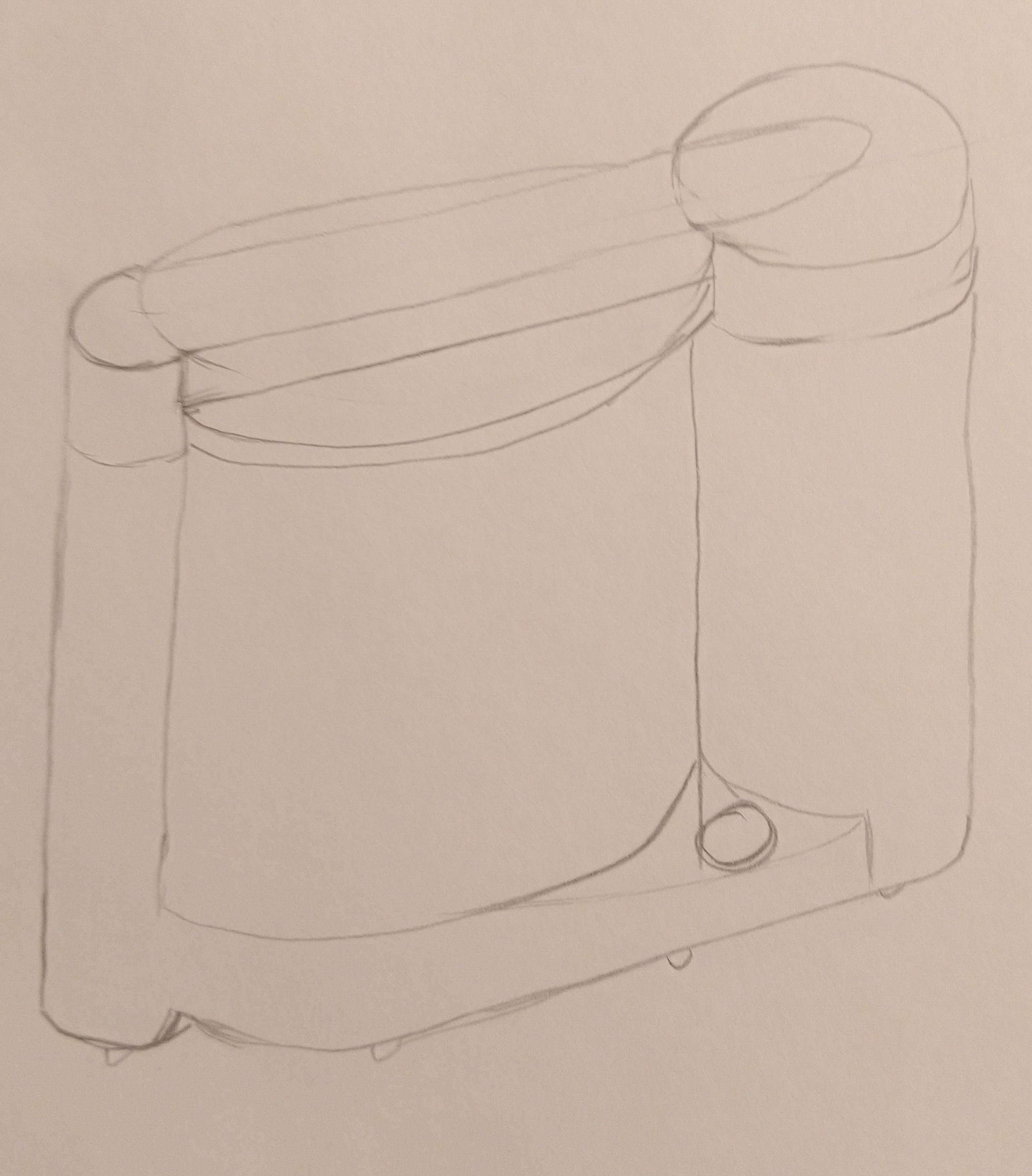 C'est bien mais il y a pas mal de soucis de proportions, notamment le volume du plus petit cylindre qui est un peu aux fraises... Tu le fais à peine plus large que la partie tubulaire à l'autre extrémité qui est largement plus petite :o