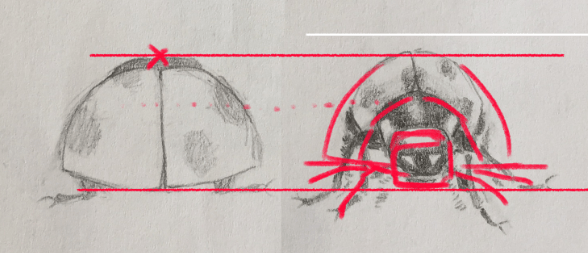 Le résultat de mon premier exercice. Je l'ai trouvé plus difficile que la coccinelle car je pense il y beaucoup d'éléments différents à mettre ensemble. Ca m'a beaucoup challengé sur le besoin d'être simple et macro pour un croquis. Super cool!