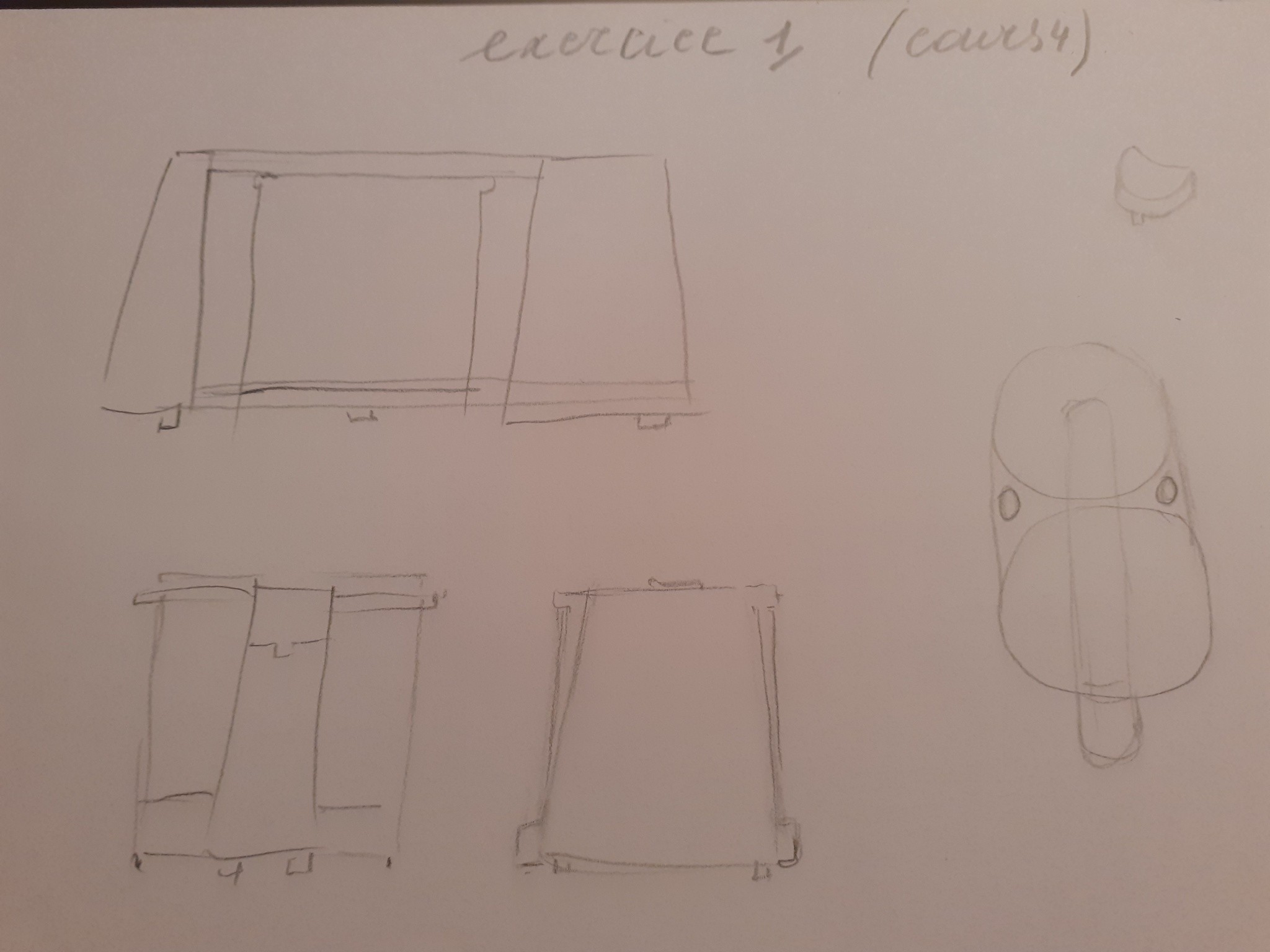 Désolée pour l'attente. L'exercice est bien compris, bravo ! Attention juste à ne pas oublier le bouton sur le socle, et le 3ème robot en bas est trop rétrécit sur le bas, le gros cylindre est normalement droit. A part ça c'est tout bon :)
