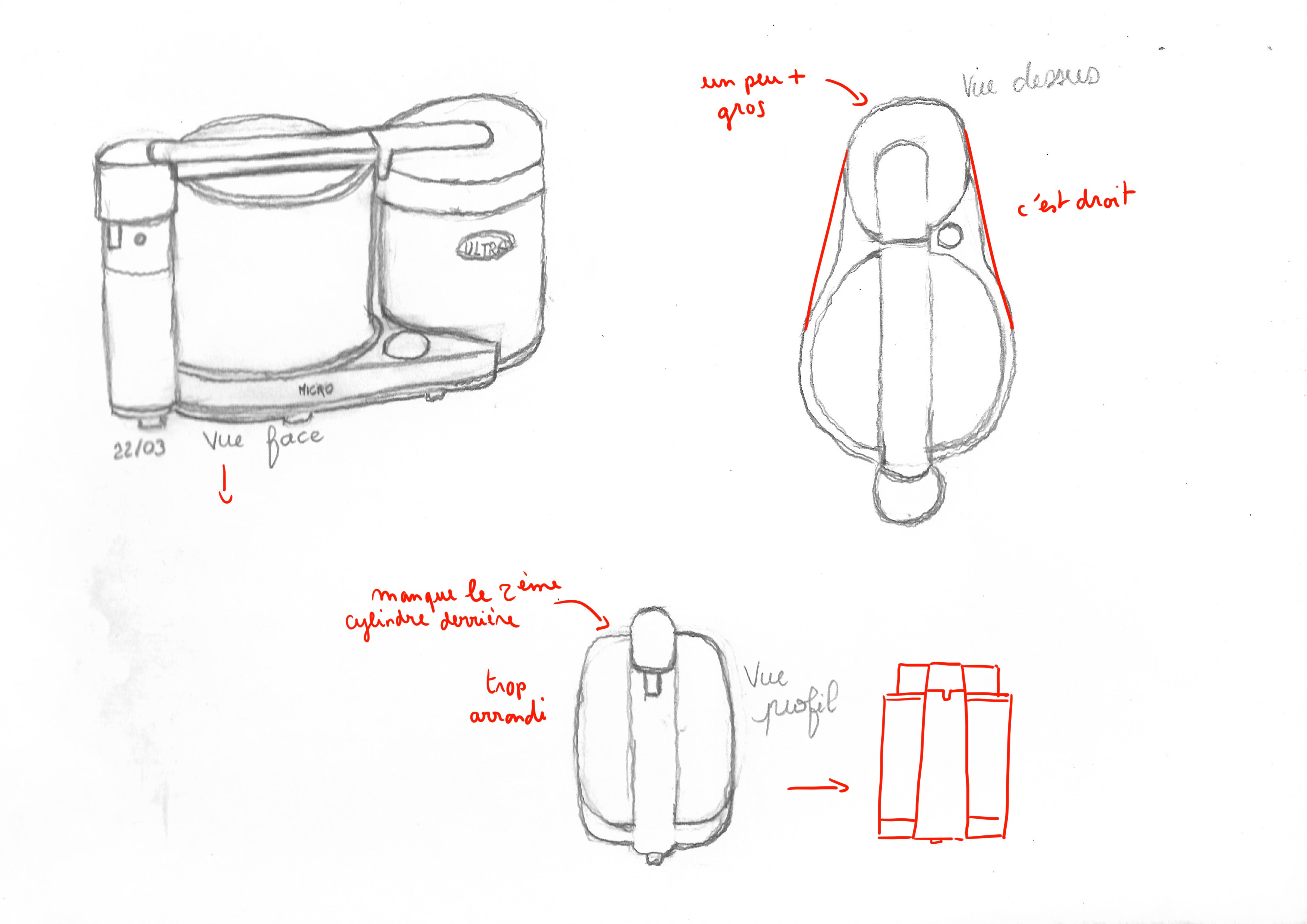 Ce n'est pas une trop mauvaise copie mais le but de l'exercice est de dessiner l'objet sous differents angles en s'appuyant sur la référence, pas seulement en recopiant celle ci :) (Ce qui peut être fait sans comprendre les volumes de l'objet ! )