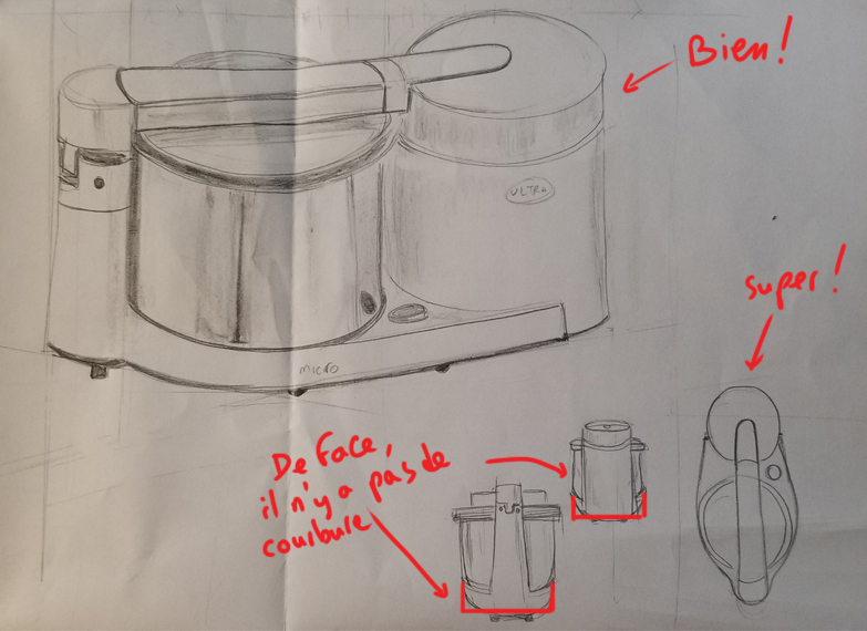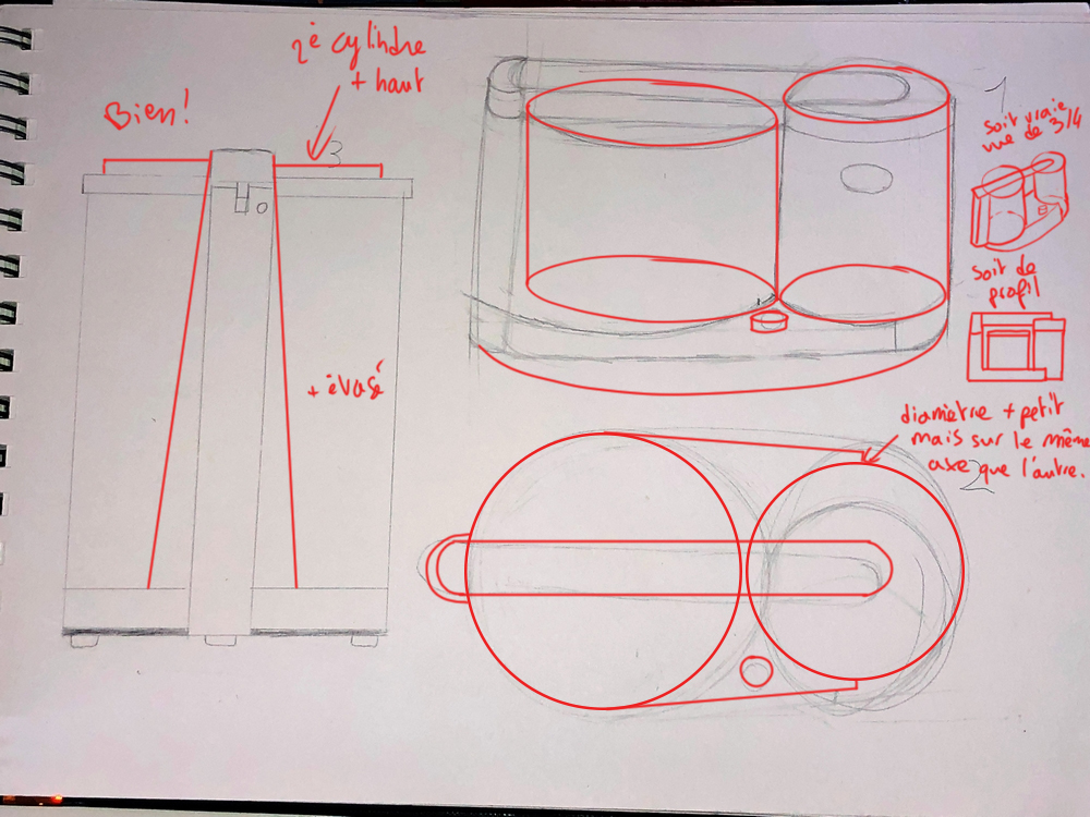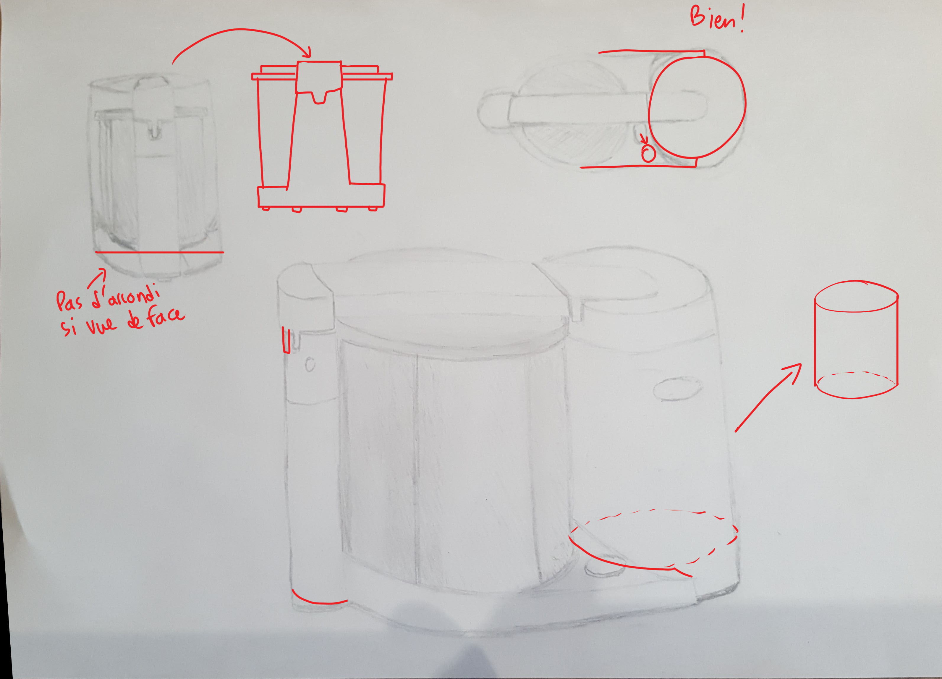 Bonjour Colin ! Contente de voir que tu t'es amusé à faire cet exercice et que tu apprécies la plateforme :) Voici ma correction, tout est vraiment super, tu as bien compris l'objet dans sa globalité. La seule de tes erreurs a été de mettre une courbure aux vues de face en bas de l'appareil. Or un cylincre vue de face est un rectangle. Voilà, bonne continuation à toi ! :)