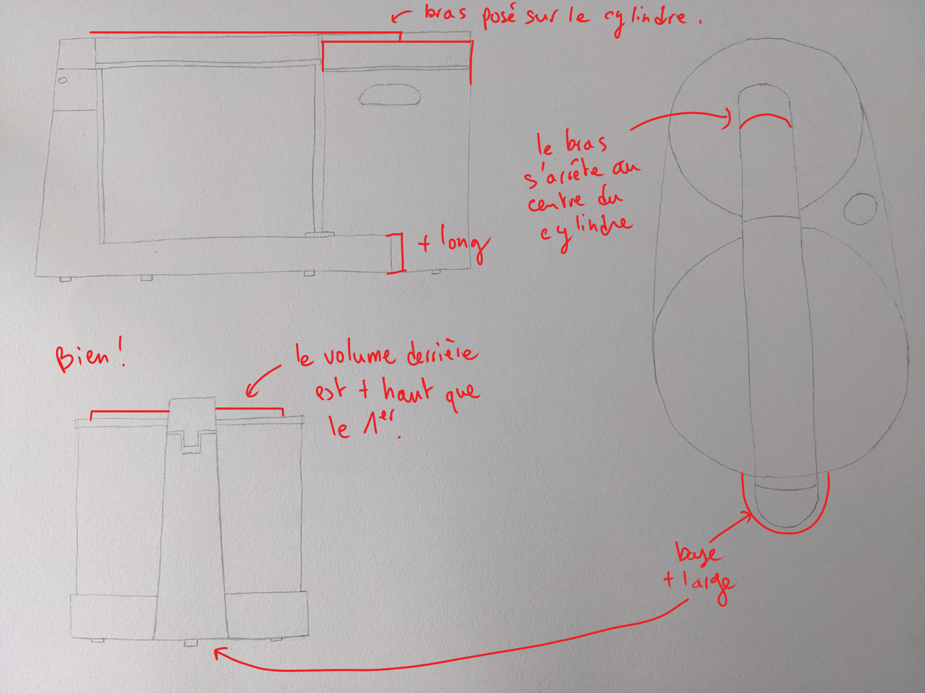 La seule de tes erreurs a été de mettre une courbure aux vues de face en bas de l'appareil. Or un cylincre vue de face est un rectangle.