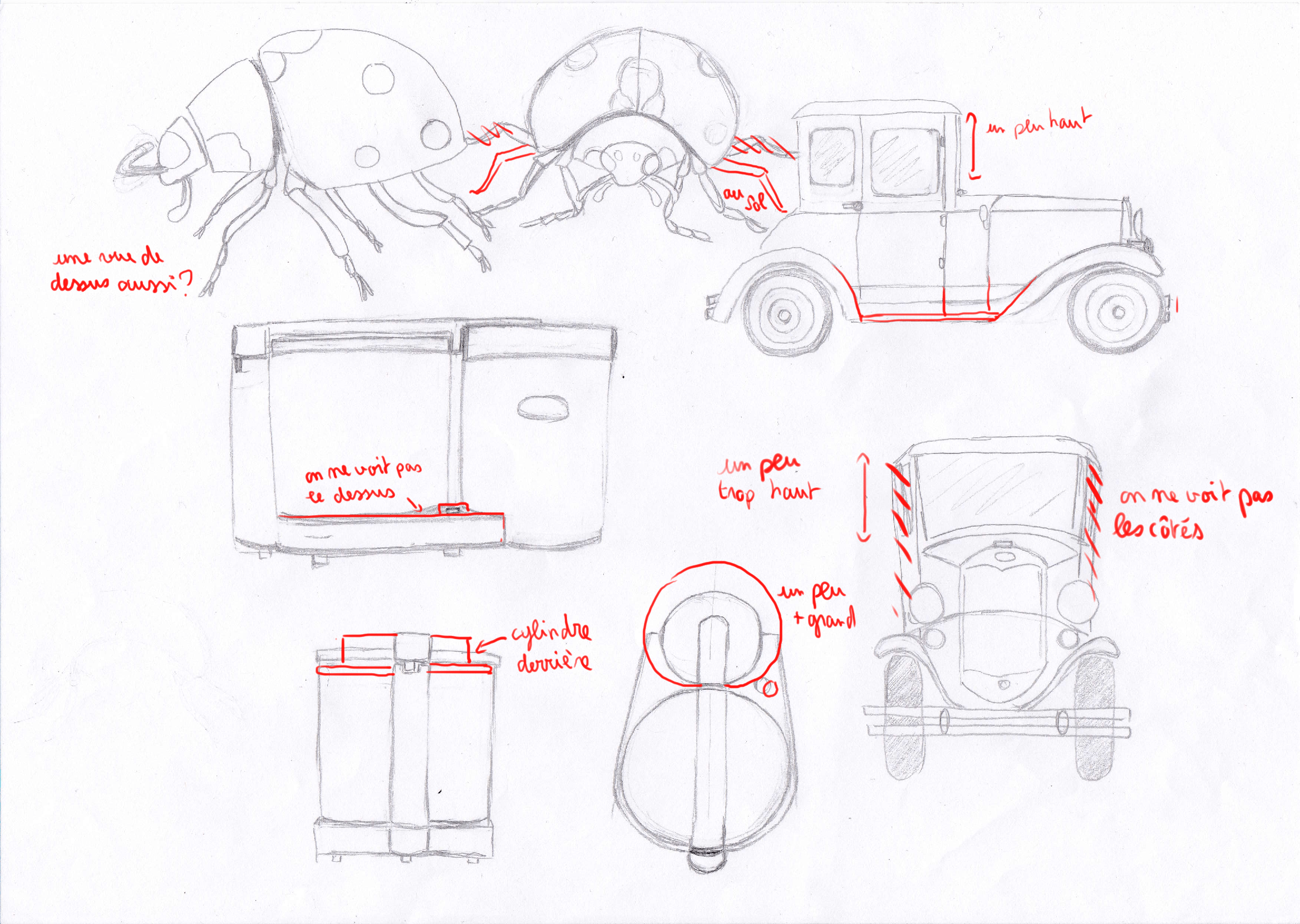 Suite à votre première correction j'ai refait quelques croquis en reprenant en compte vos remarques. J'ai également fait les vues du dessus que je n'avais pas réalisées la première fois.